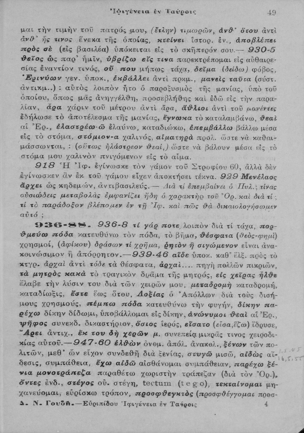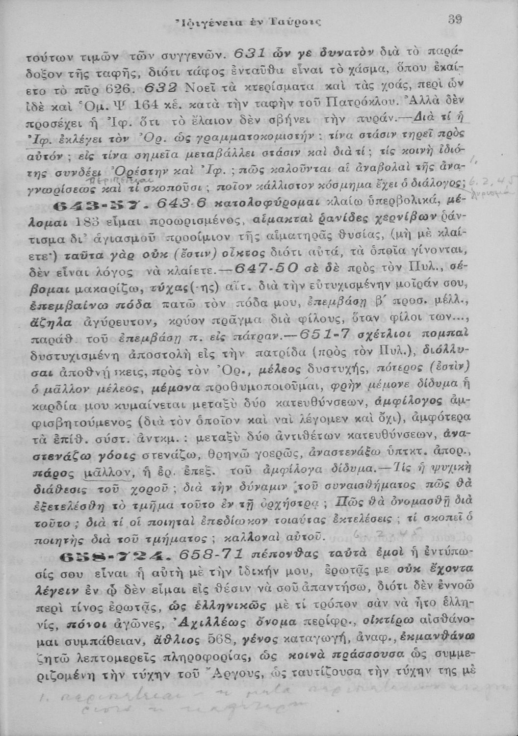 Παιδαγωγικό βοήθημα Αρχαίων Ελληνικών Ε΄ Γυμνασίου που περιλαμβάνει ερμηνευτικές, γλωσσικές και πραγματολογικές παρατηρήσεις στην τραγωδία του Ευριπίδη Ιφιγένειας εν Ταύροις.