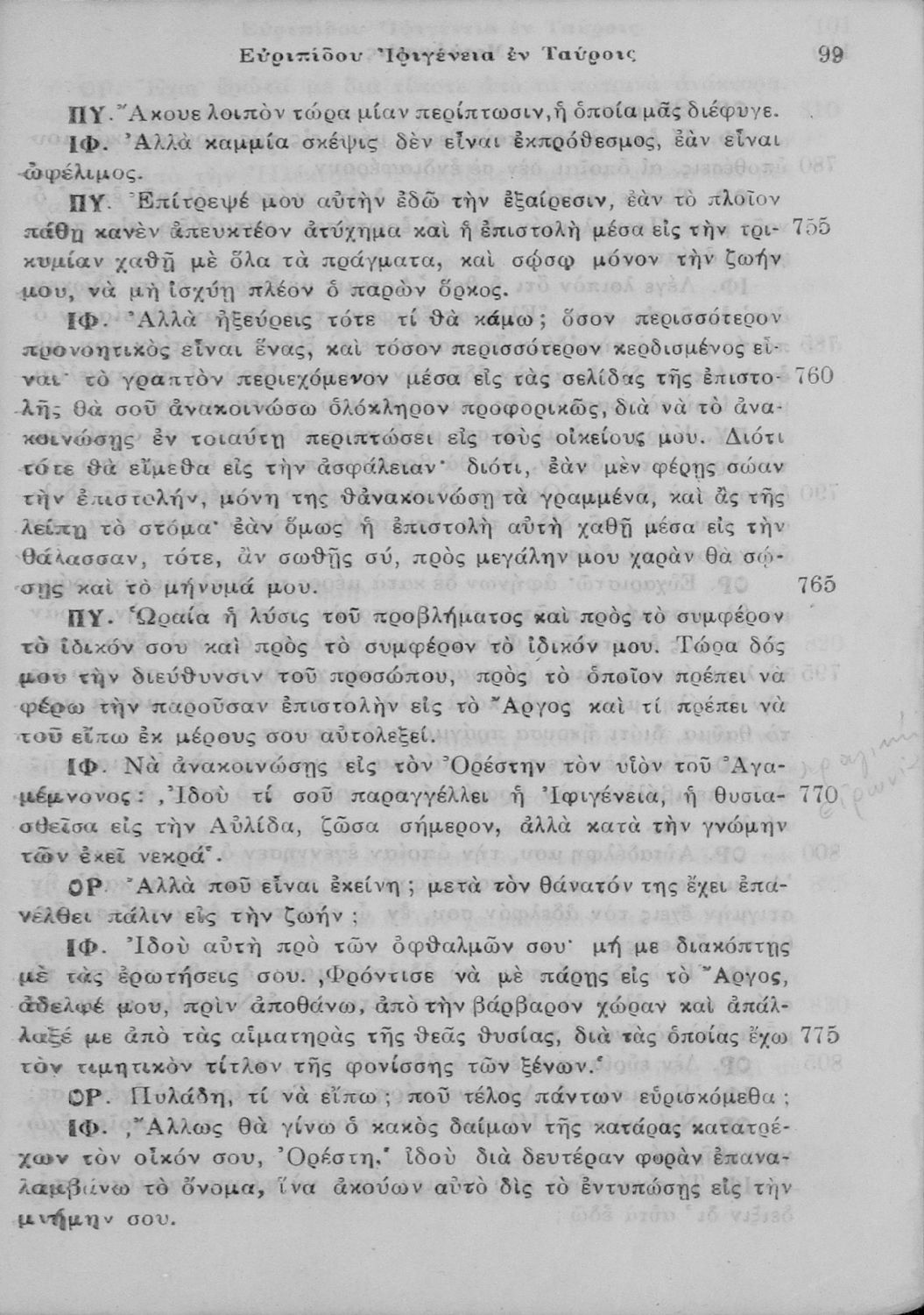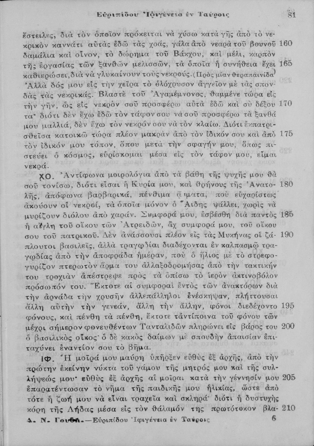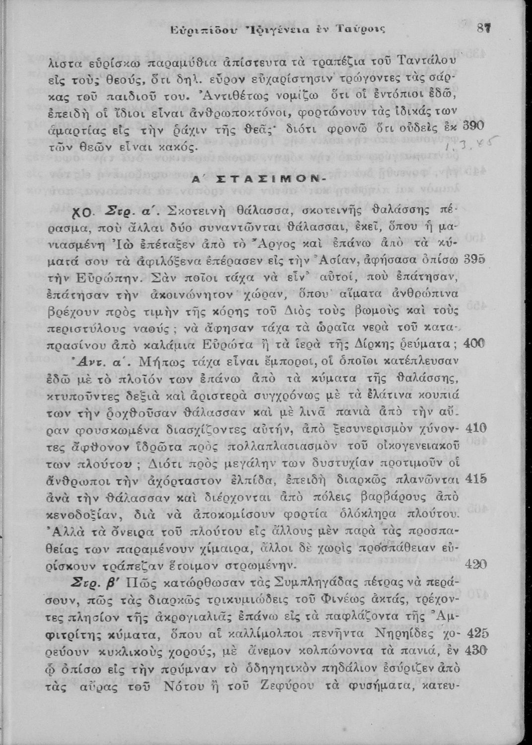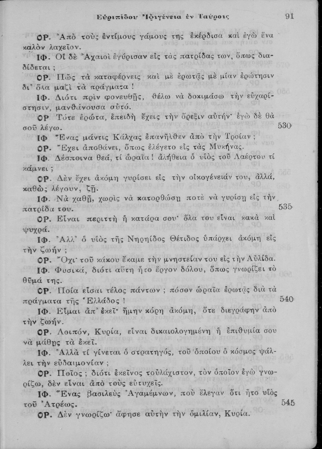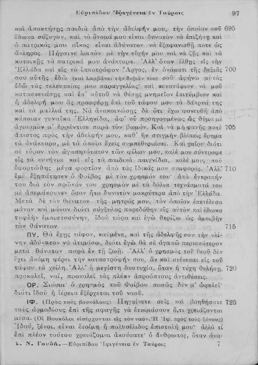 Τίτλος: Ευριπίδου Ιφιγένεια εν Ταύροις σχόλια-μετάφρασις