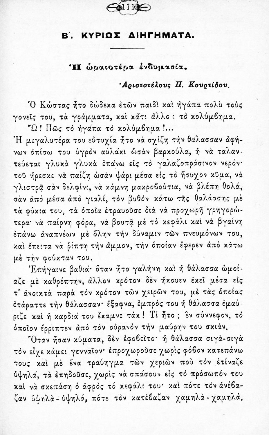 Τίτλος: Νεοελληνικά αναγνώσματα διά τους μαθητάς της Α΄ τάξεως των Ελληνικών Σχολείων .