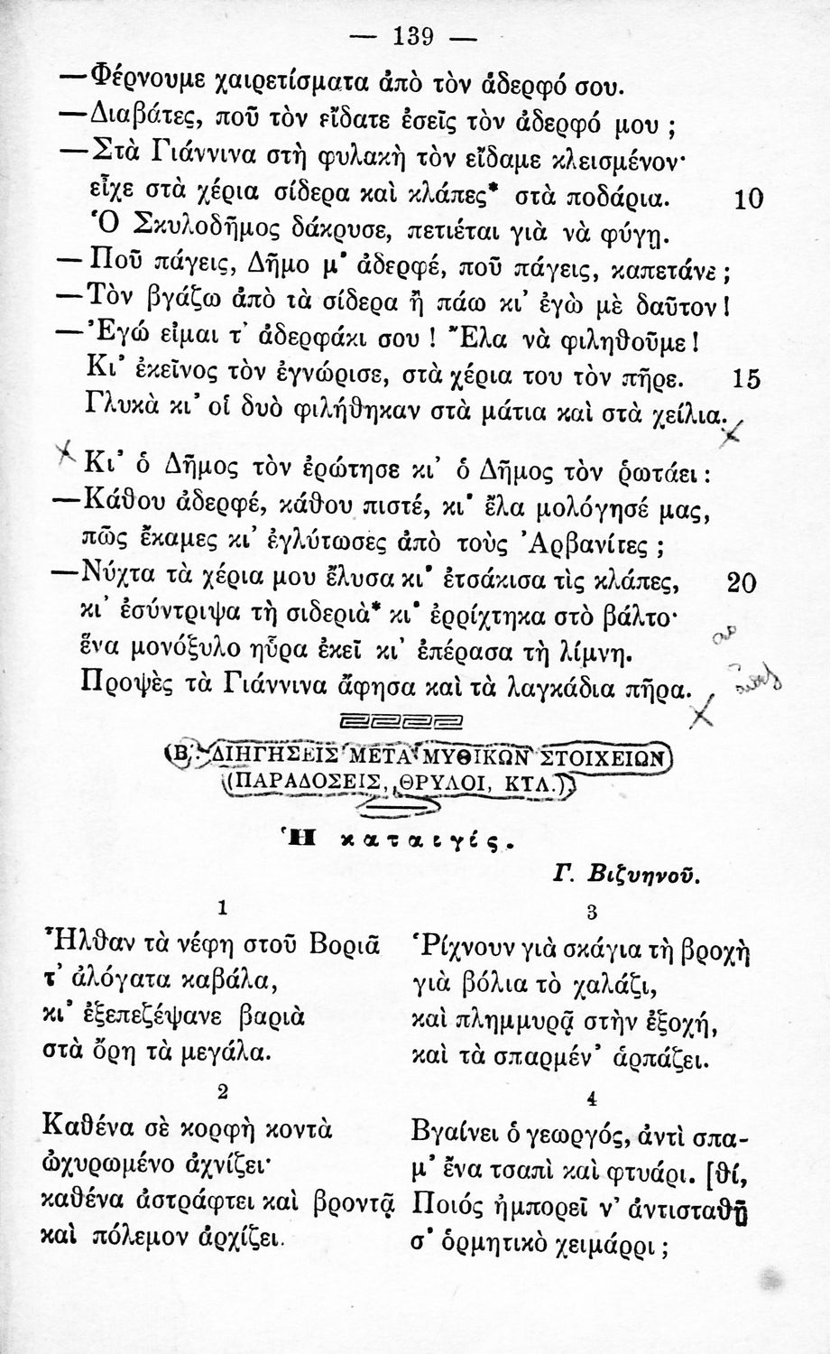 Σχολικό εγχειρίδιο Νέων Ελληνικών Γ' Ελληνικού Σχολείου και Α΄ Αστικού Σχολείου των Θηλέων που περιλαμβάνει ποιήματα και πεζά Ελλήνων συγγραφέων και δημοτικά τραγούδια εμπνευσμένα από την σύγχρονη ελληνική ...