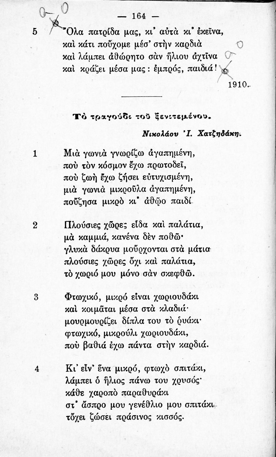 Σχολικό εγχειρίδιο Νέων Ελληνικών Γ' Ελληνικού Σχολείου και Α΄ Αστικού Σχολείου των Θηλέων που περιλαμβάνει ποιήματα και πεζά Ελλήνων συγγραφέων και δημοτικά τραγούδια εμπνευσμένα από την σύγχρονη ελληνική ...