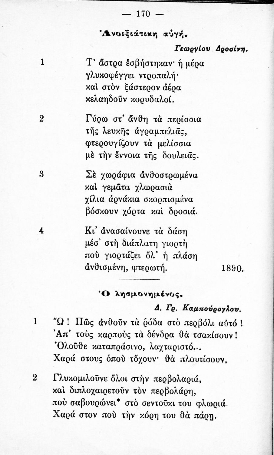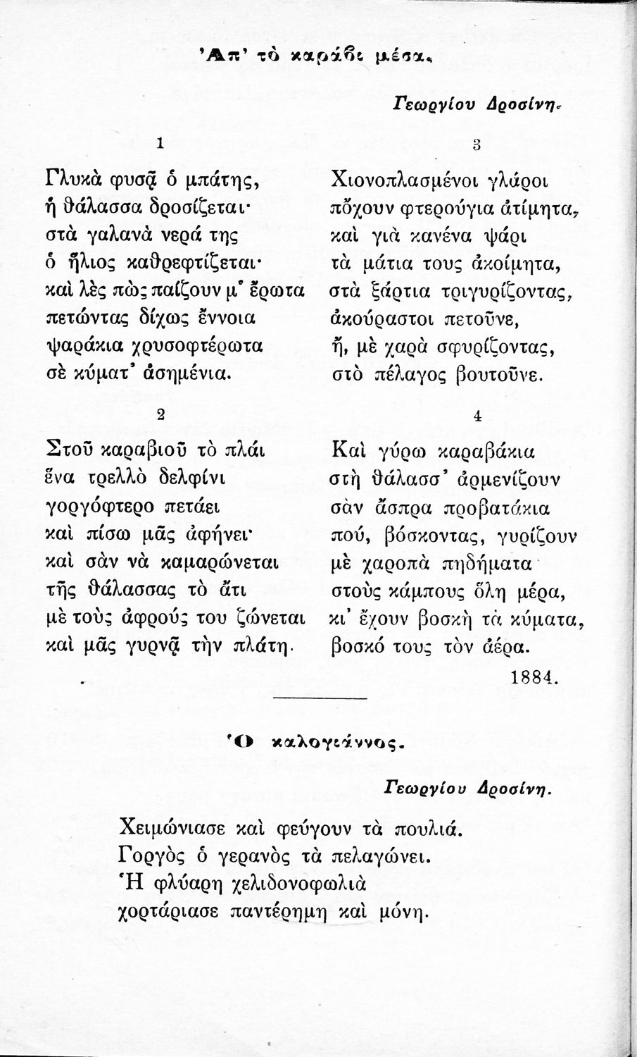 Σχετιζόμενοι όροι:  Δροσίνης, Παλαμάς, Σολωμός, Ζαμπέλιος