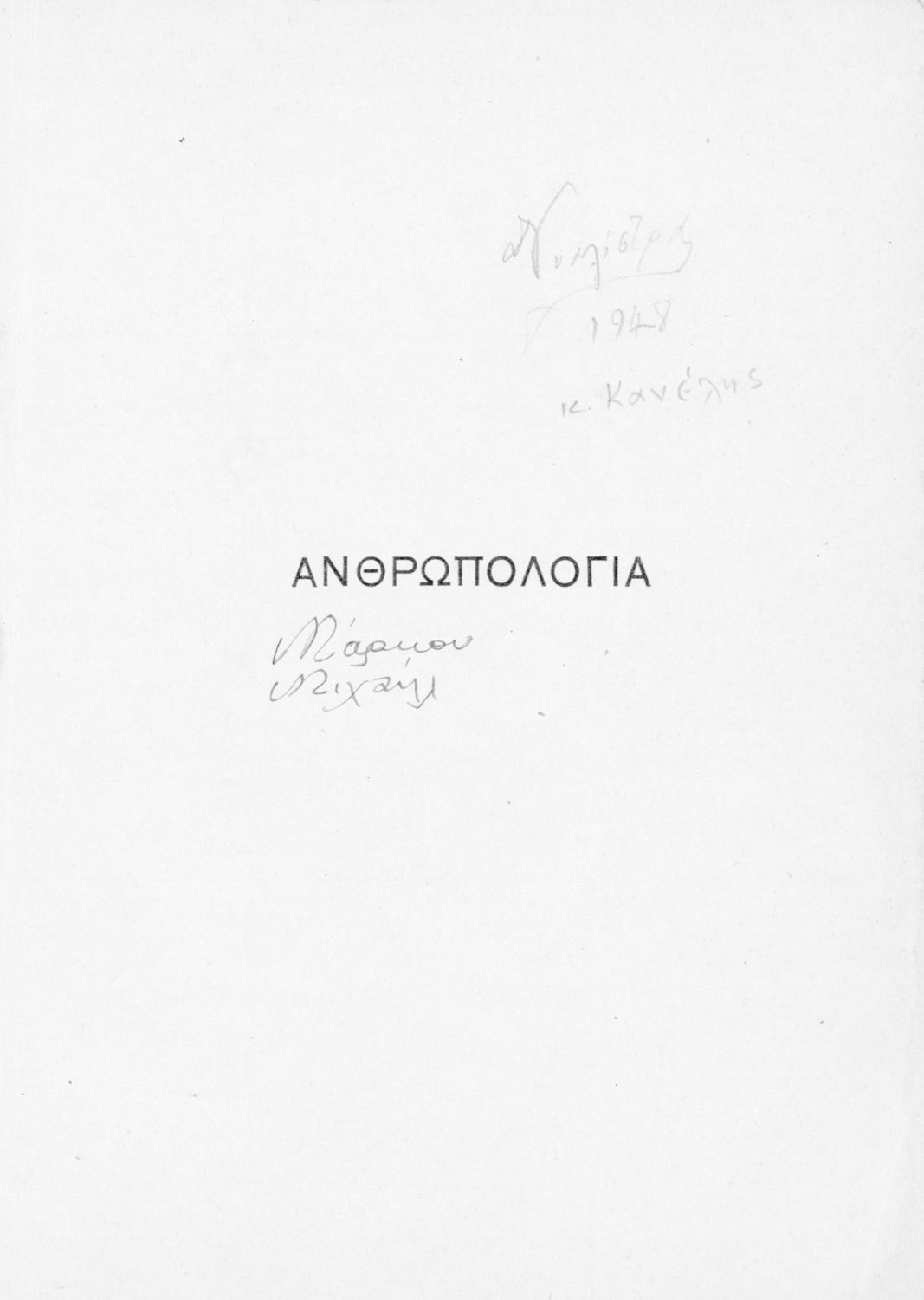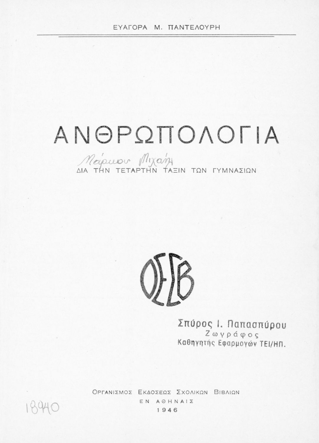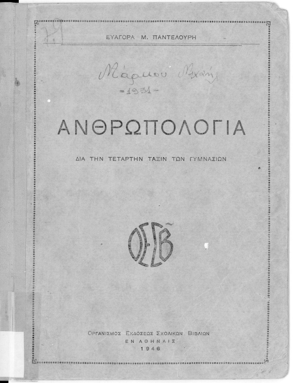 Τίτλος: Ανθρωπολογία δια την Τετάρτη Τάξιν των Γυμνασίων