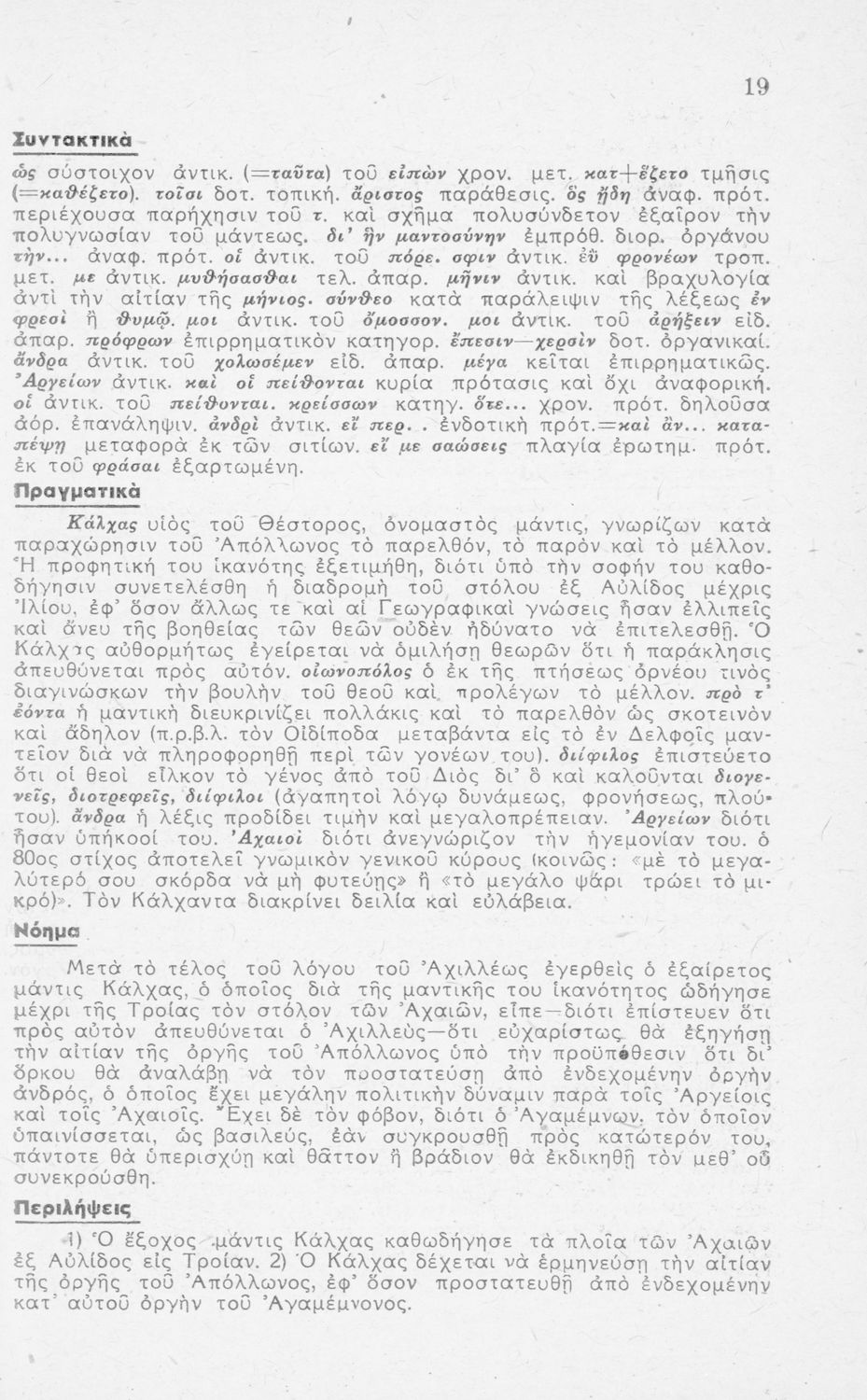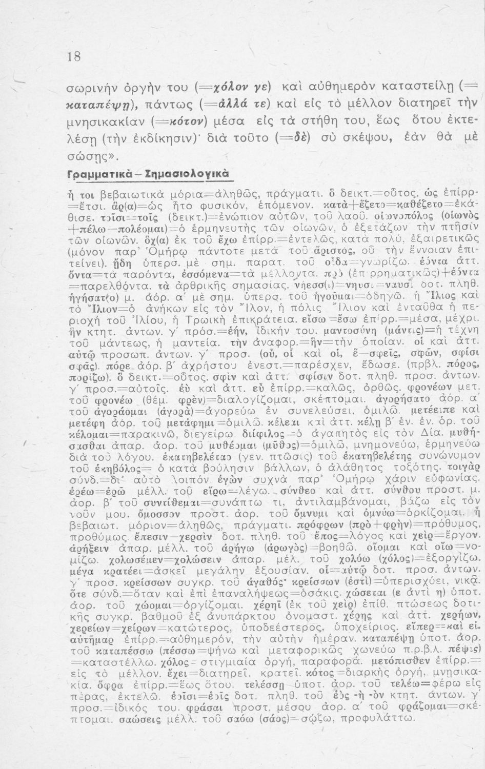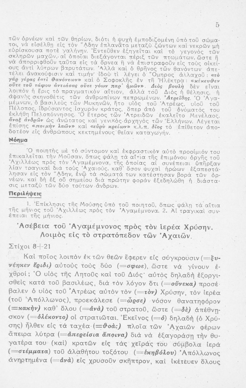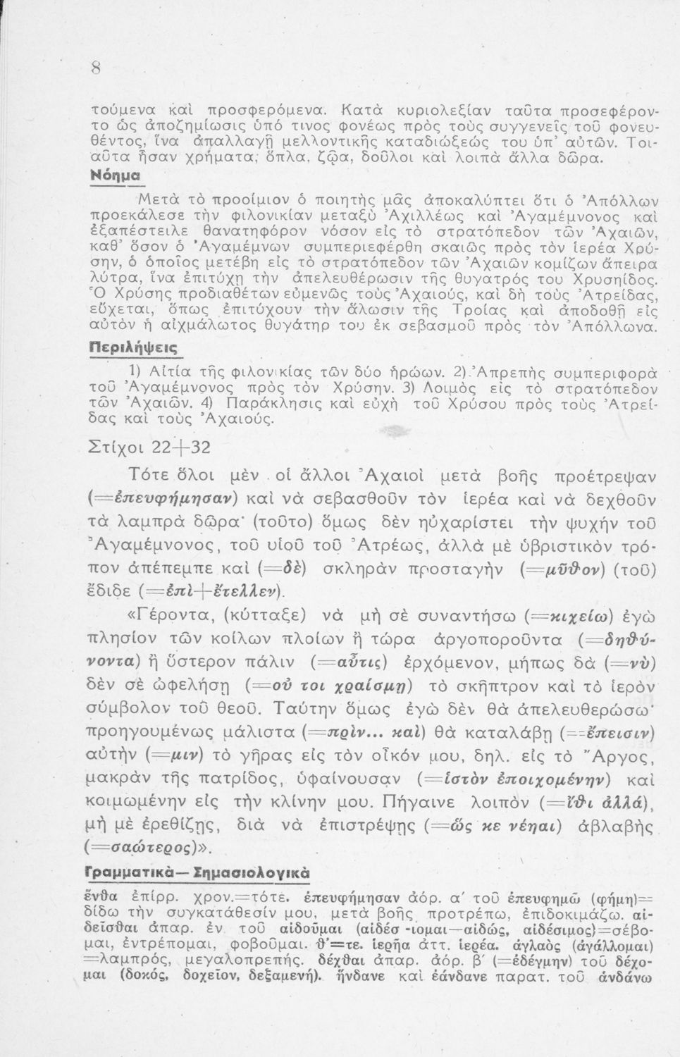 Μαθητικό βοήθημα Αρχαίων Ελληνικών της Γ΄ τάξης των τετρατάξιων Γυμνασίων το οποίο περιέχει σε μετάφραση τη ραψωδία Α΄ από την 'Ιλιάδα' του Ομήρου.