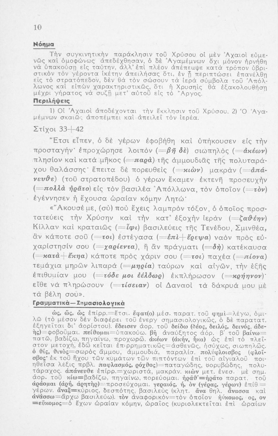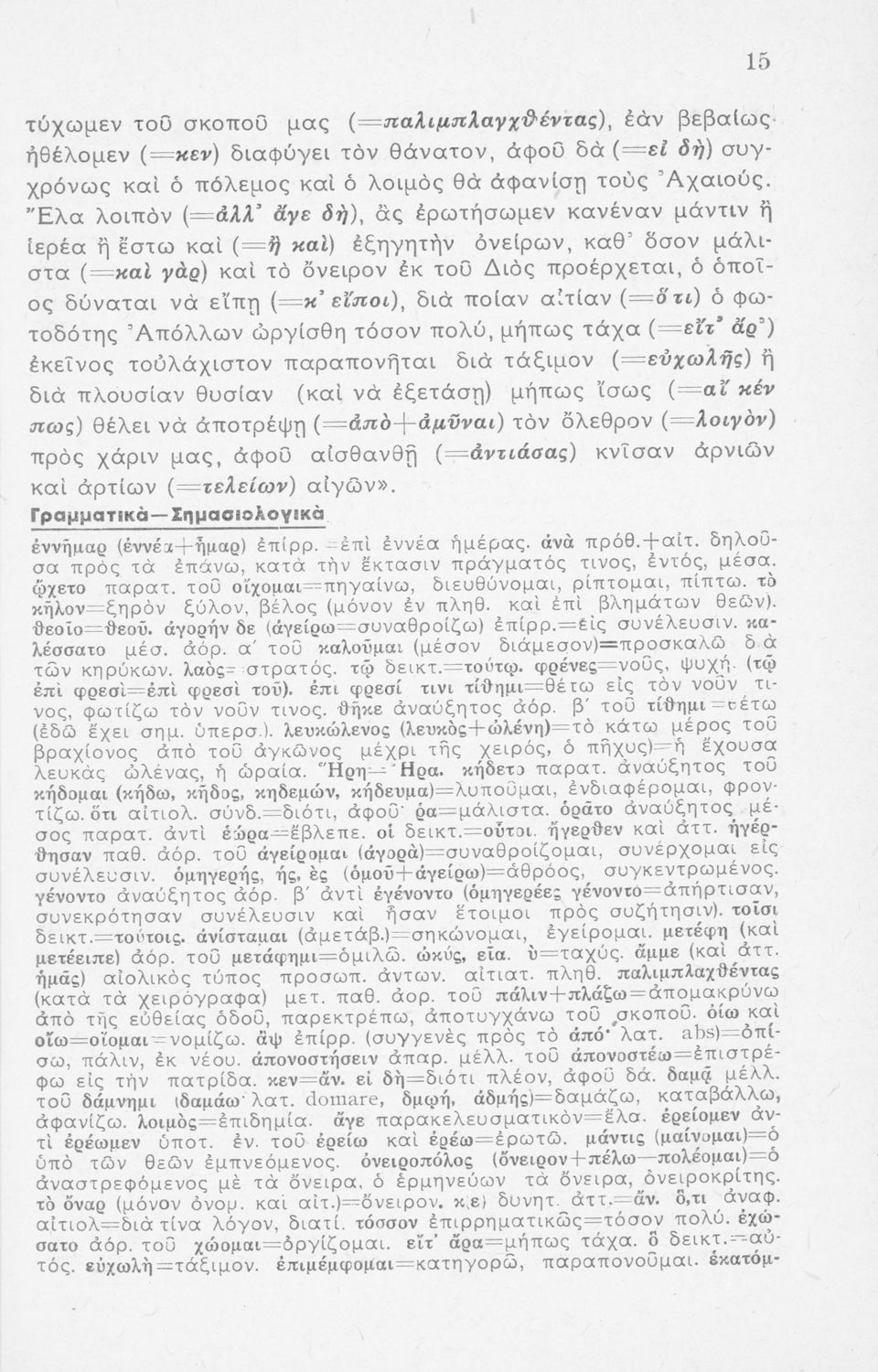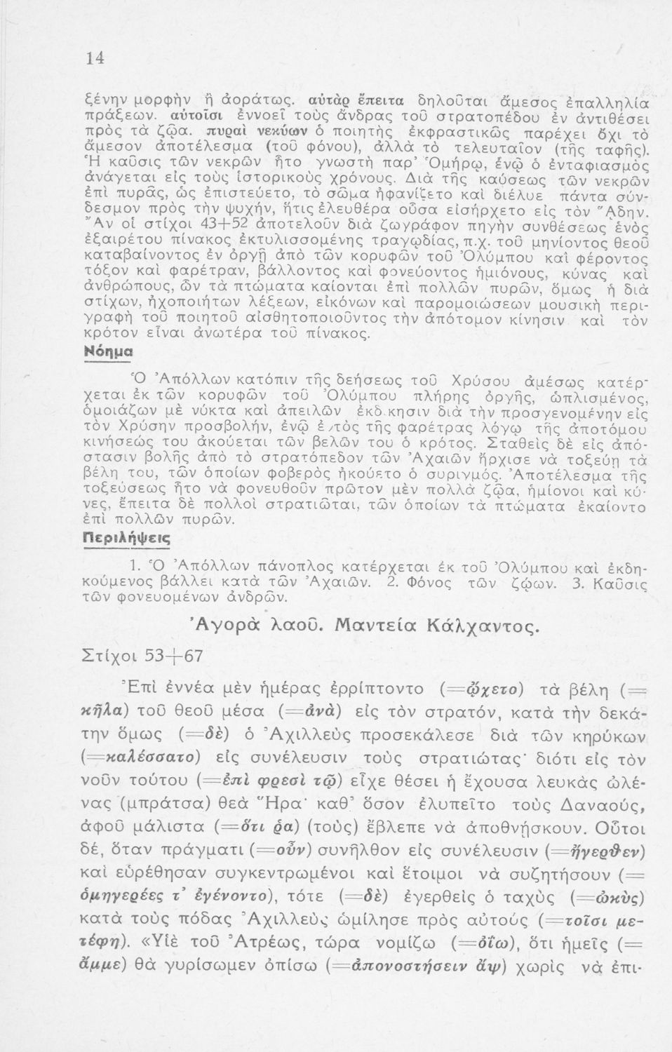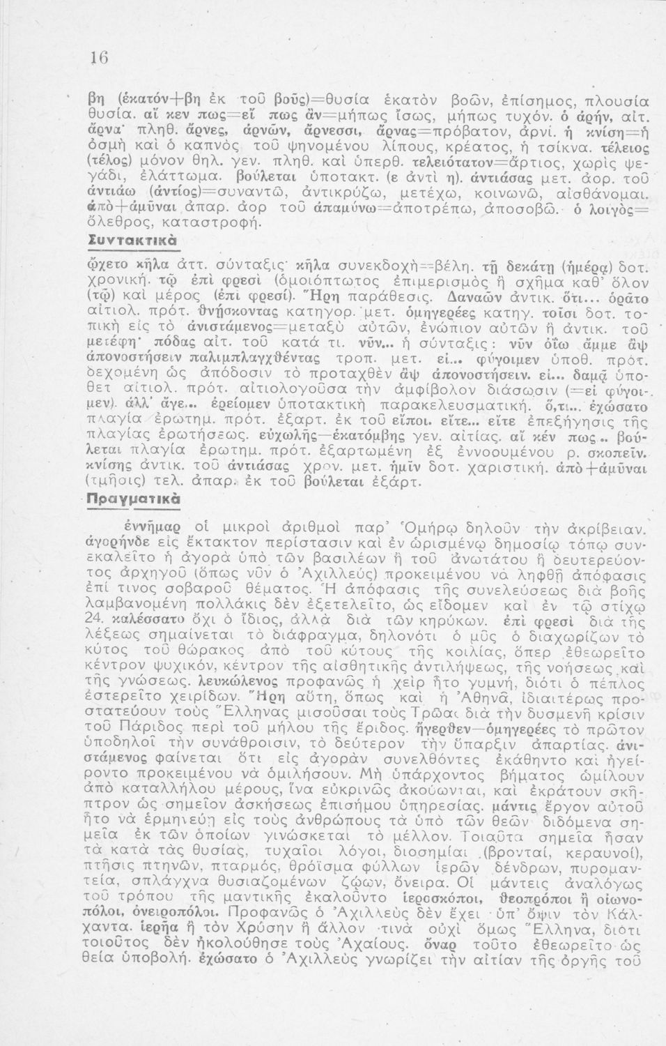 Μαθητικό βοήθημα Αρχαίων Ελληνικών της Γ΄ τάξης των τετρατάξιων Γυμνασίων το οποίο περιέχει σε μετάφραση τη ραψωδία Α΄ από την 'Ιλιάδα' του Ομήρου.