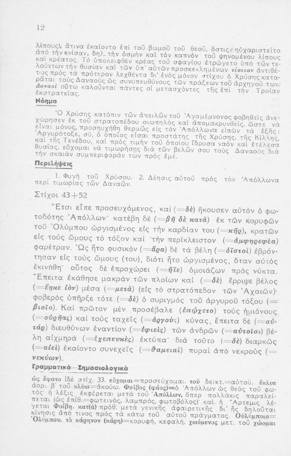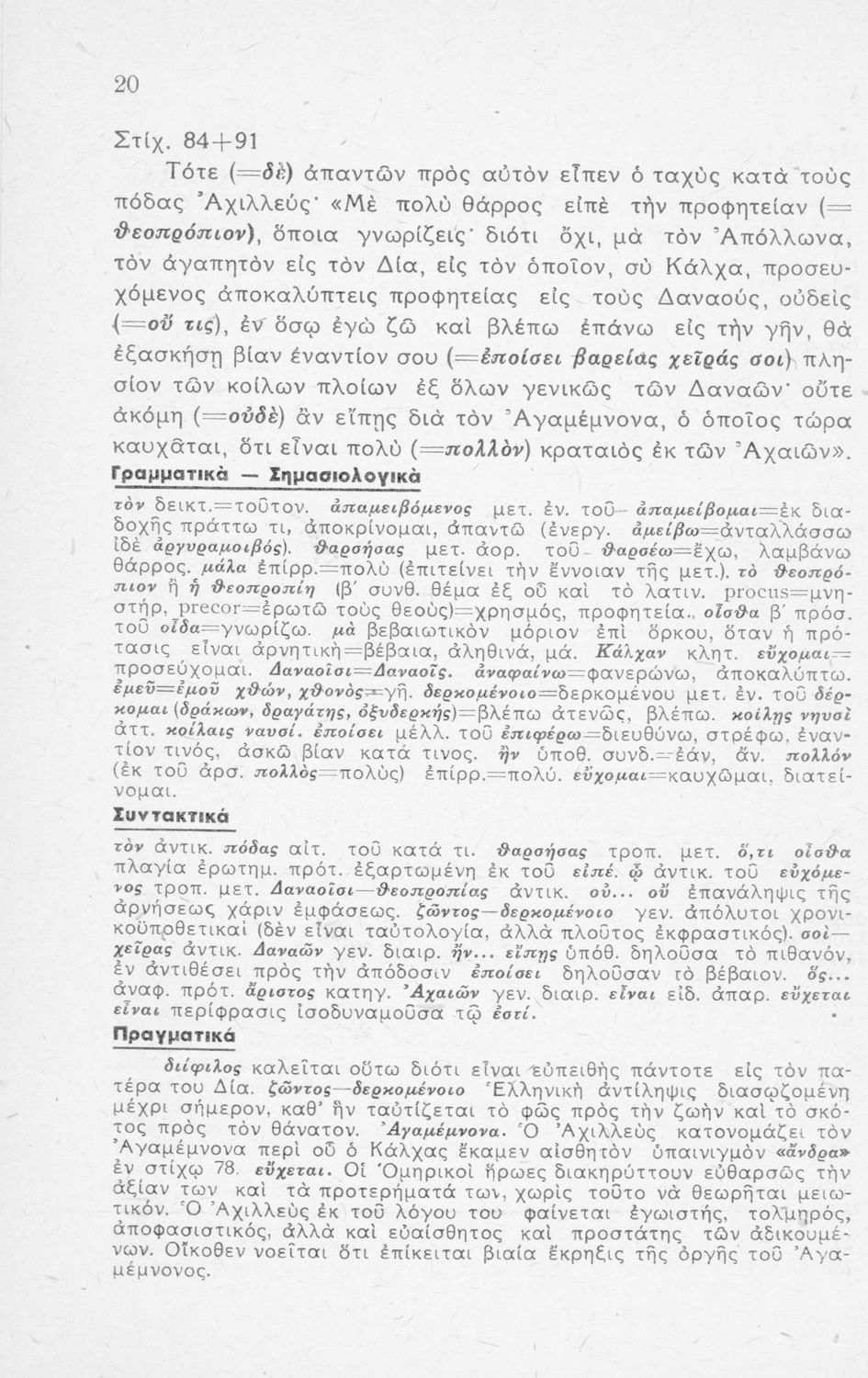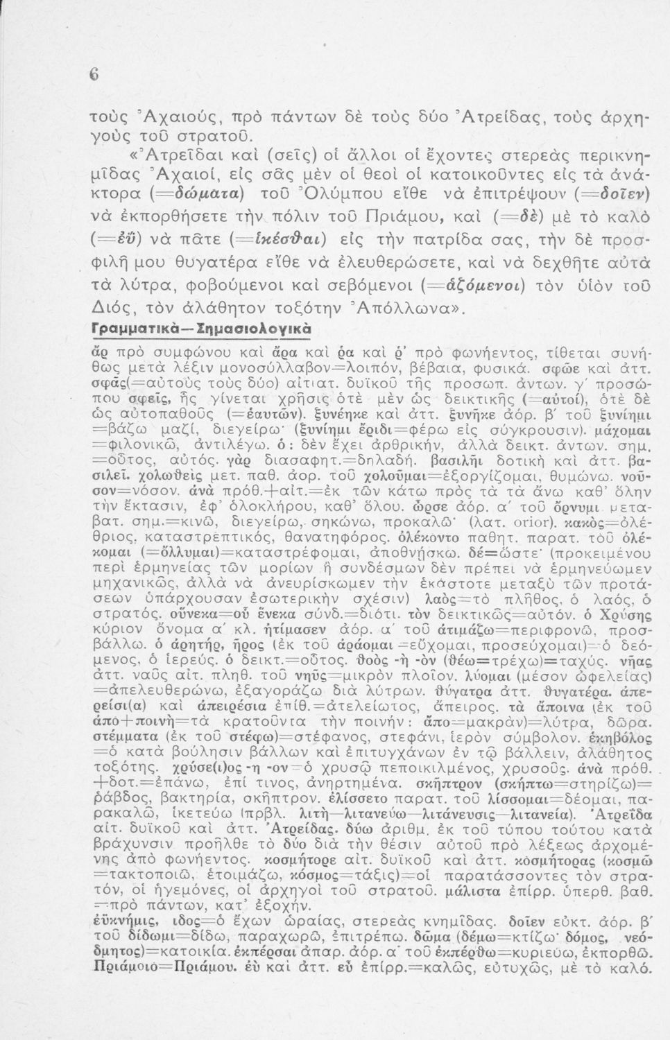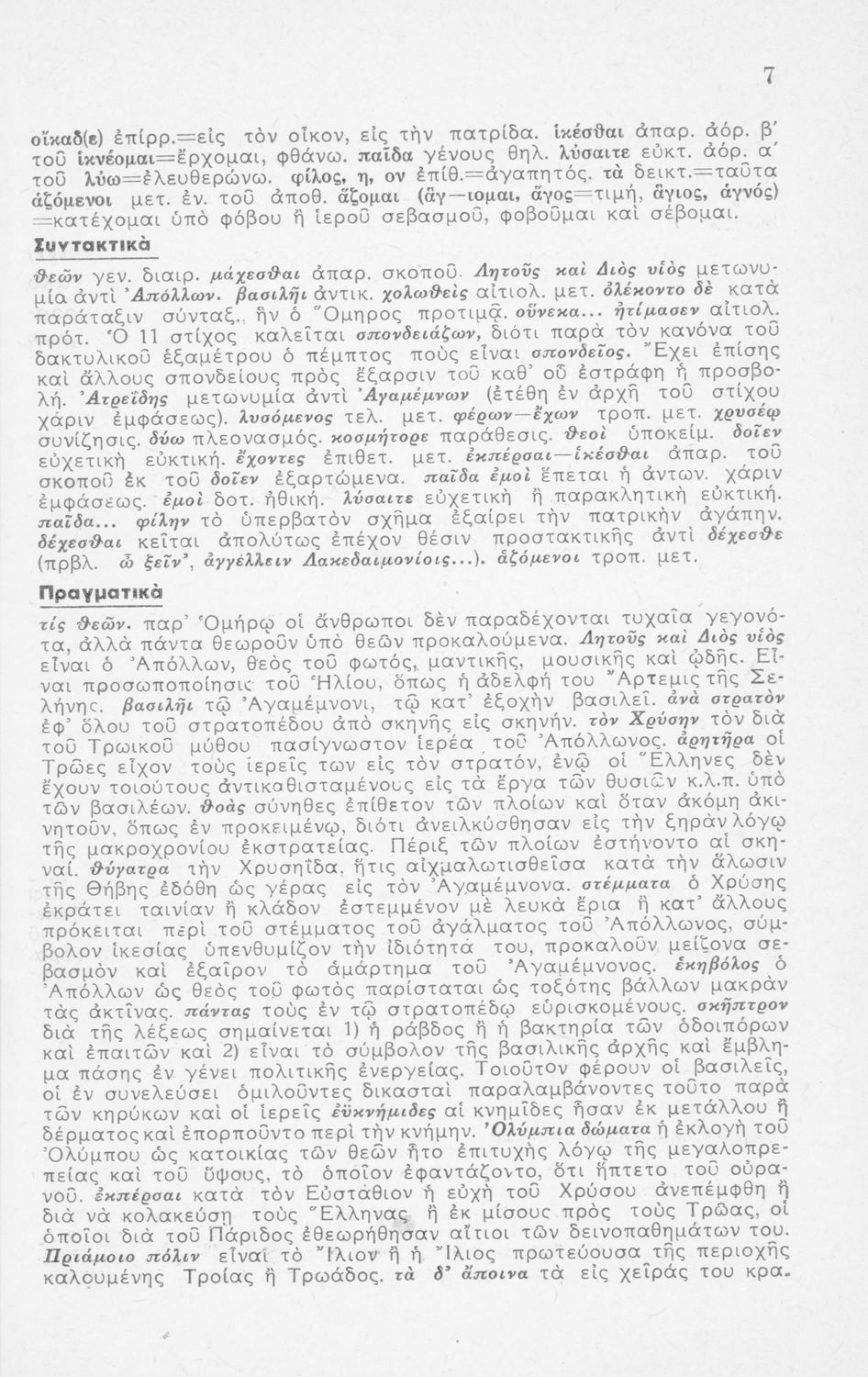 Μαθητικό βοήθημα Αρχαίων Ελληνικών για τη Δευτεροβάθμια Εκπαίδευση. Περιλαμβάνει λογοτεχνική απόδοση, σημασιολογικά και γραμματικά σχόλια καθώς και εισαγωγή στην επική ποίηση.
