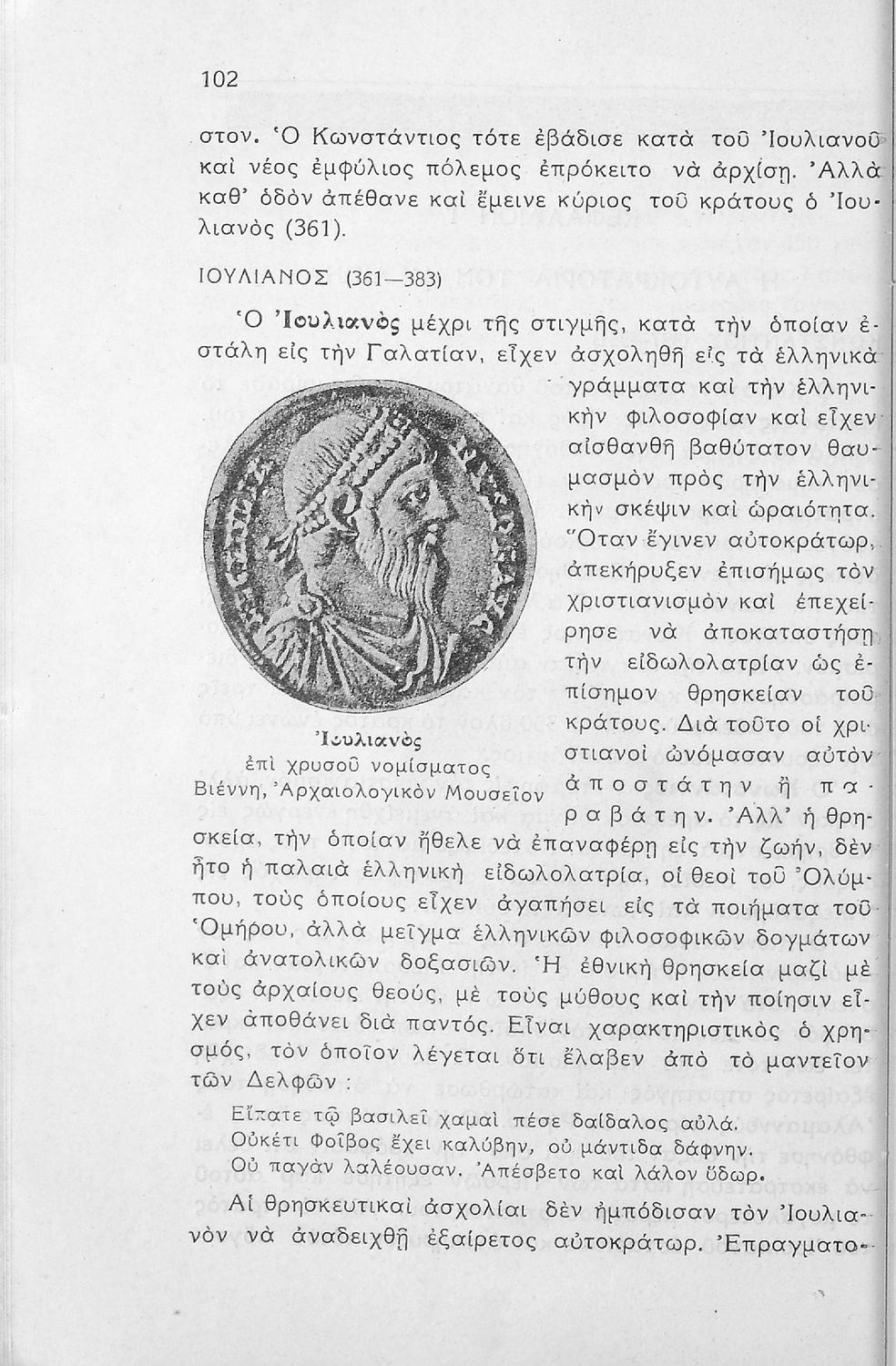 Σχολικό εγχειρίδιο Ιστορίας Γ΄ Γυμνασίου που καλύπτει την χρονική περίοδο από την ίδρυση της ρωμαϊκής αυτοκρατορίας μέχρι την άλωση της Κωνσταντινούπολης και αναλύει τη σχέση χριστιανισμού και ελληνισμού.