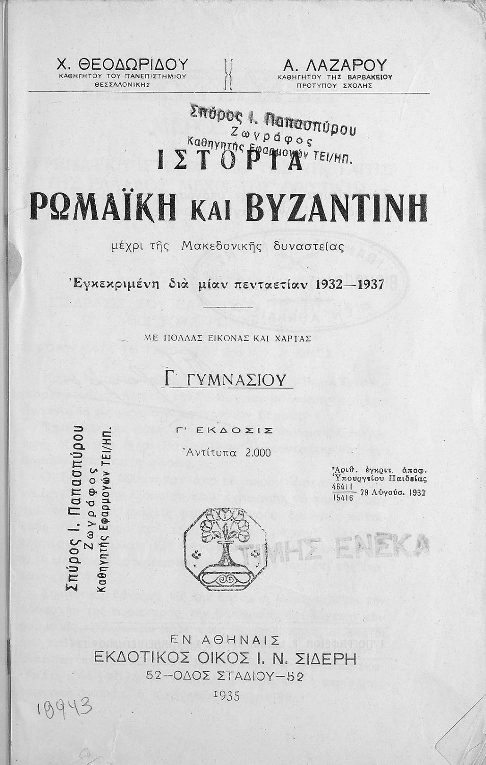 Τίτλος: Ιστορία της Βυζαντινής Αυτοκρατορίας μέχρι της Μακεδονικής Ηγεμονίας. Γ΄ Γυμνασίου