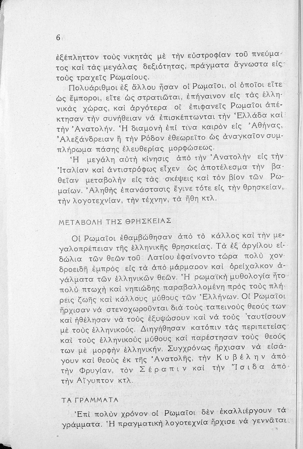 Σχολικό εγχειρίδιο Ιστορίας Γ΄ Γυμνασίου που καλύπτει την περίοδο από την κατάληψη της Ελλάδας από του Ρωμαίους ως τον Καρλομάγνο. Περιέχει μετρικό παράρτημα και χρονολογικό πίνακα.
