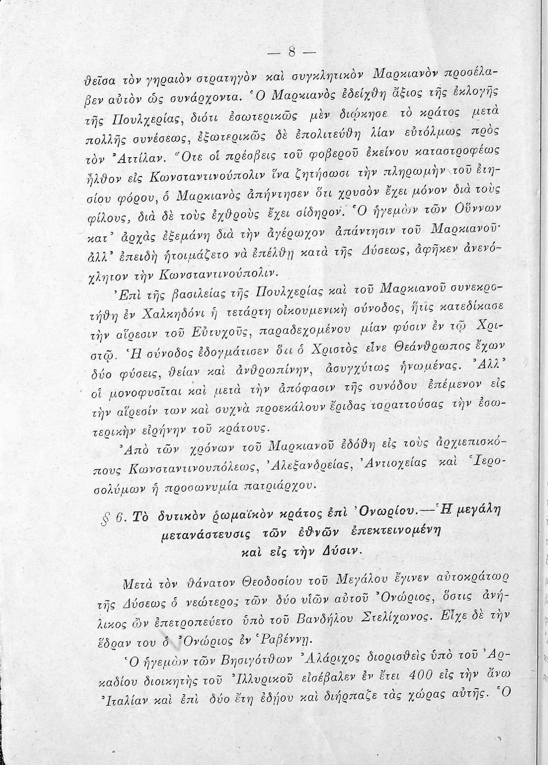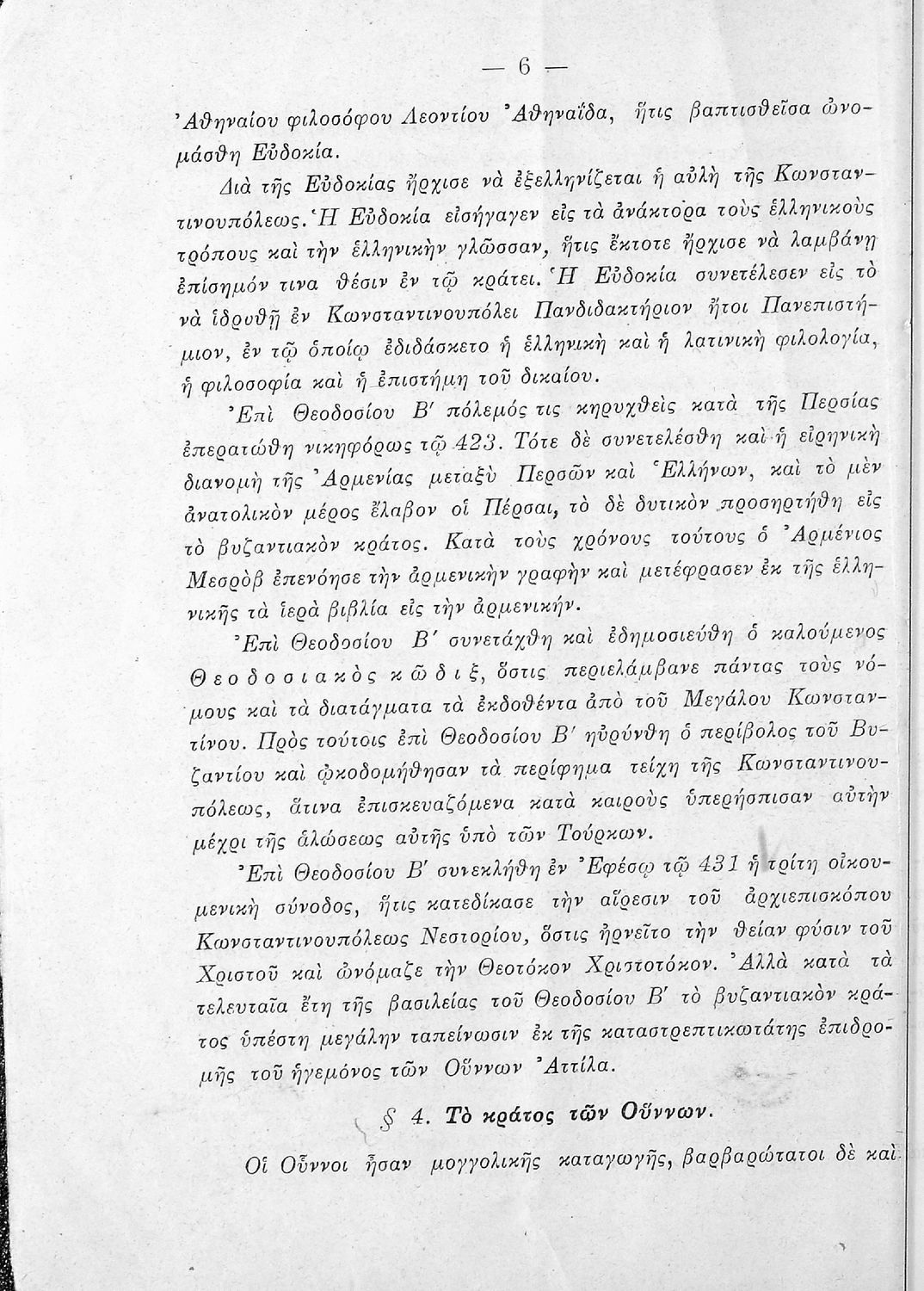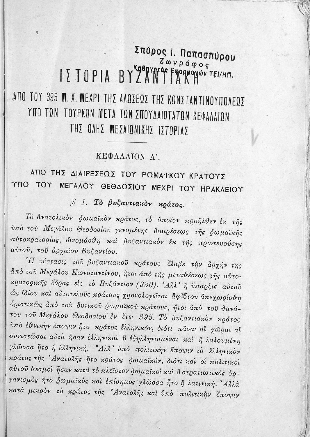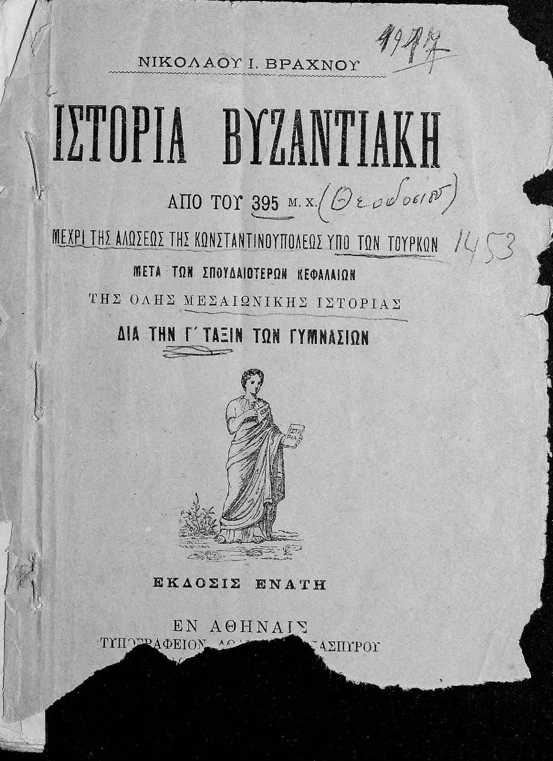 Βαθμίδα εκπαίδευσης: Δευτεροβάθμια Τάξη: Γ' Γυμνασίου Μάθημα: Ιστορία Γλώσσα: Καθαρεύουσα Παρουσίαση περιεχομένου: Σχολικό εγχειρίδιο Ιστορίας Γ΄ Γυμνασίου που καλύπτει την περίοδο από την ίδρυση του ανατολικού ρωμαϊκού κράτους ως την άλωση της Κωνσταντινούπολης. |