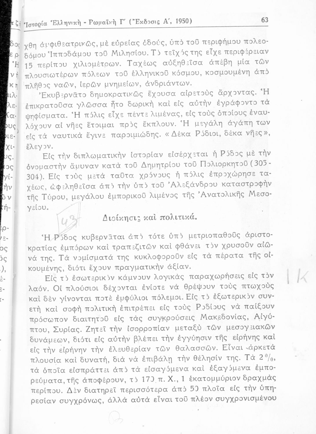 Τίτλος: Ιστορία ελληνική - ρωμαϊκή από του θανάτου του Μ. Αλεξάνδρου μέχρι του Μ. Κωνσταντίνου δια την Γ΄ τάξιν των Εξαταξίων Γυμνασίων
