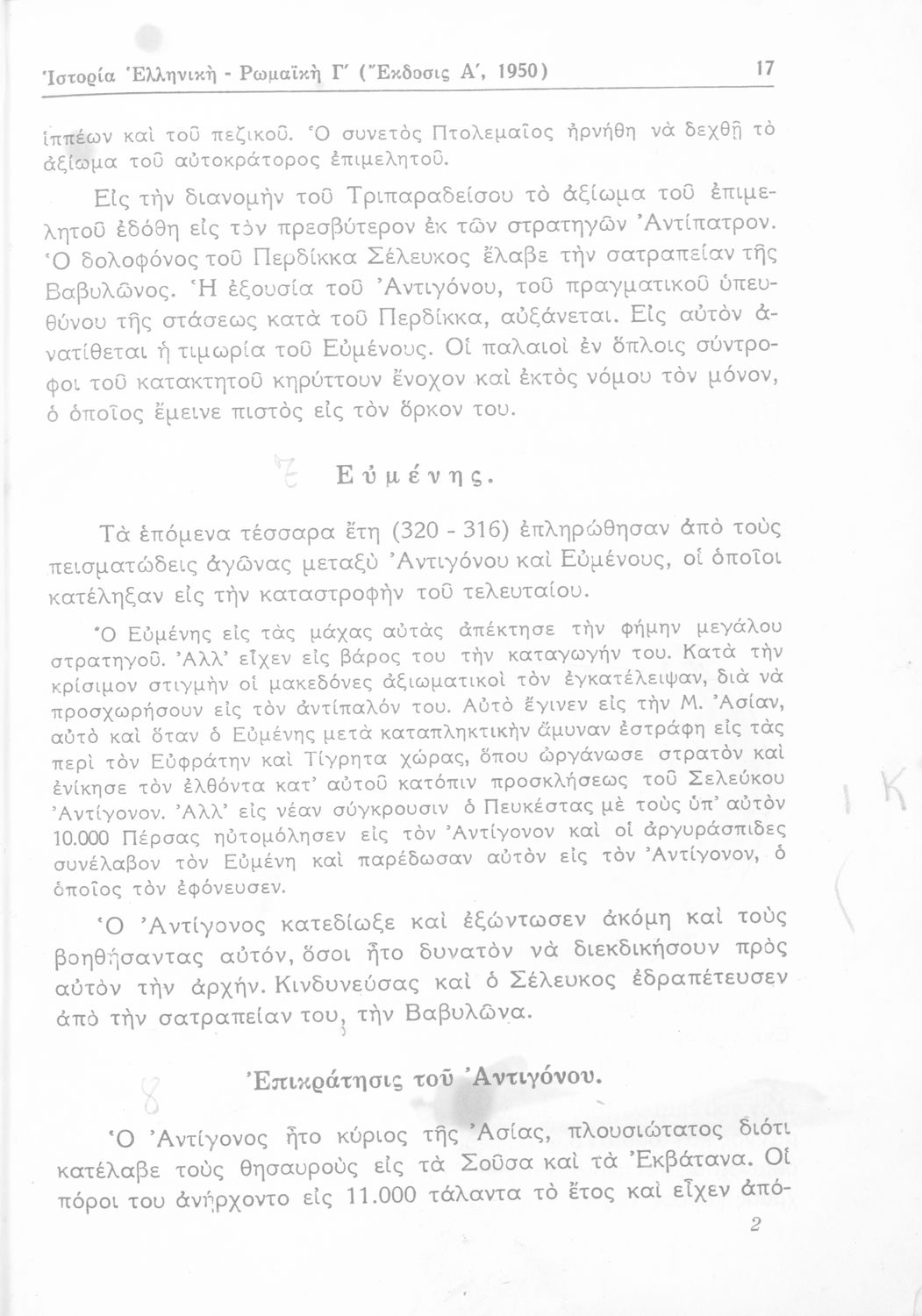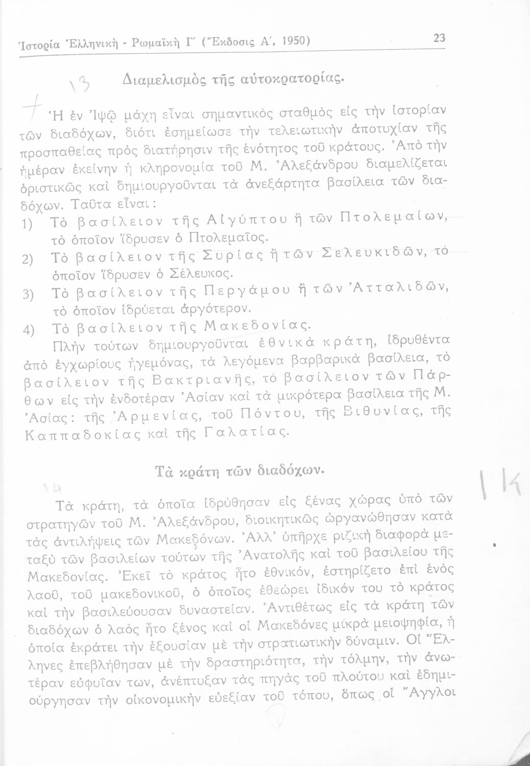 Ιστορία ελληνική - ρωμαϊκή από του θανάτου του Μ. Αλεξάνδρου μέχρι του Μ. Κωνσταντίνου δια την Γ΄ τάξιν των Εξαταξίων Γυμνασίων