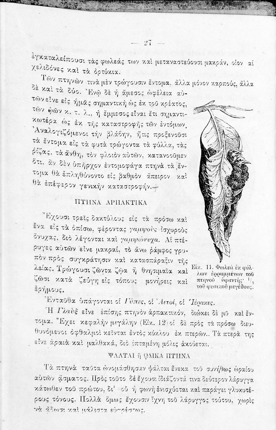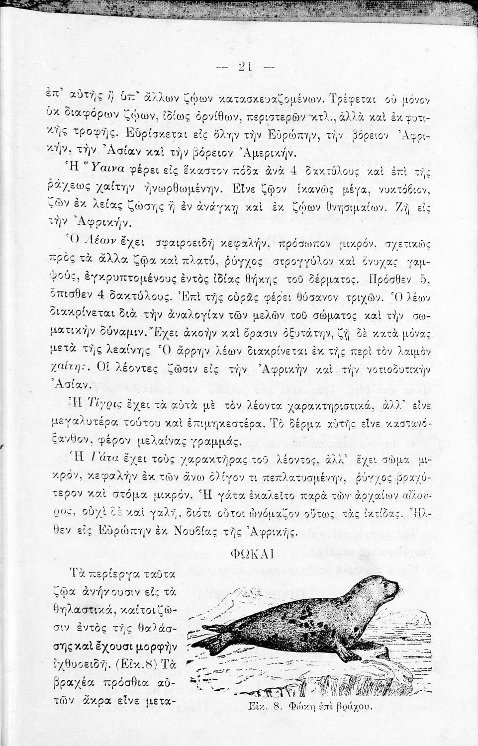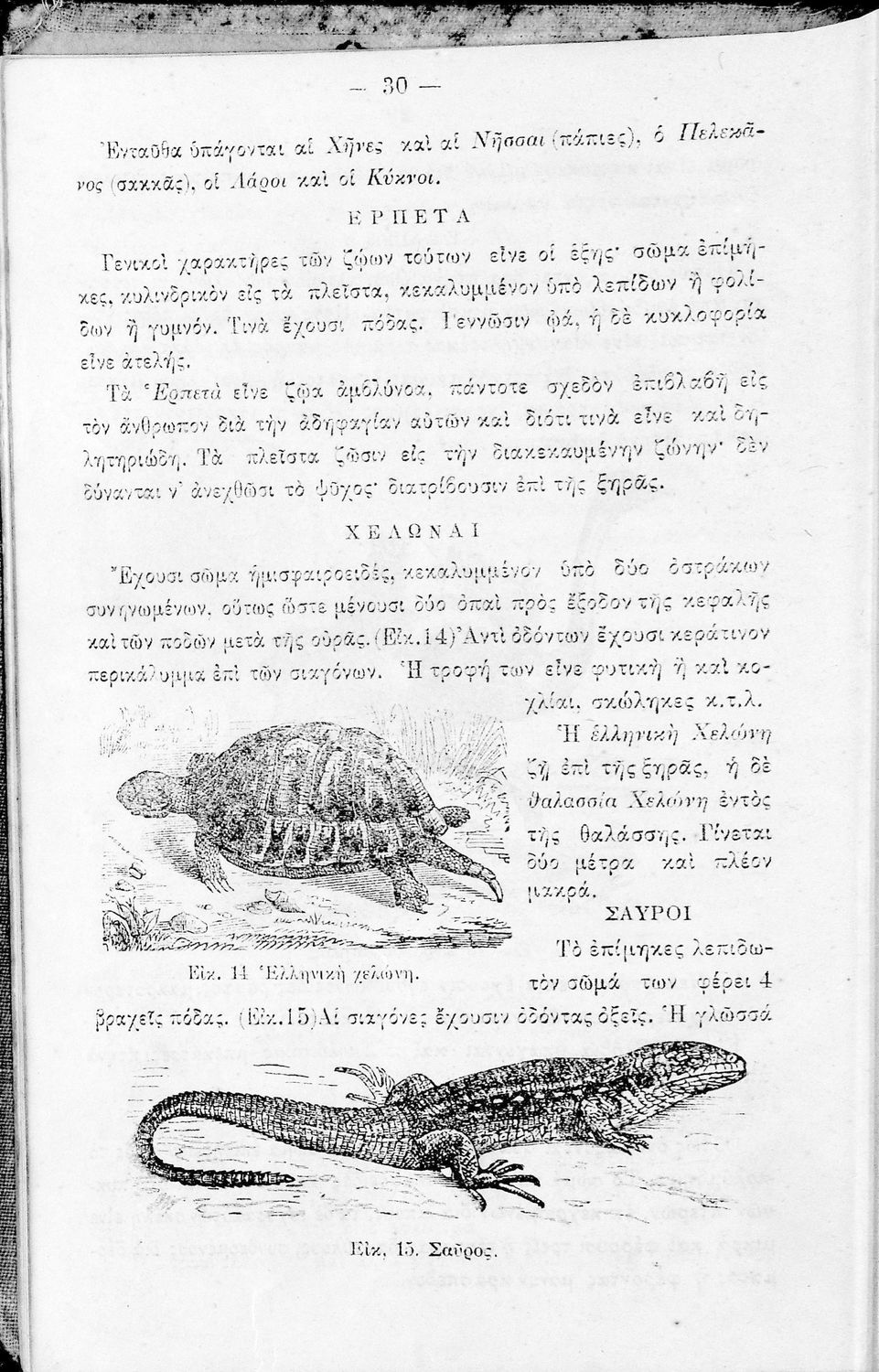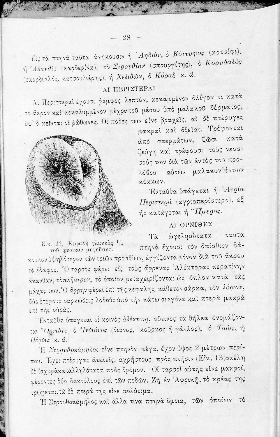 Σχολικό εγχειρίδιο της Α' Ελληνικού Σχολείου για το μάθημα της Φυσικής Ιστορίας. Το εγχειρίδιο περιλαμβάνει τα βασικά ζητήματα της επιστήμης της ζωολογίας (κατηγορίες και διαφορές μεταξύ ζώων, πτηνών και ...