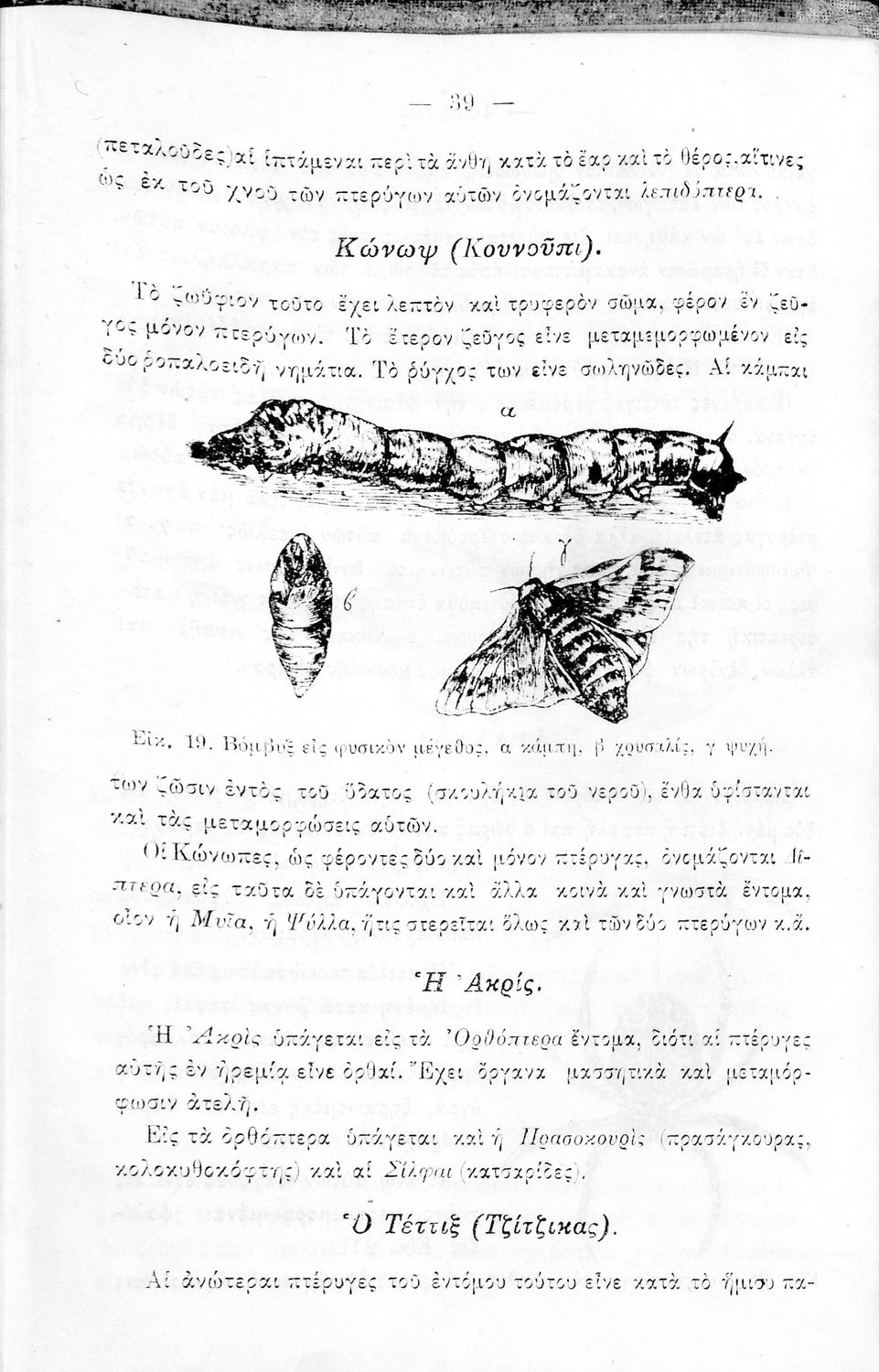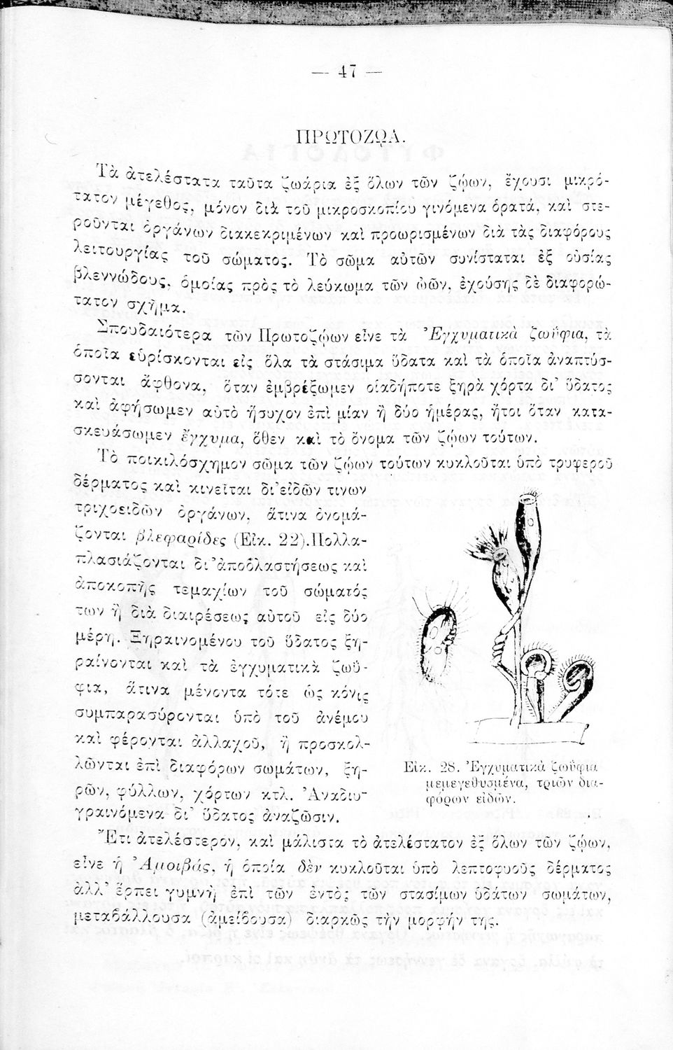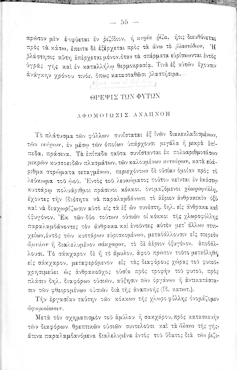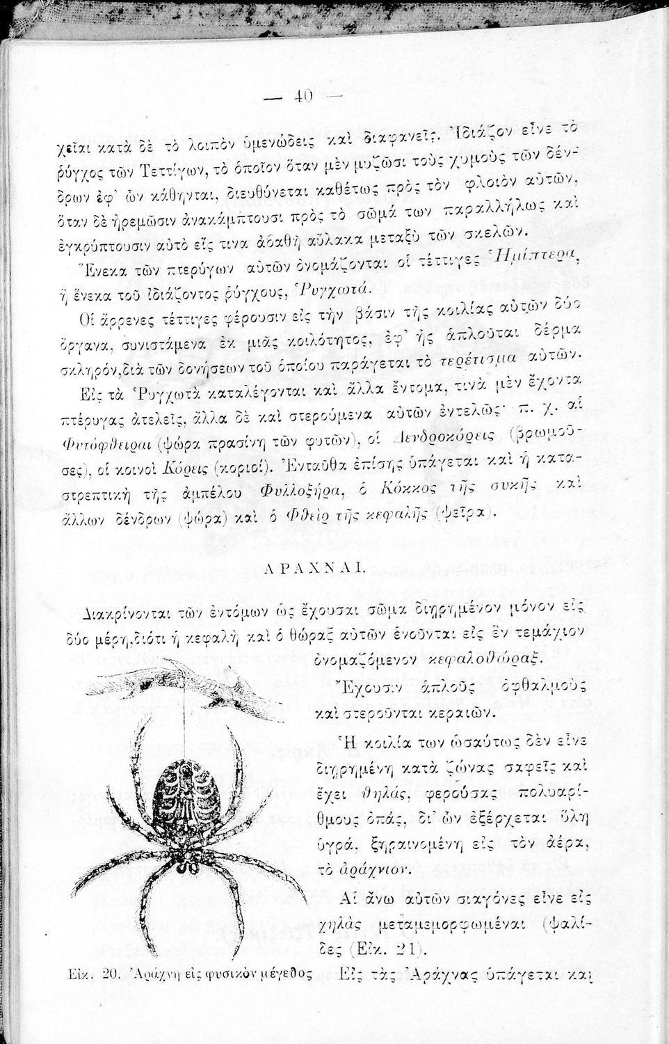 Σχολικό Εγχειρίδιο Φυσικής Ιστορίας για τις Α' και Β' Ελληνικών Σχολείων και Παρθεναγωγείων που περιλαμβάνει στοιχεία ζωολογίας και της φυτολογίας και διακρίνει τα ζώα και τα φυτά ανάλογα με την συνομοταξία ...