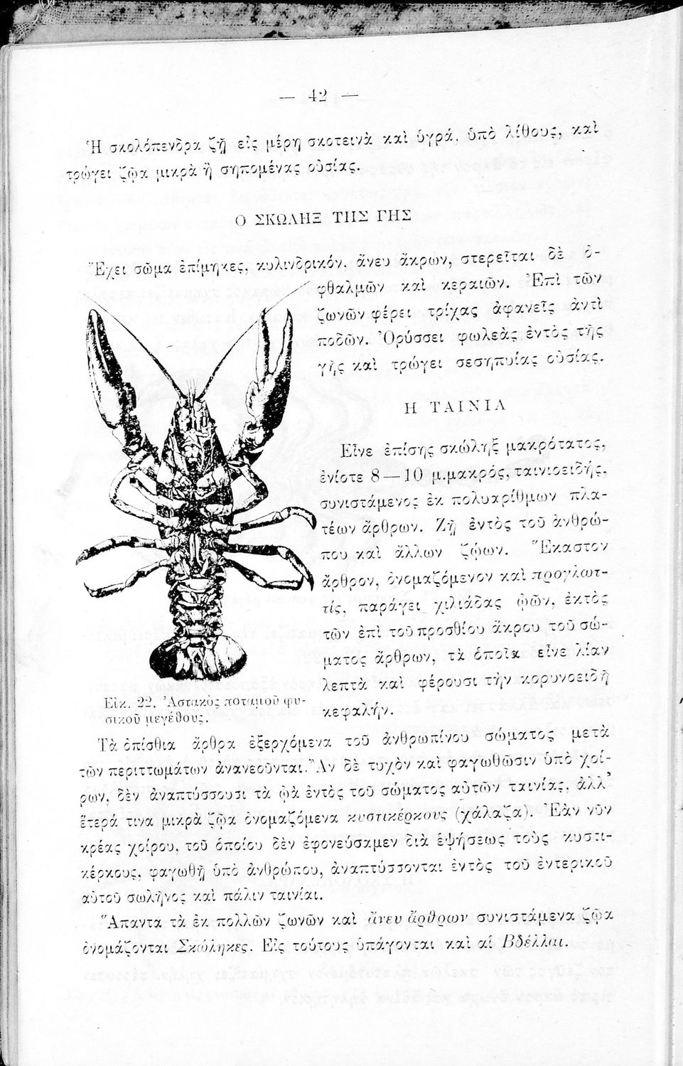 Σχολικό εγχειρίδιο Γεωγραφίας για την Α΄ Ελληνικών Σχολείων. Βιβλίο Φυσικής Ιστορίας με ζώα και φυτά που αναφέρονται οι χρήσεις τους, οι εχθροί και οι προφυλάξεις.