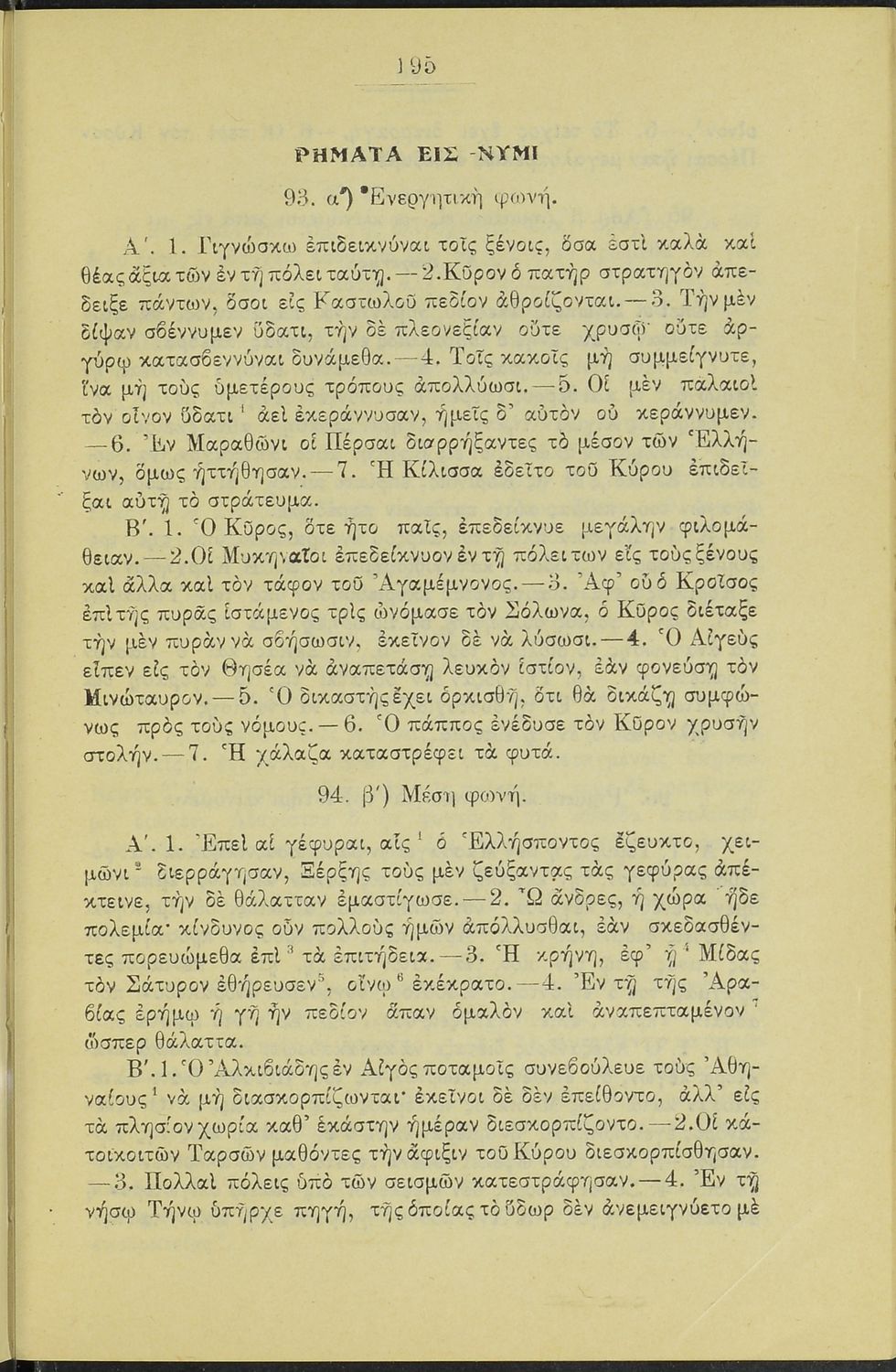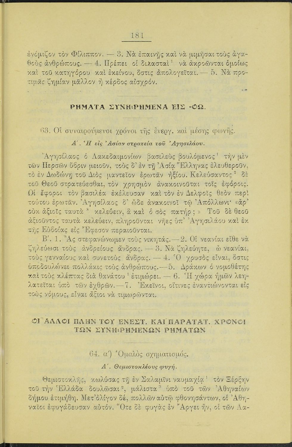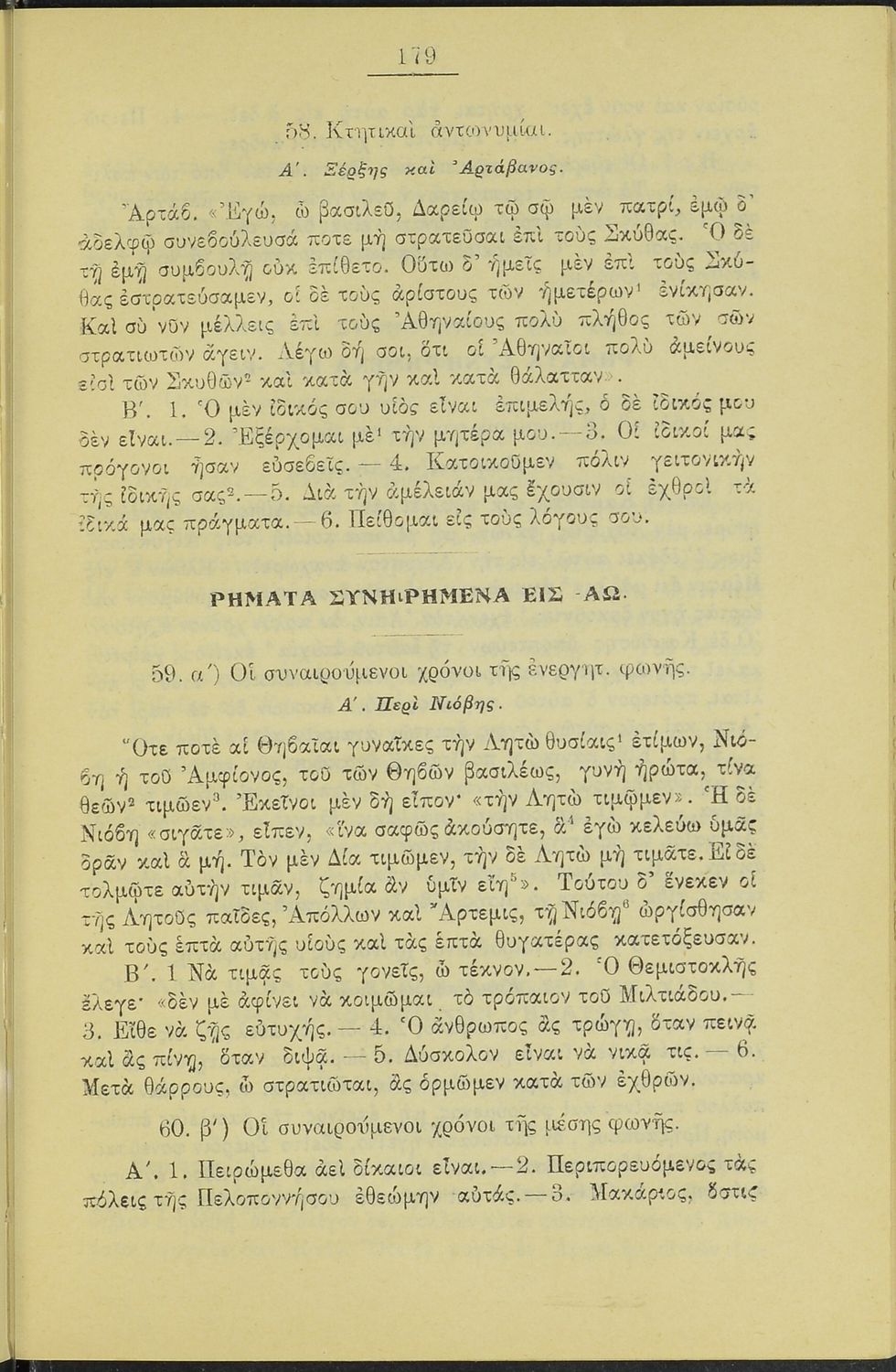 Σχολικό εγχειρίδιο Αρχαίων Ελληνικών για τα Ελληνικά Σχολεία, Γυμνάσια και Παρθεναγωγεία που περιλαμβάνει γραμματική και συντακτικό της αρχαίας ελληνικής και κατάλογο ανωμάλων ρημάτων.