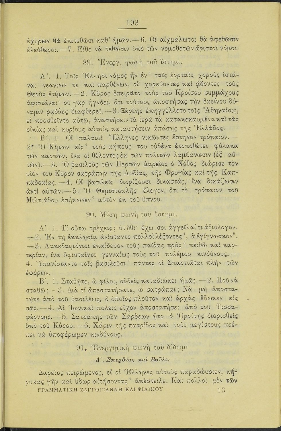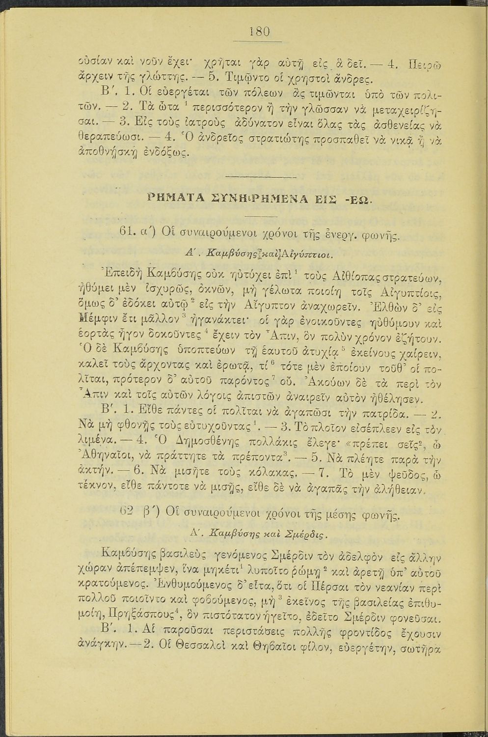 Σχολικό εγχειρίδιο Αρχαίων Ελληνικών για τα Ελληνικά Σχολεία και Παρθεναγωγεία που περιλαμβάνει κανόνες της γραμματικής της αρχαίας ελληνικής και είναι χωρισμένη στο φθογγολογικό και στο τυπολογικό μέρος.