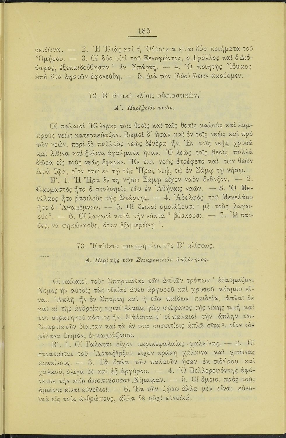 Μαθητικό βοήθημα Αρχαίων Ελληνικών για τα Ελληνικά Σχολεία, Παρθεναγωγεία και Γυμνάσια που περιλαμβάνει γραμματική της αρχαίας ελληνικής και κατάλογο ανωμάλων ρημάτων.
