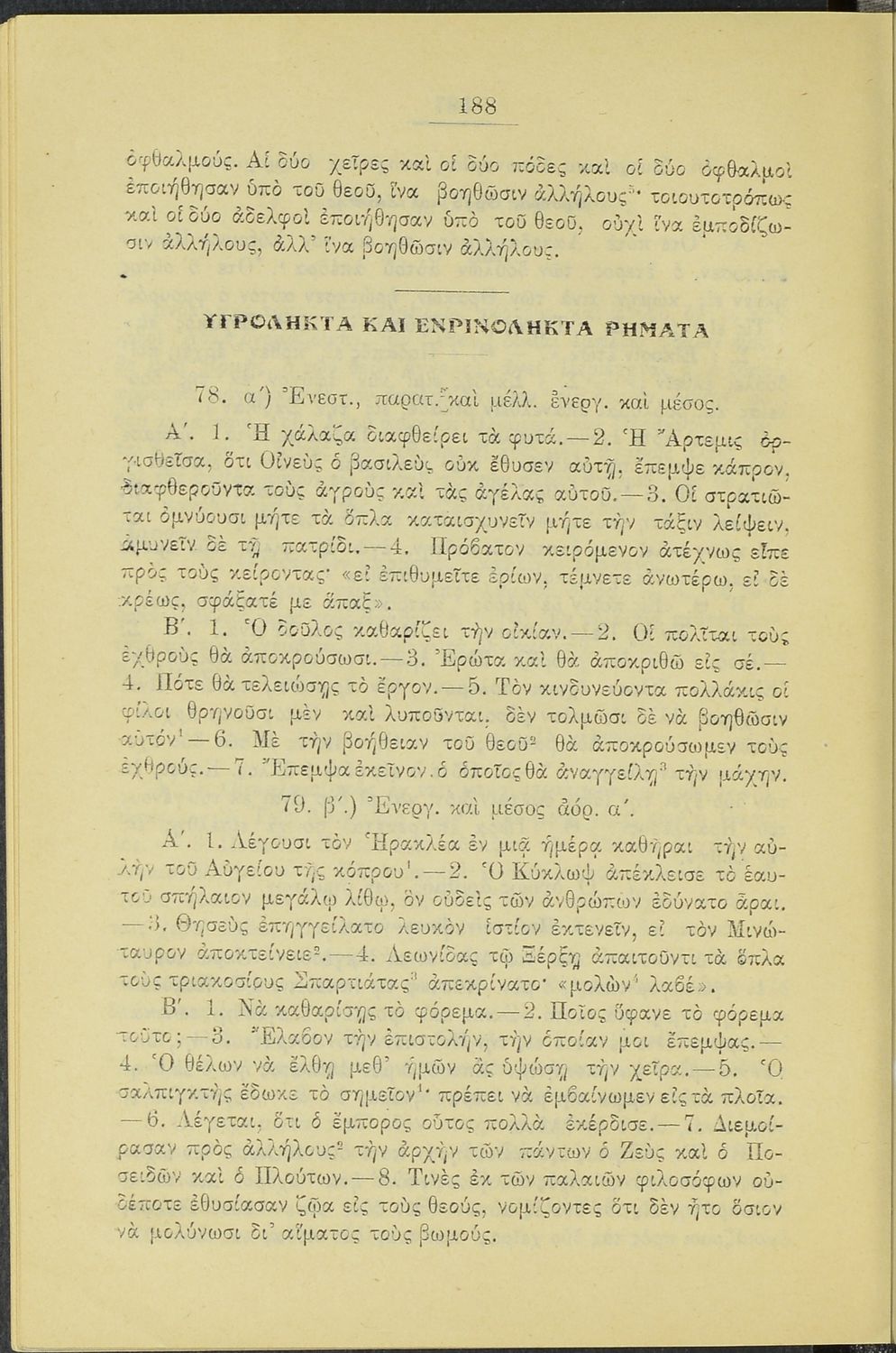 Σχολικό εγχειρίδιο Αρχαίων Ελληνικών για τα Ελληνικά Σχολεία και Παρθεναγωγεία που περιέχει τους κανόνες γραμματικής και είναι χωρισμένο σε φθογγολογικό, τυπολογικό και ετυμολογικό μέρος.