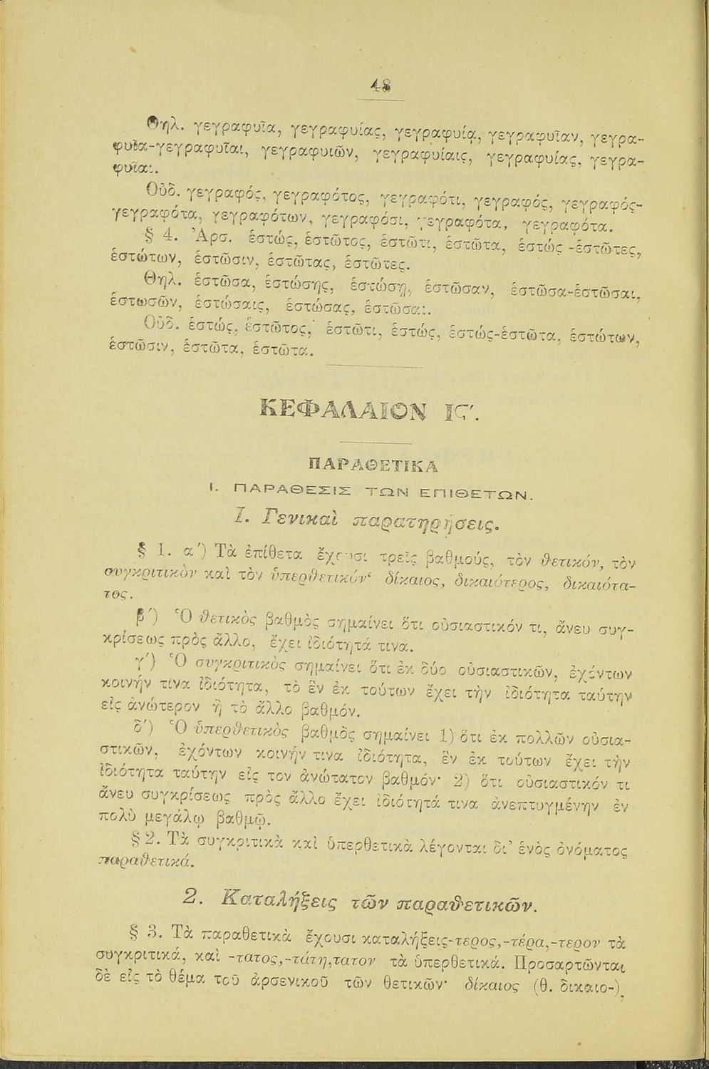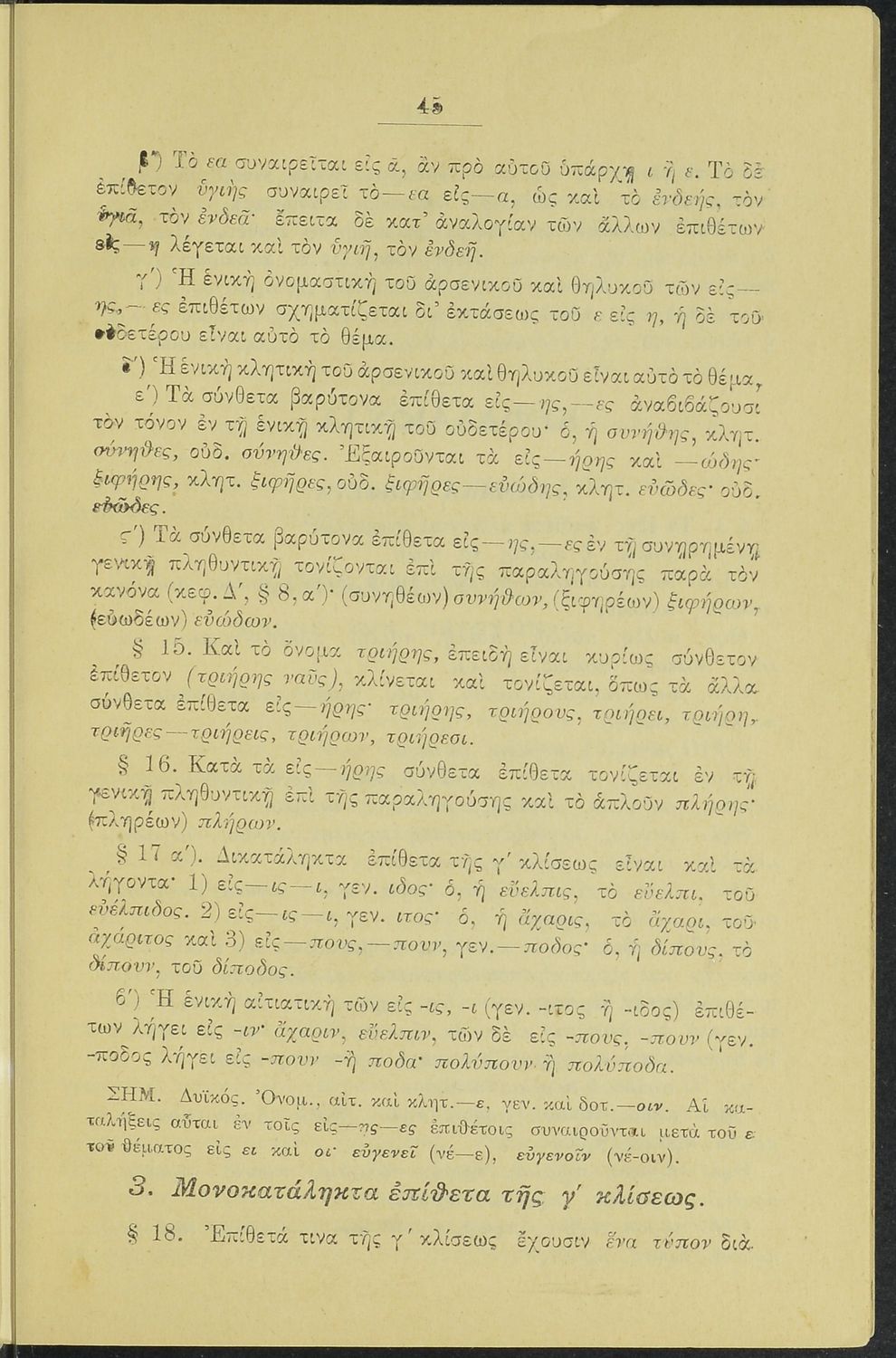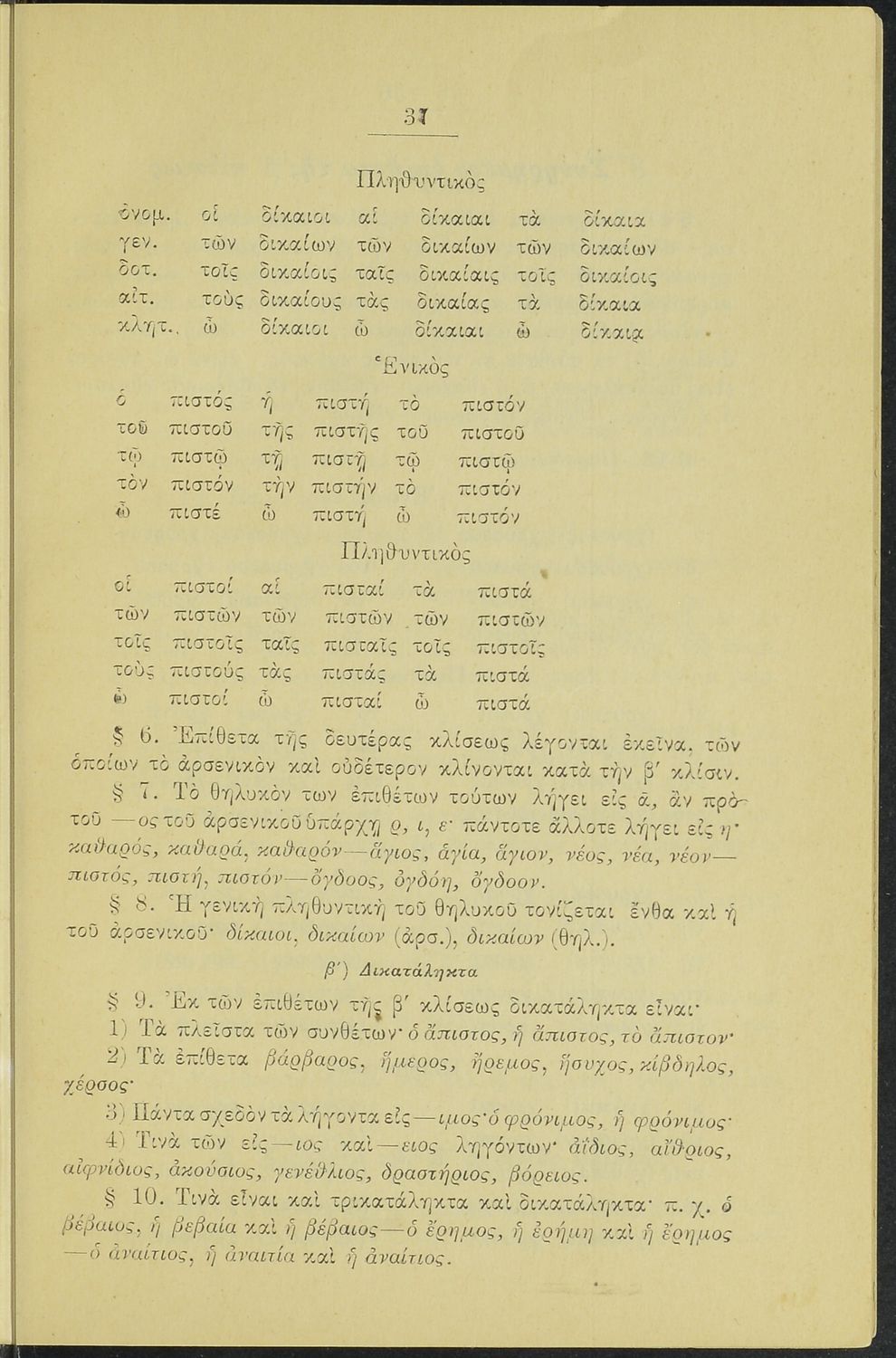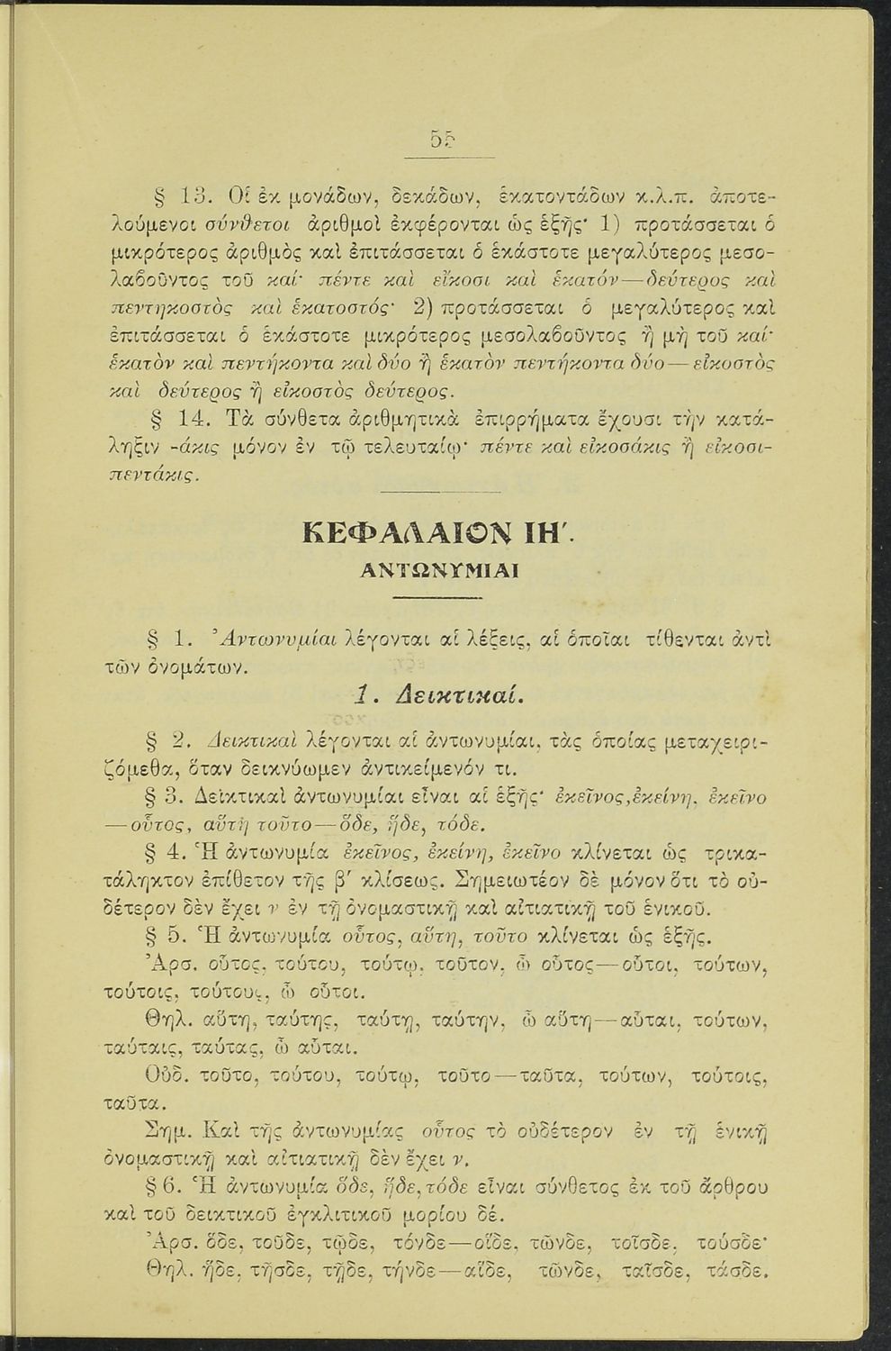 Σχολικό εγχειρίδιο Αρχαίων Ελληνικών για τα Ελληνικά Σχολεία και Παρθεναγωγεία που περιέχει τους κανόνες γραμματικής και είναι χωρισμένο σε φθογγολογικό, τυπολογικό και ετυμολογικό μέρος.