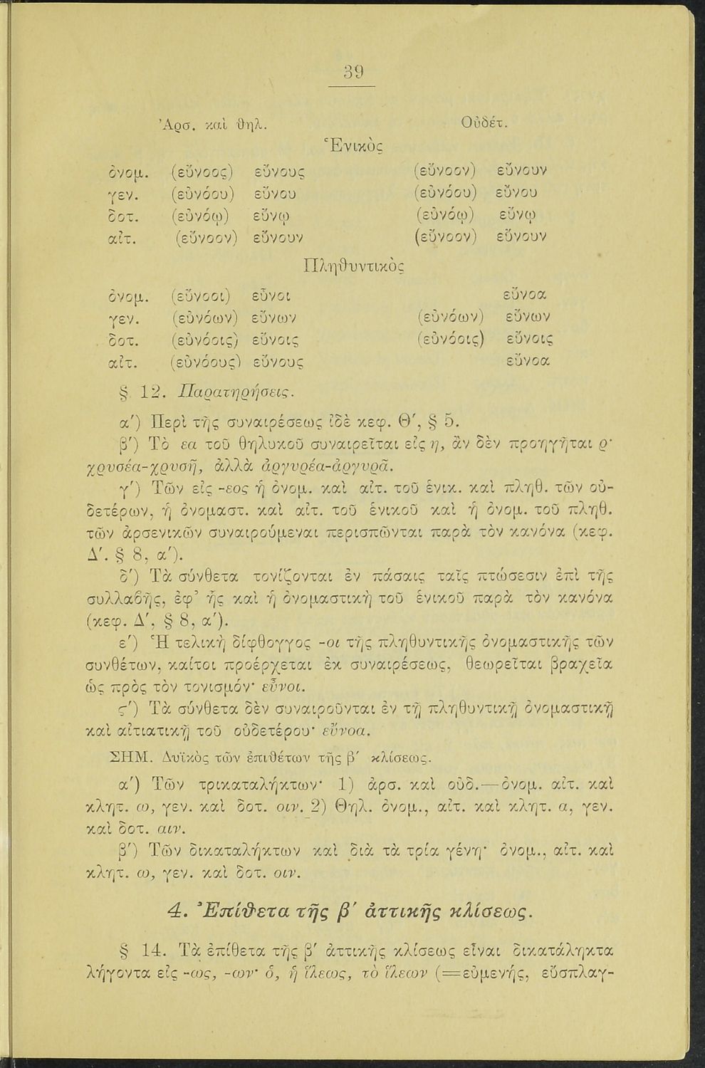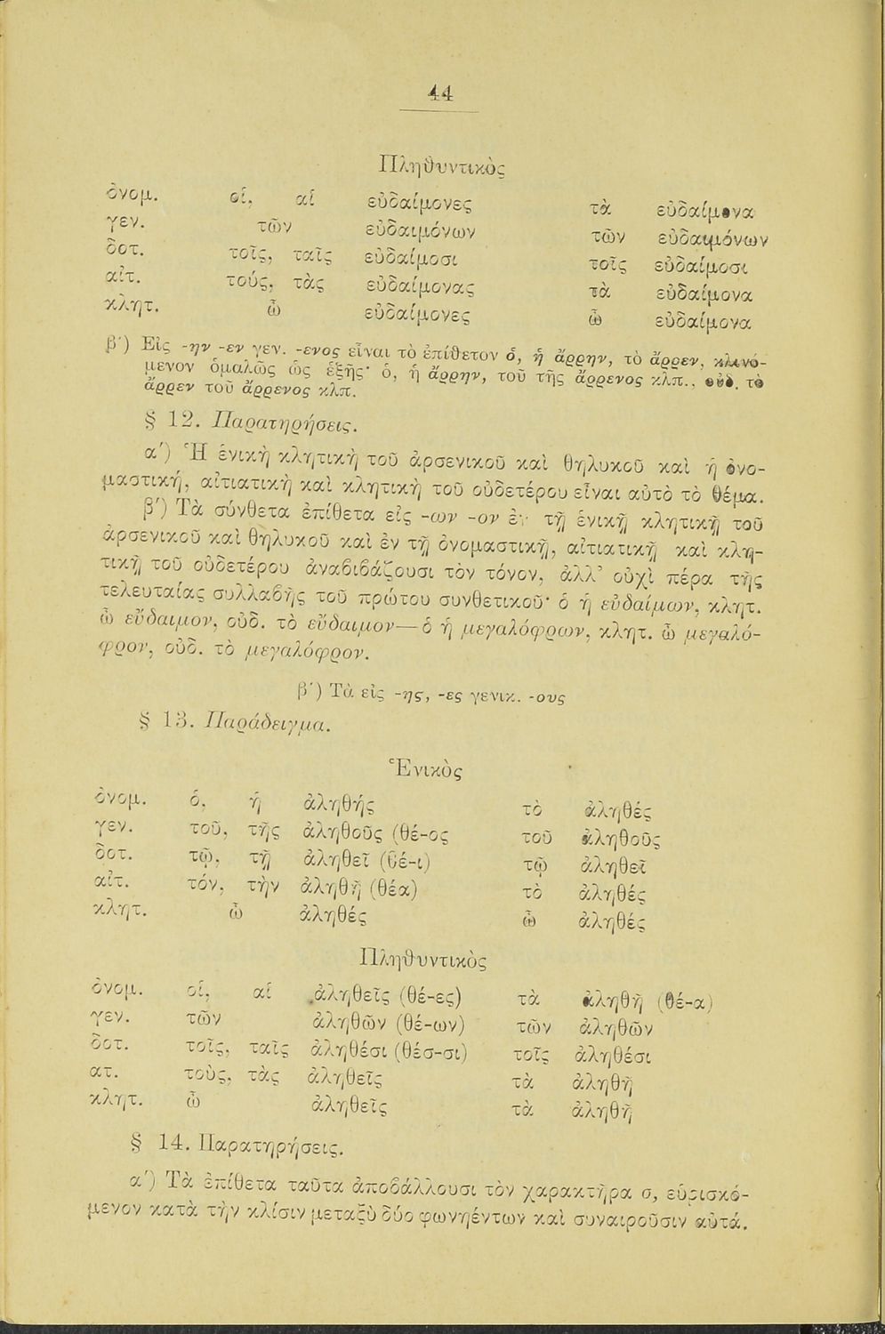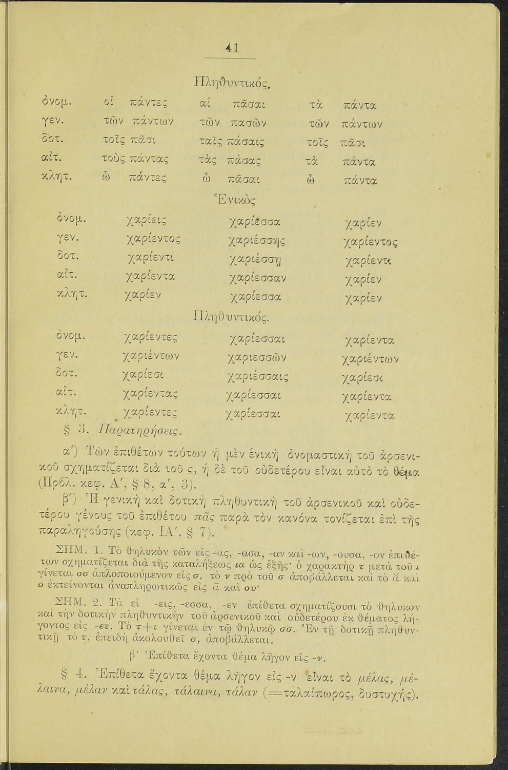 Σχολικό εγχειρίδιο Αρχαίων Ελληνικών για τα Ελληνικά Σχολεία και Παρθεναγωγεία που περιλαμβάνει κανόνες της γραμματικής της αρχαίας ελληνικής και είναι χωρισμένη στο φθογγολογικό και στο τυπολογικό μέρος.