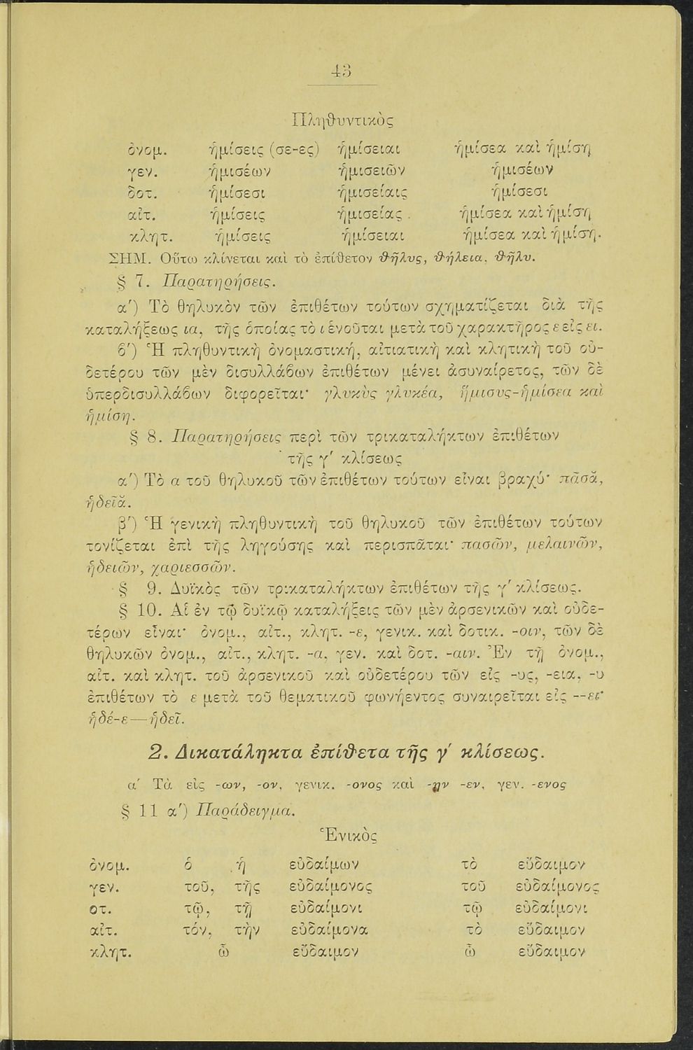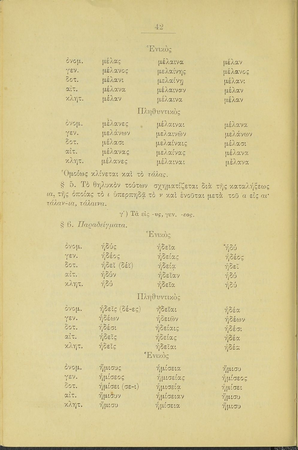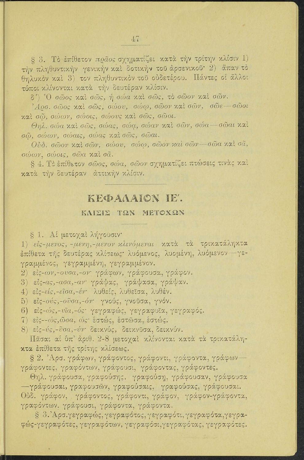 Σχολικό εγχειρίδιο Αρχαίων Ελληνικών για τα Ελληνικά Σχολεία, τα Παρθεναγωγεία και τα Γυμνάσια που περιλαμβάνει τους κανόνες γραμματικής.