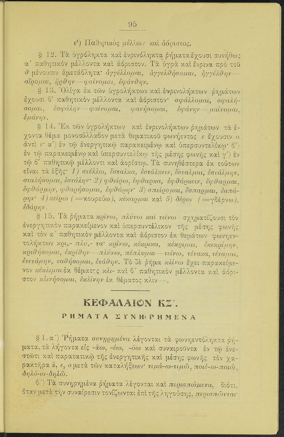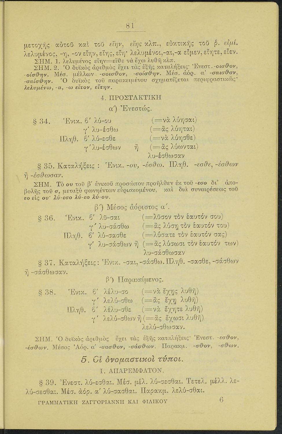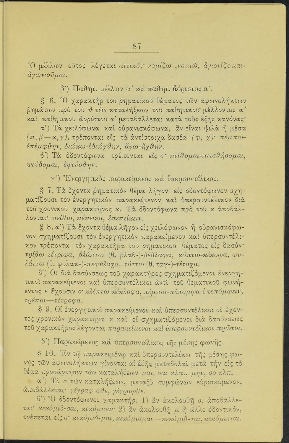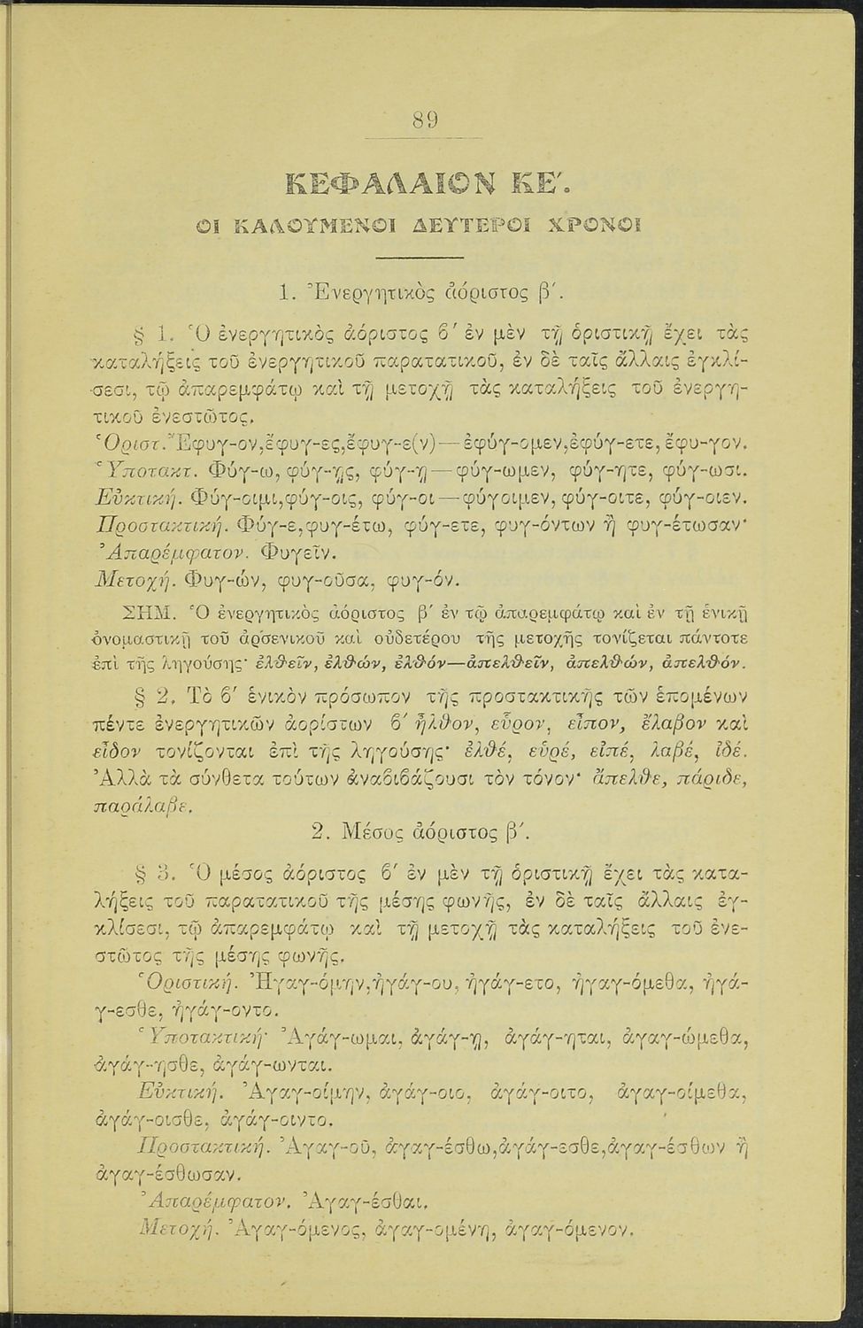 Σχολικό εγχειρίδιο Αρχαίων Ελληνικών για τα Ελληνικά Σχολεία και Παρθεναγωγεία που περιέχει τους κανόνες γραμματικής και είναι χωρισμένο σε φθογγολογικό, τυπολογικό και ετυμολογικό μέρος.
