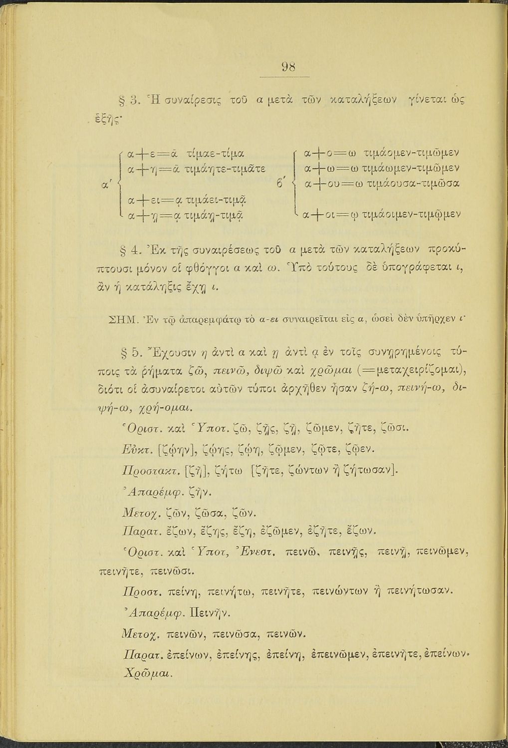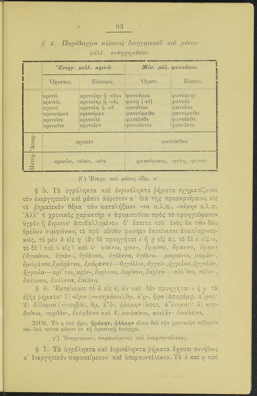 Μαθητικό βοήθημα Αρχαίων Ελληνικών Γυμνασίου, Ελληνικού Σχολείου και Παρθεναγωγείου που περιέχει τα ανώμαλα ρήματα της αττικής διαλέκτου και γραμματικές σημειώσεις.