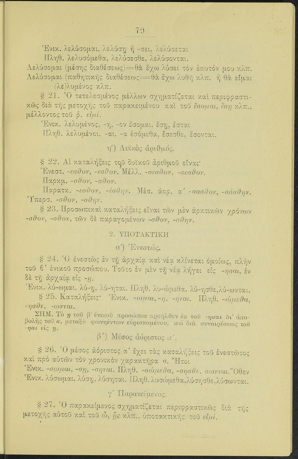 Σχολικό εγχειρίδιο Αρχαίων Ελληνικών για τα Ελληνικά Σχολεία, τα Παρθεναγωγεία και τα Γυμνάσια που περιλαμβάνει τους κανόνες γραμματικής.