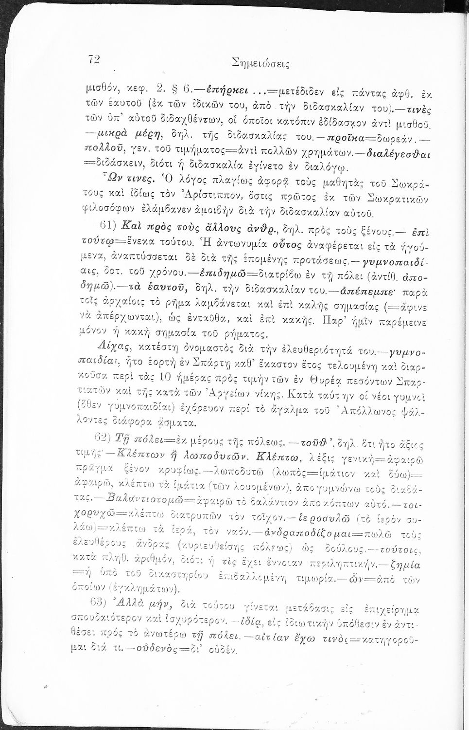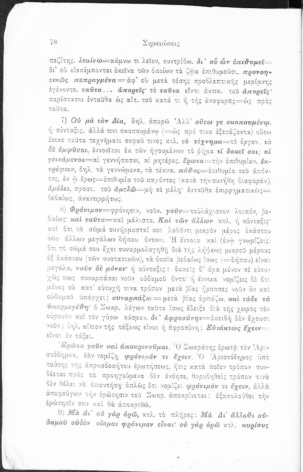 Μαθητικό βοήθημα Β΄ Τετραταξίου Γυμνασίου που περιλαμβάνει την μετάφραση αποσπασμάτων από το έργο του Ξενοφώντα Απομνημονεύματα και πραγματολογικά, γραμματικά και λεξιλογικά σχόλια.