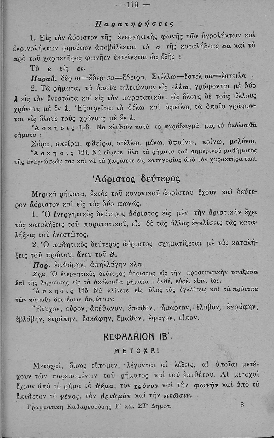 Μαθητικό βοήθημα Γραμματικής Ε΄ και ΣΤ΄ Δημοτικού που περιέχει θεωρία και ασκήσεις της γραμματικής για την εκμάθηση της καθαρεύουσας.