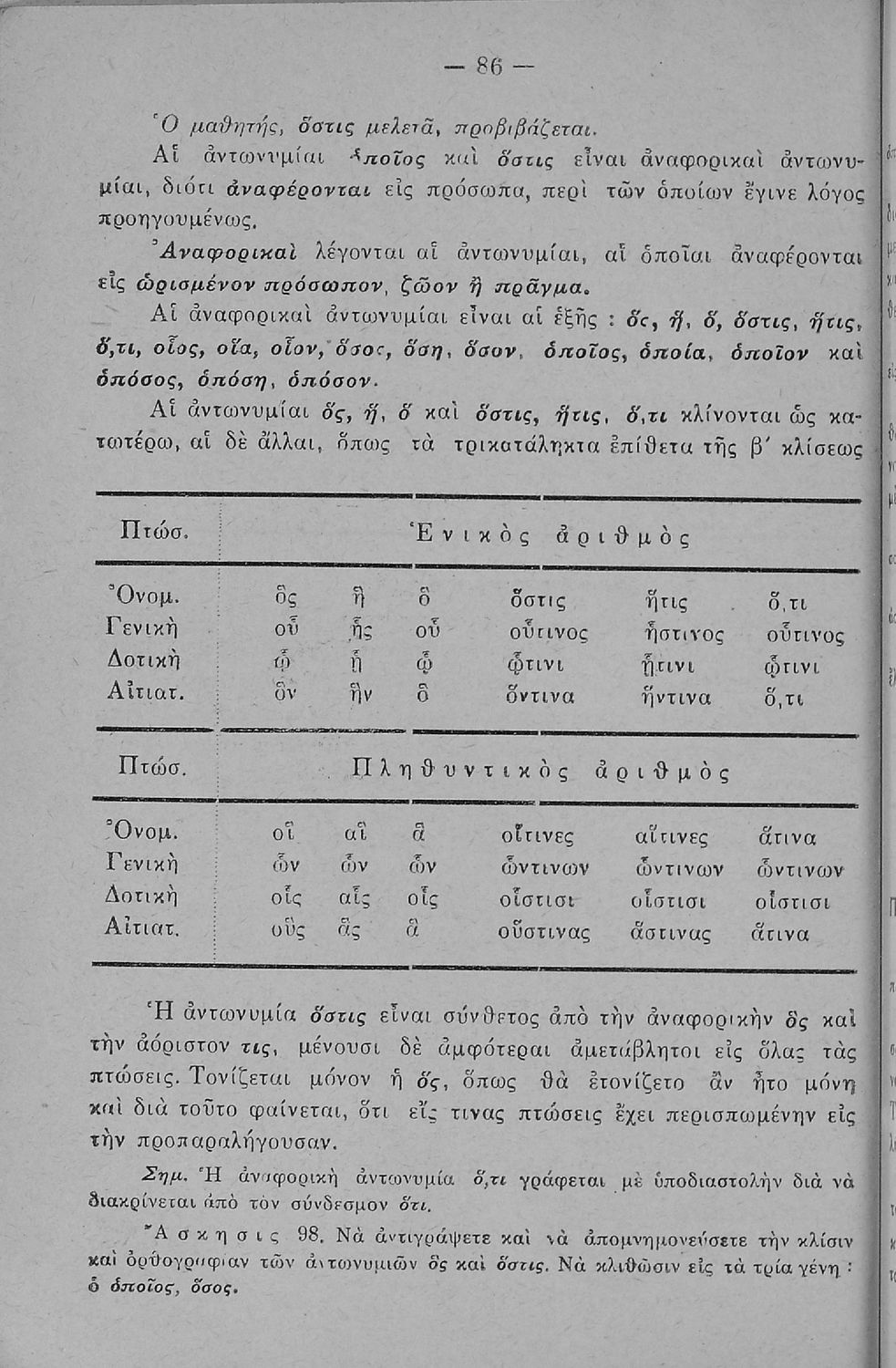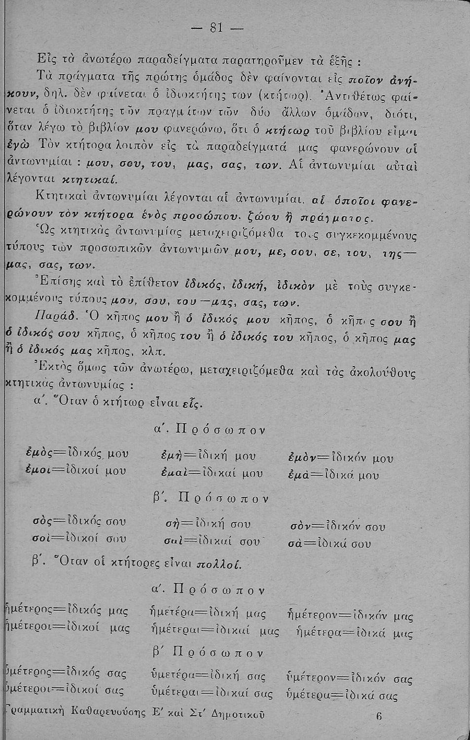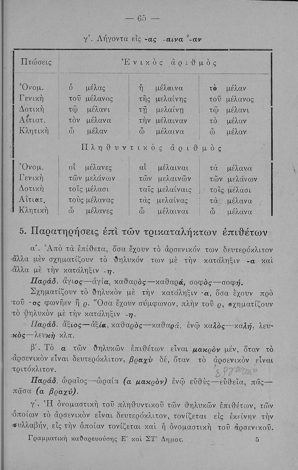 Μαθητικό βοήθημα Γραμματικής Ε΄ και ΣΤ΄ Δημοτικού που περιέχει θεωρία και ασκήσεις της γραμματικής για την εκμάθηση της καθαρεύουσας.