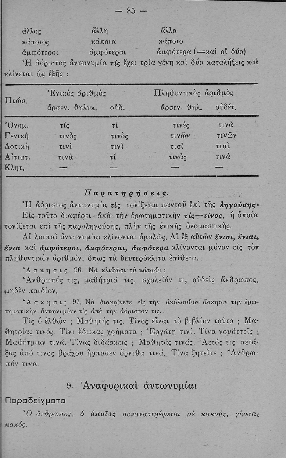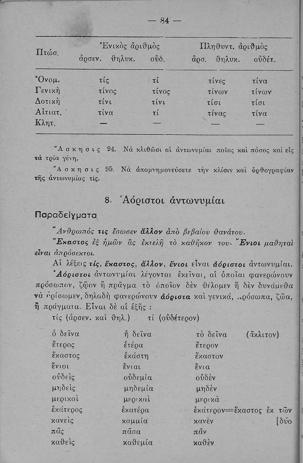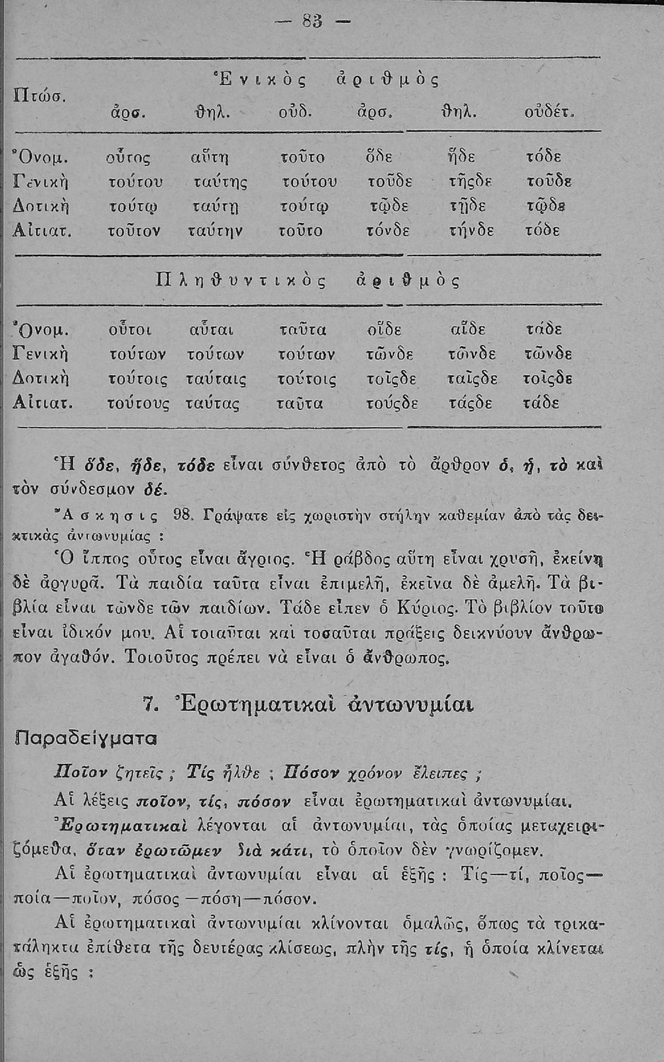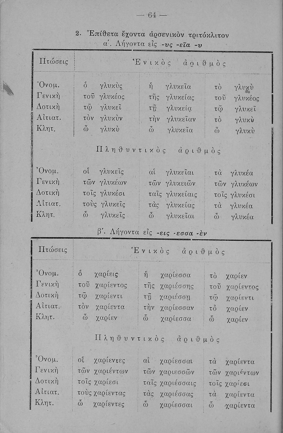 Μαθητικό βοήθημα Γραμματικής Ε΄ και ΣΤ΄ Δημοτικού που περιέχει θεωρία και ασκήσεις της γραμματικής για την εκμάθηση της καθαρεύουσας.