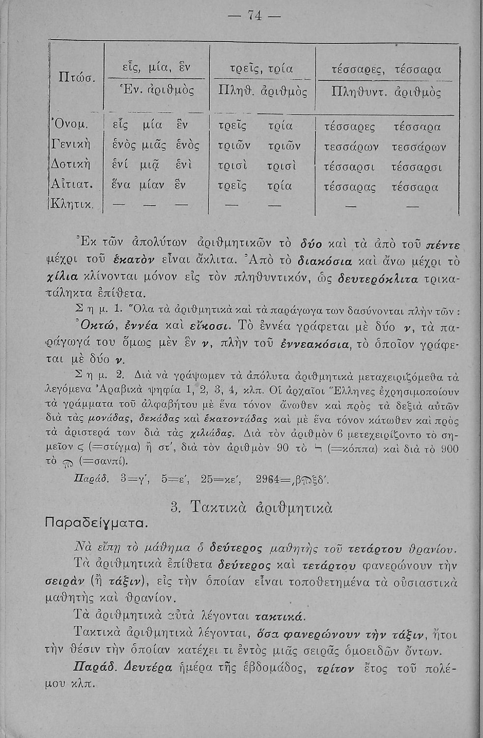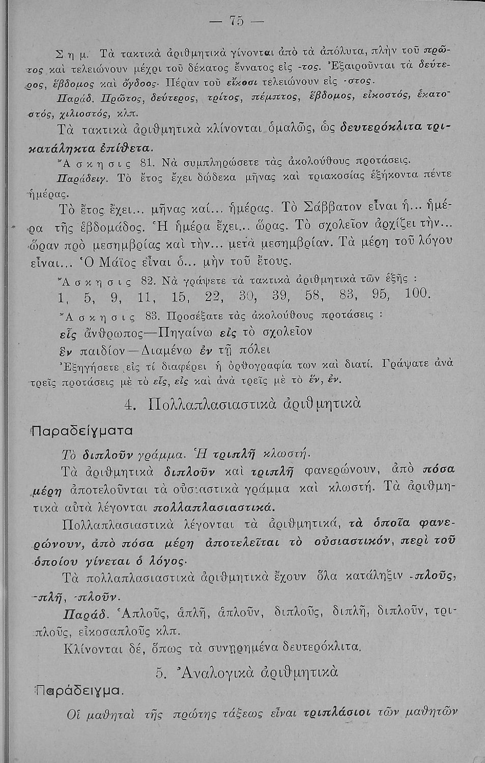 LDR 01108 2200205 4500 035 ## _a01-18949 040 ## _aΙνστιτούτο Εκπαιδευτικής Πολιτικής 041 ## _ael 100 ## _aΜαρία Γ. Παπαϊωάννου _aΚλ. Δ. Κάρναβος 110 ## _a18949 245 0# _aΓραμματική Καθαρευούσης προς χρήσιν των μαθητών Ε΄ και ΣΤ΄ τάξεων των Δημοτικών Σχολείων 260 ## _aΑθήνα _bΙωάννης Ν. Σιδέρης _c1950 300 ## _a134 _c20 520 ## _aΜαθητικό βοήθημα Γραμματικής Ε΄ και ΣΤ΄ Δημοτικού που περιέχει θεωρία και ασκήσεις της γραμματικής για την εκμάθηση της καθαρεύουσας. 521 ## _aΕ' Δημοτικού / ΣΤ' Δημοτικού 522 ## _aΕλλάδα 546 ## _aΚαθαρεύουσα 563 ## _aΜαλακό Εξώφυλλο 583 ## _a52974/1950 _c1950 650 #4 _aΓράμματα _aΕπίθετα _aΟυσιαστικά _aΡήματα _aΦθόγγοι