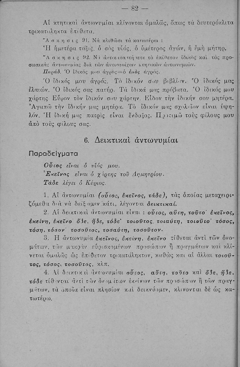 Κωδικός αναγνώρισης: 01-18949 Τίτλος: Γραμματική Καθαρευούσης προς χρήσιν των μαθητών Ε΄ και ΣΤ΄ τάξεων των Δημοτικών Σχολείων Συγγραφέας: Μαρία Γ. Παπαϊωάννου, Κλ. Δ. Κάρναβος Μέγεθος και υπόστρωμα: Μαθητικό βοήθημα, 20εκ., μαλακό εξώφυλλο, 134 σελίδες. |