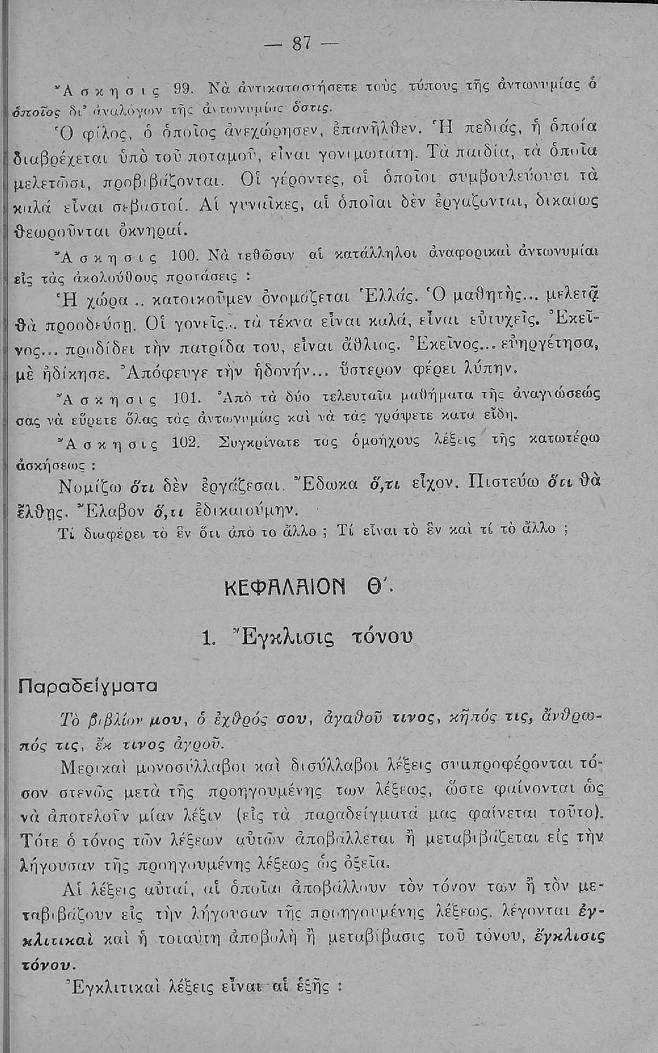 Μαθητικό βοήθημα Γραμματικής Ε΄ και ΣΤ΄ Δημοτικού που περιέχει θεωρία και ασκήσεις της γραμματικής για την εκμάθηση της καθαρεύουσας.