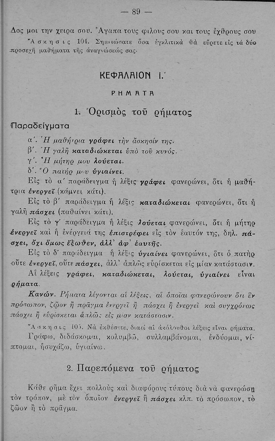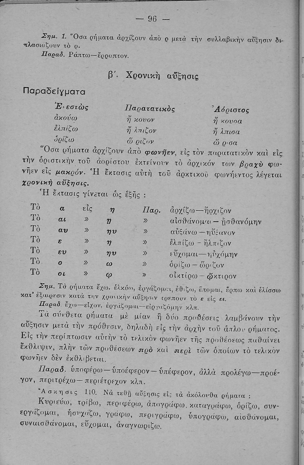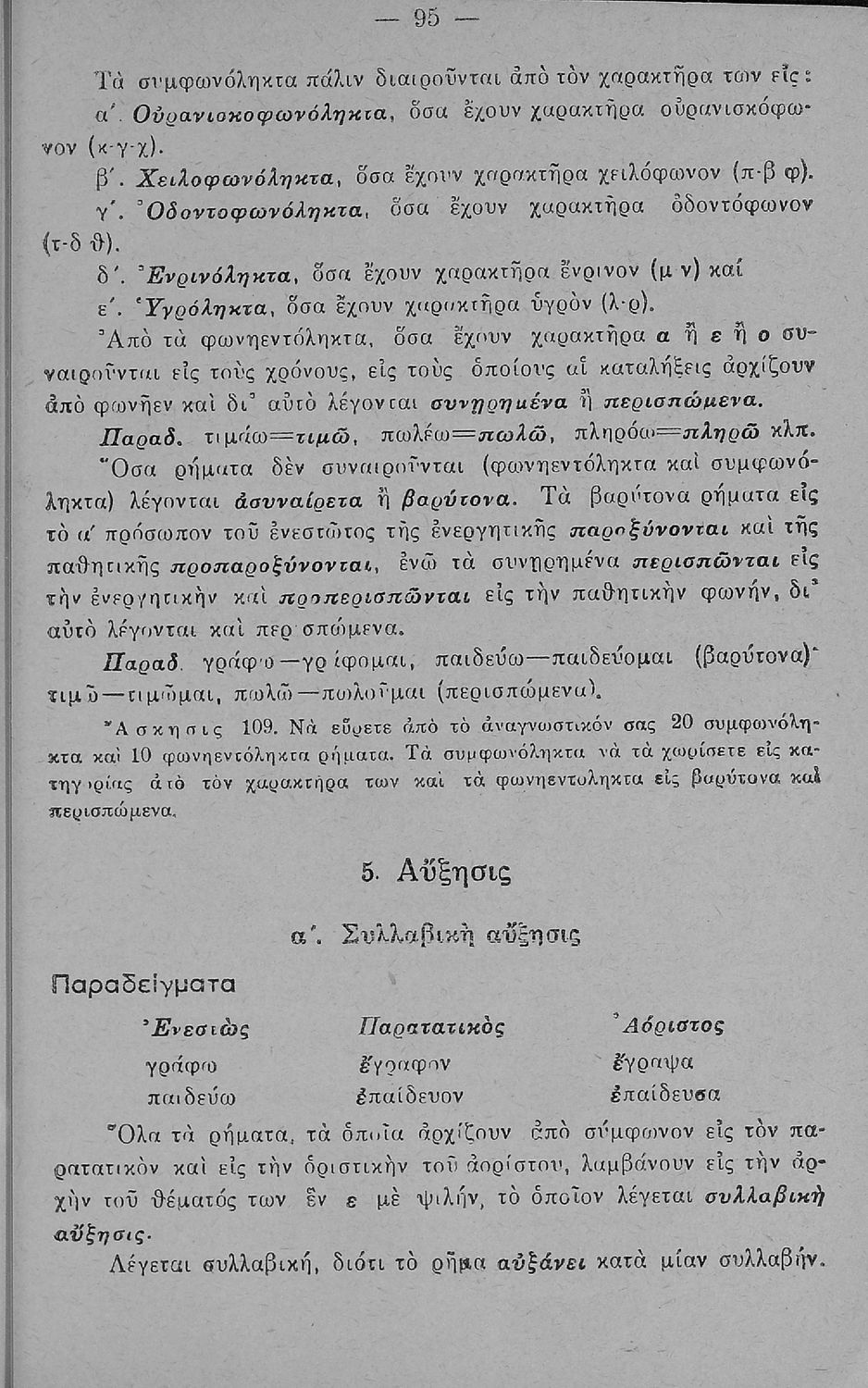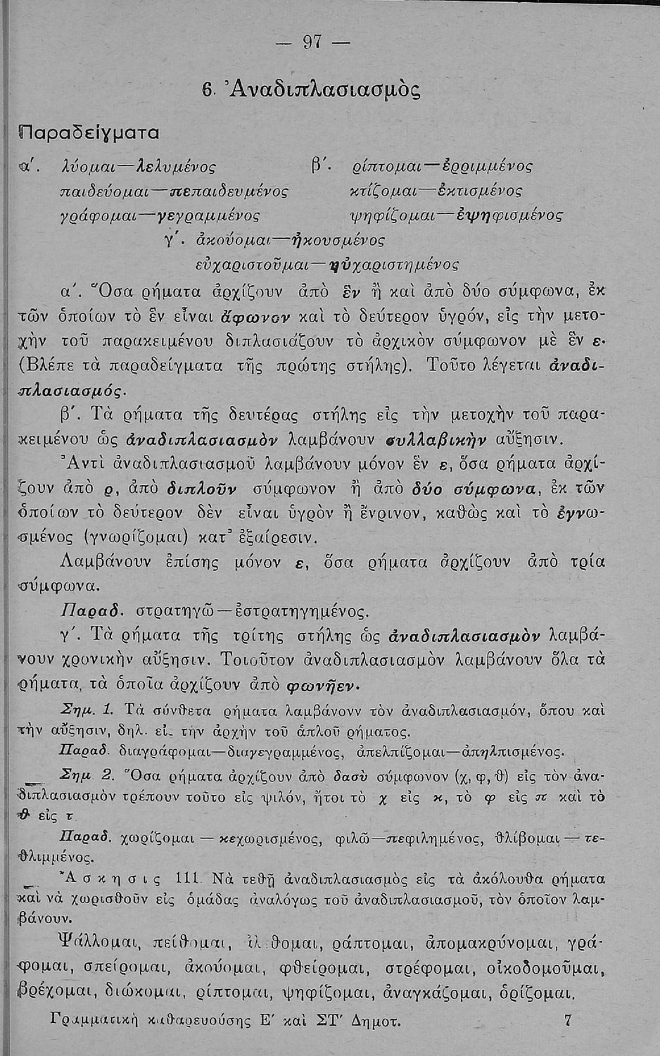 Μαθητικό βοήθημα Ε' και ΣΤ΄ Δημοτικού που περιλαμβάνει τους κανόνες γραμματικής και συντακτικού της καθαρεύουσας.