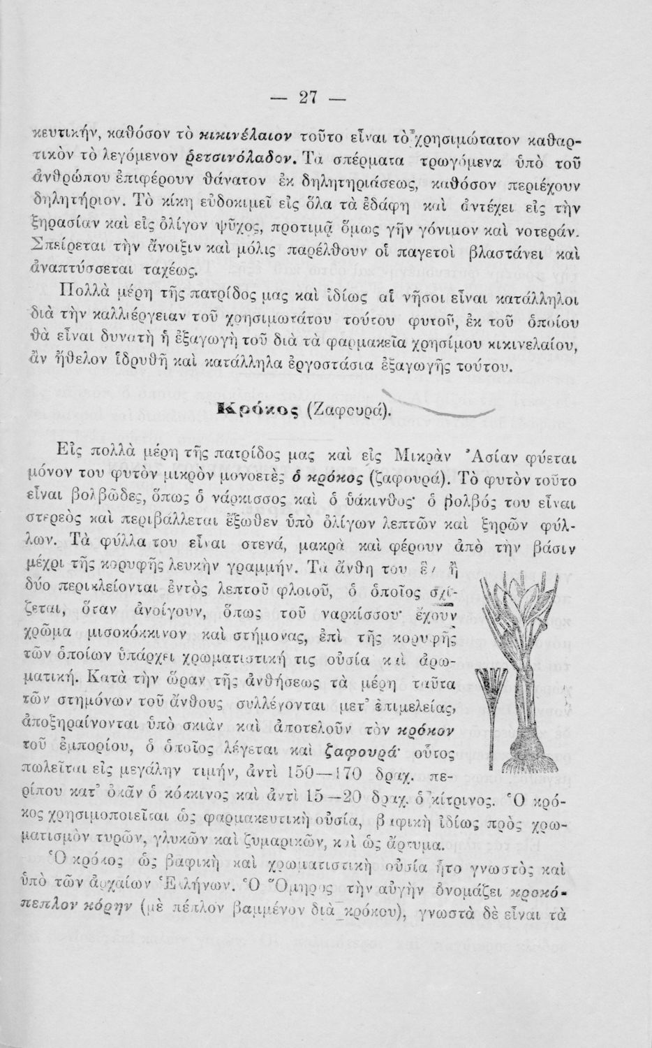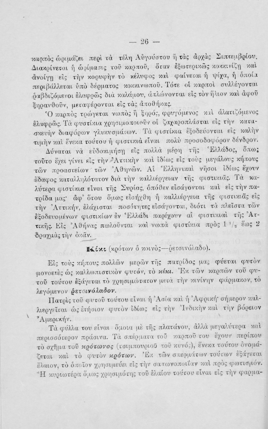Βαθμίδα εκπαίδευσης: Πρωτοβάθμια Τάξη: Ε' Δημοτικού / ΣΤ' Δημοτικού Μάθημα: Φυτολογία Γλώσσα: Καθαρεύουσα Παρουσίαση περιεχομένου: Μαθητικό βοήθημα Φυτολογίας για τις Ε΄ και ΣΤ΄ Δημοτικού που παρουσιάζει φυτά ανάλογα με τον τόπο που ευδοκιμούν και τη χρήση τους. |