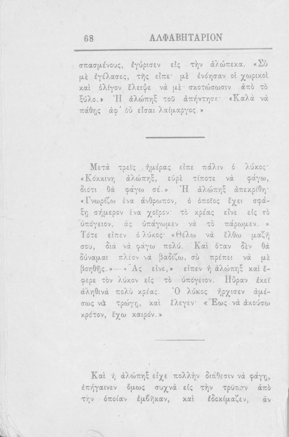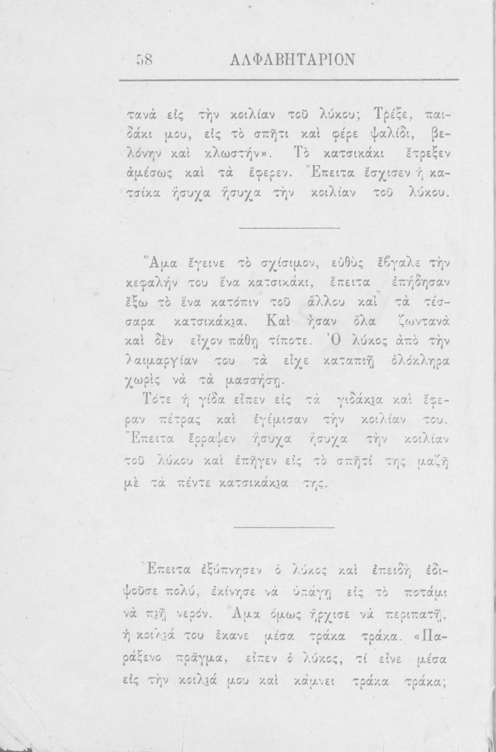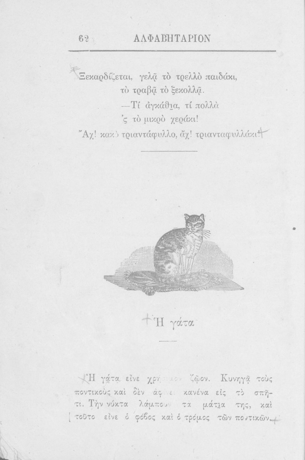 Βαθμίδα εκπαίδευσης: Πρωτοβάθμια Μάθημα: Νέα Ελληνικά Γλώσσα: Καθαρεύουσα Παρουσίαση περιεχομένου: Αναγνωστικό Α΄ Δημοτικού που περιέχει τα γράμματα, συλλαβές και λέξεις, κείμενα και ποιήματα. |