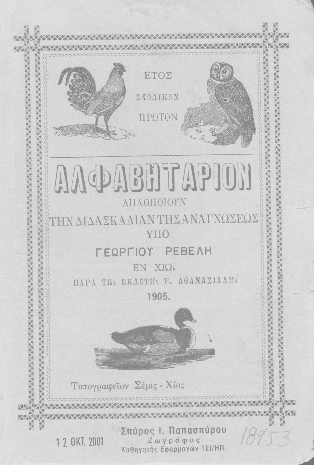 Εκδότης: Β. Αθανασιάδης Έτος έκδοσης: 1905 Τόπος έκδοσης: Χίος |