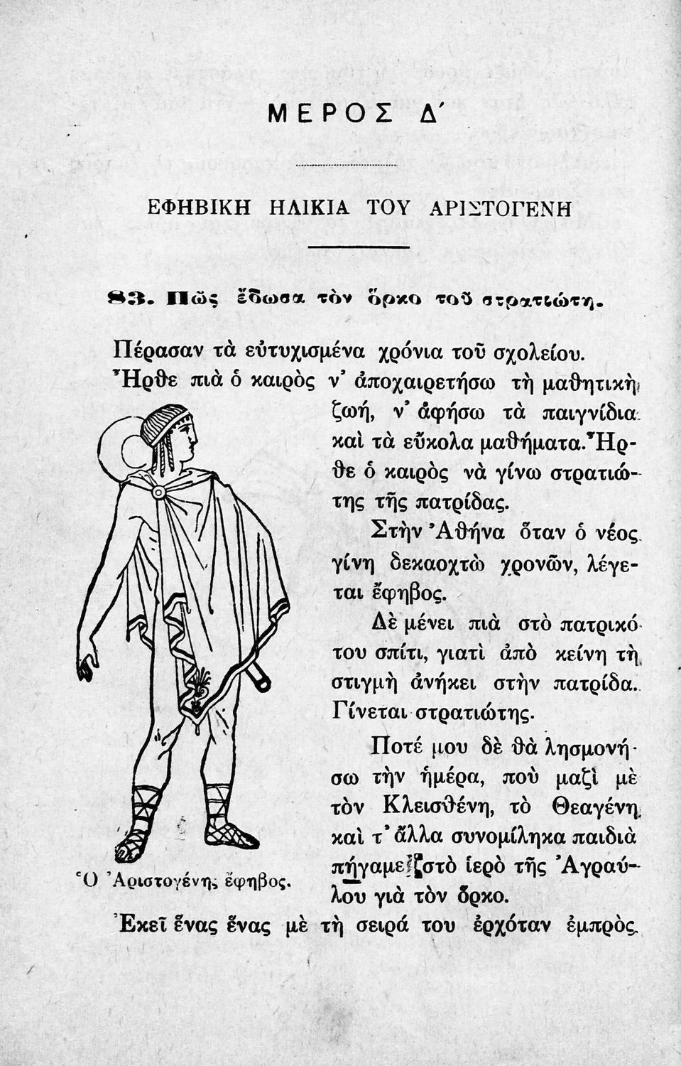 Αναγνωστικό για τους μαθητές της Δ' τάξης του Δημοτικού. Περιέχει ιστορίες από την αρχαία Ελλάδα για την εκμάθηση της Ελληνικής γλώσσας.