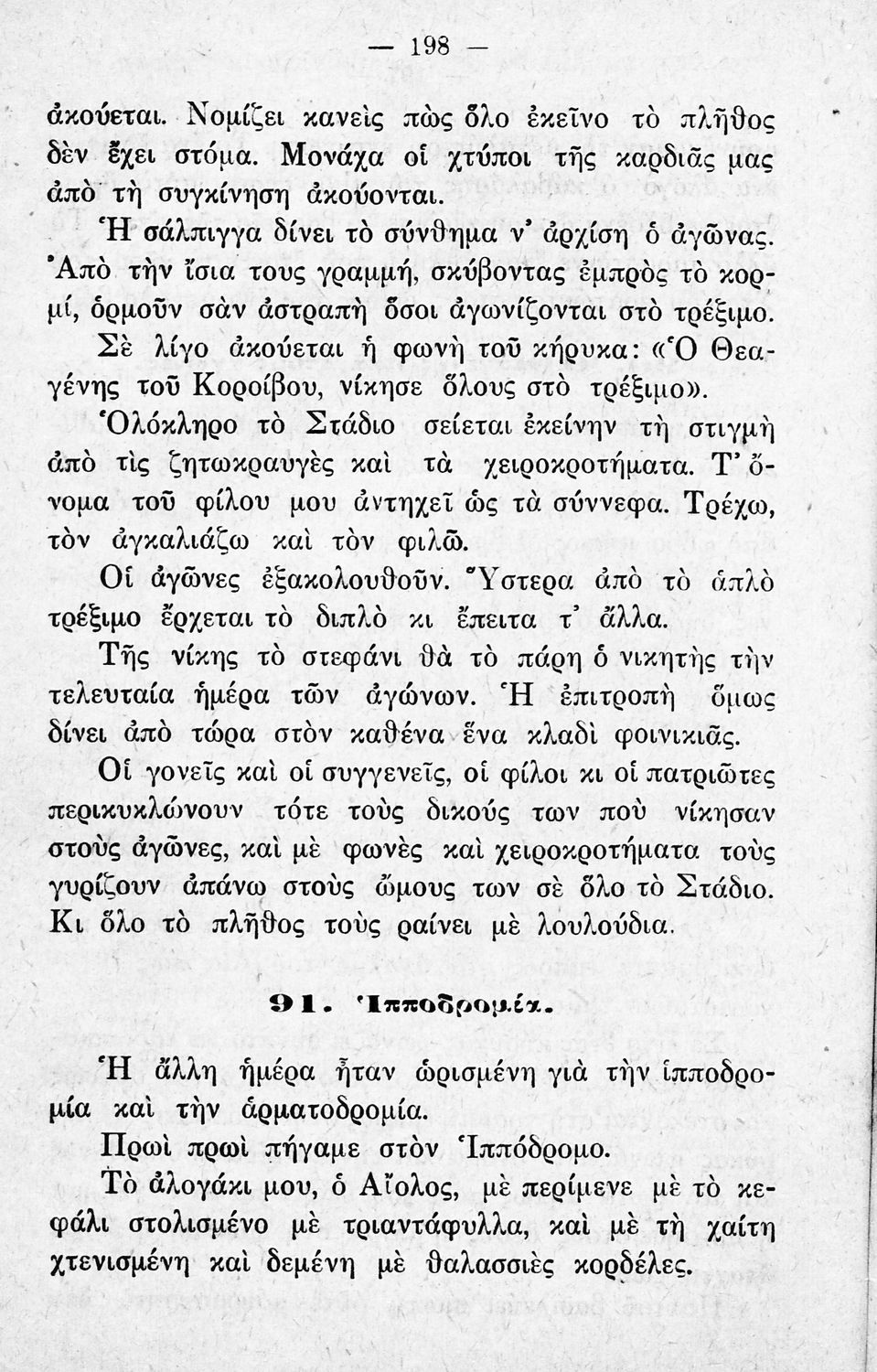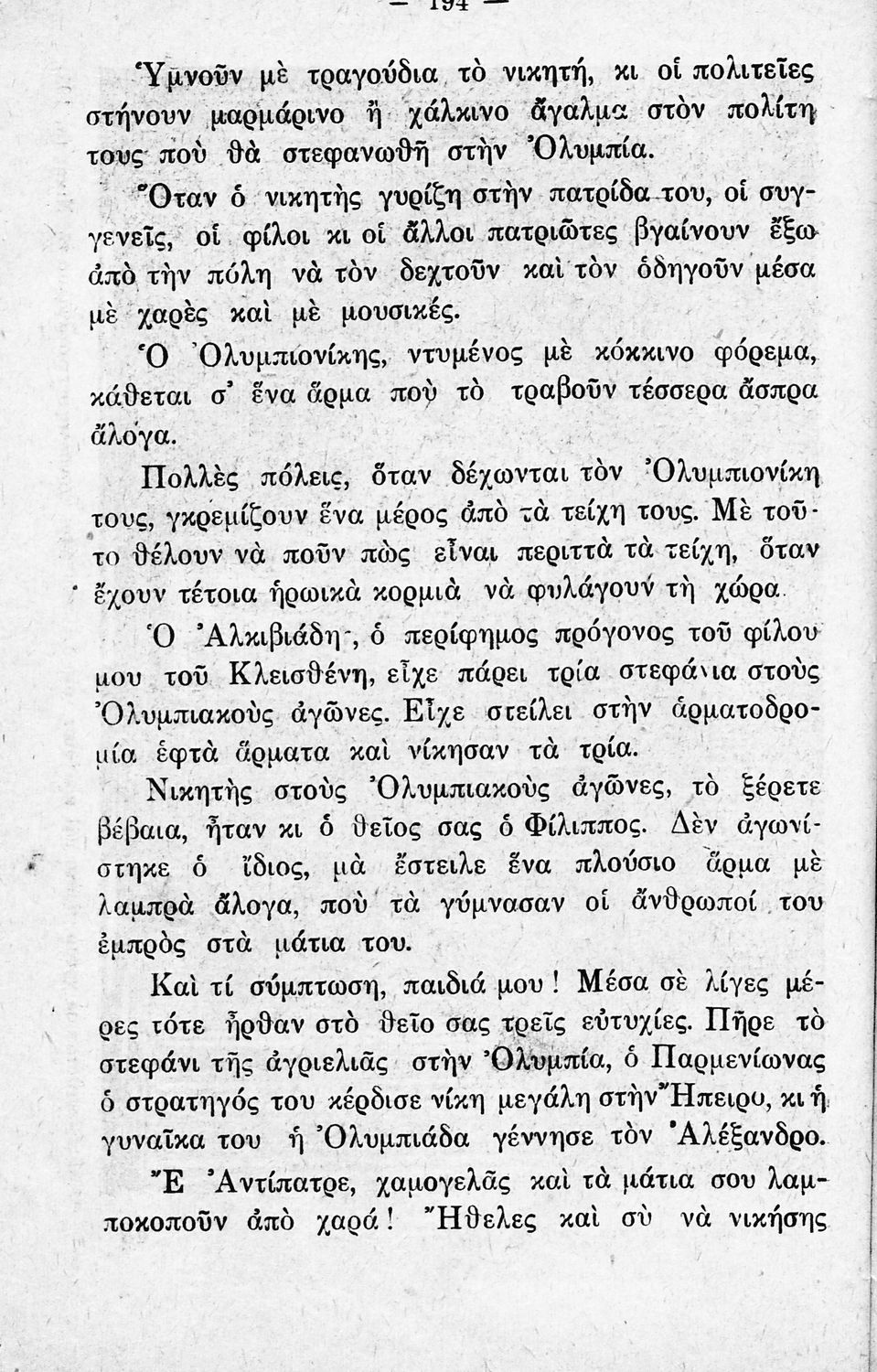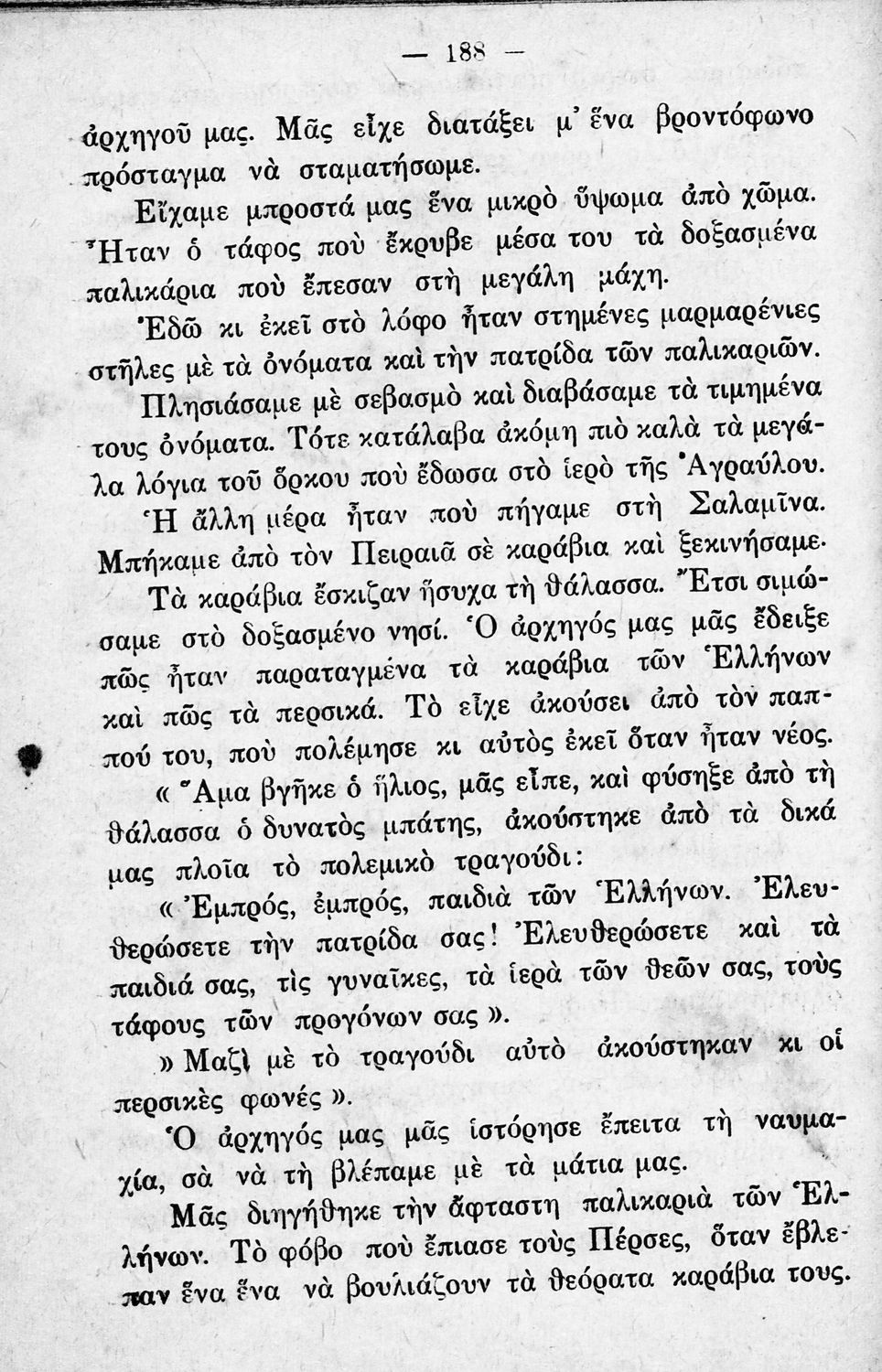 Αναγνωστικό Δ΄ Δημοτικού που περιέχει πεζά και ποιήματα εμπνευσμένα από την ελληνική ιστορία και μυθολογία, την κοινωνική ζωή και την ελληνική φύση.