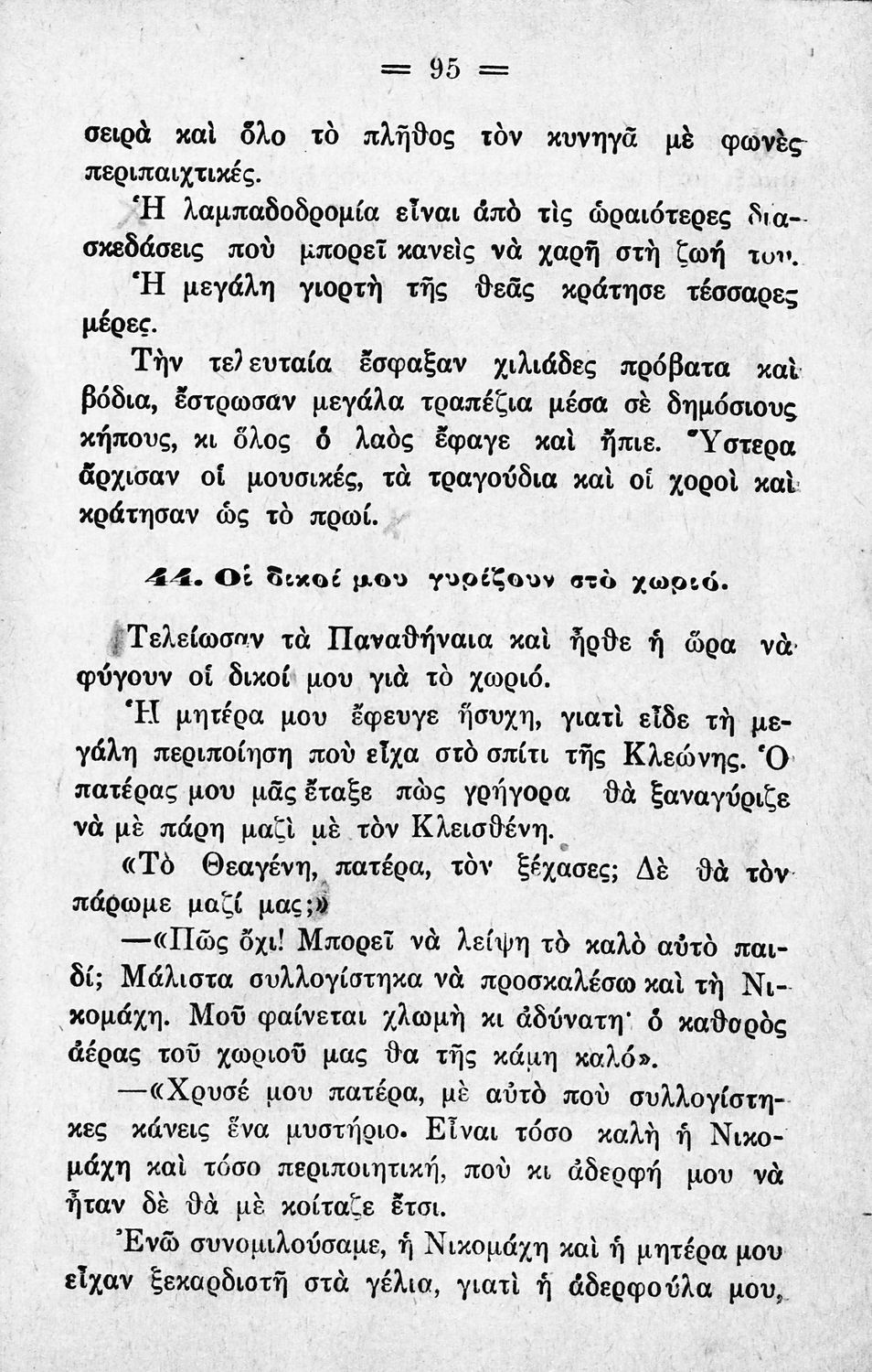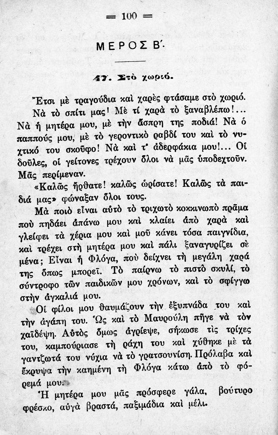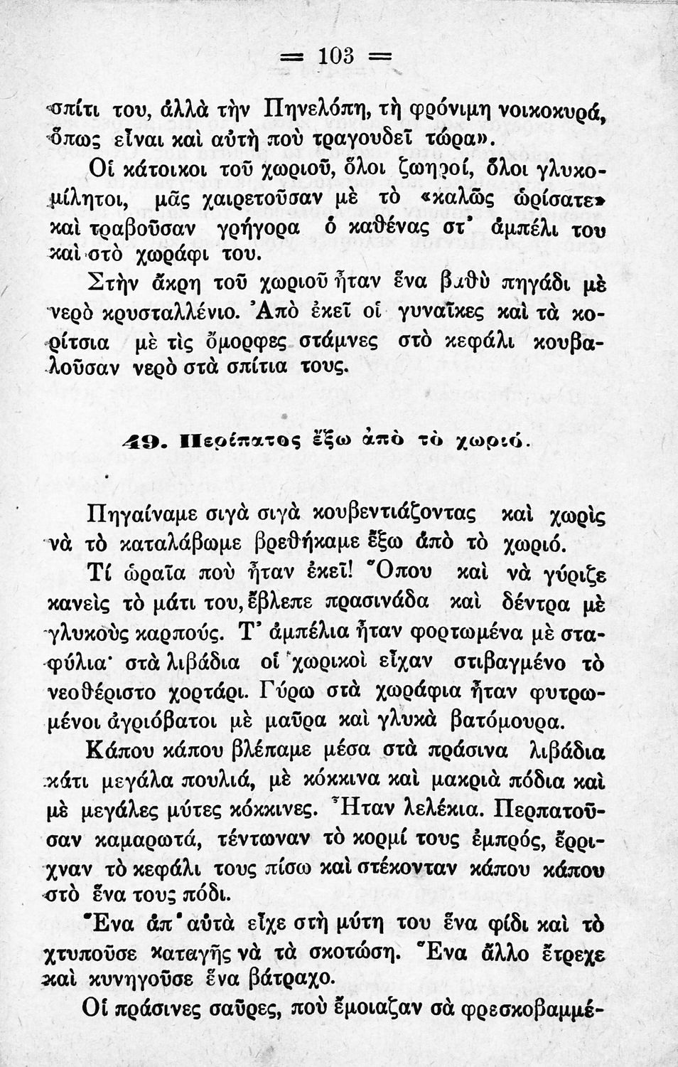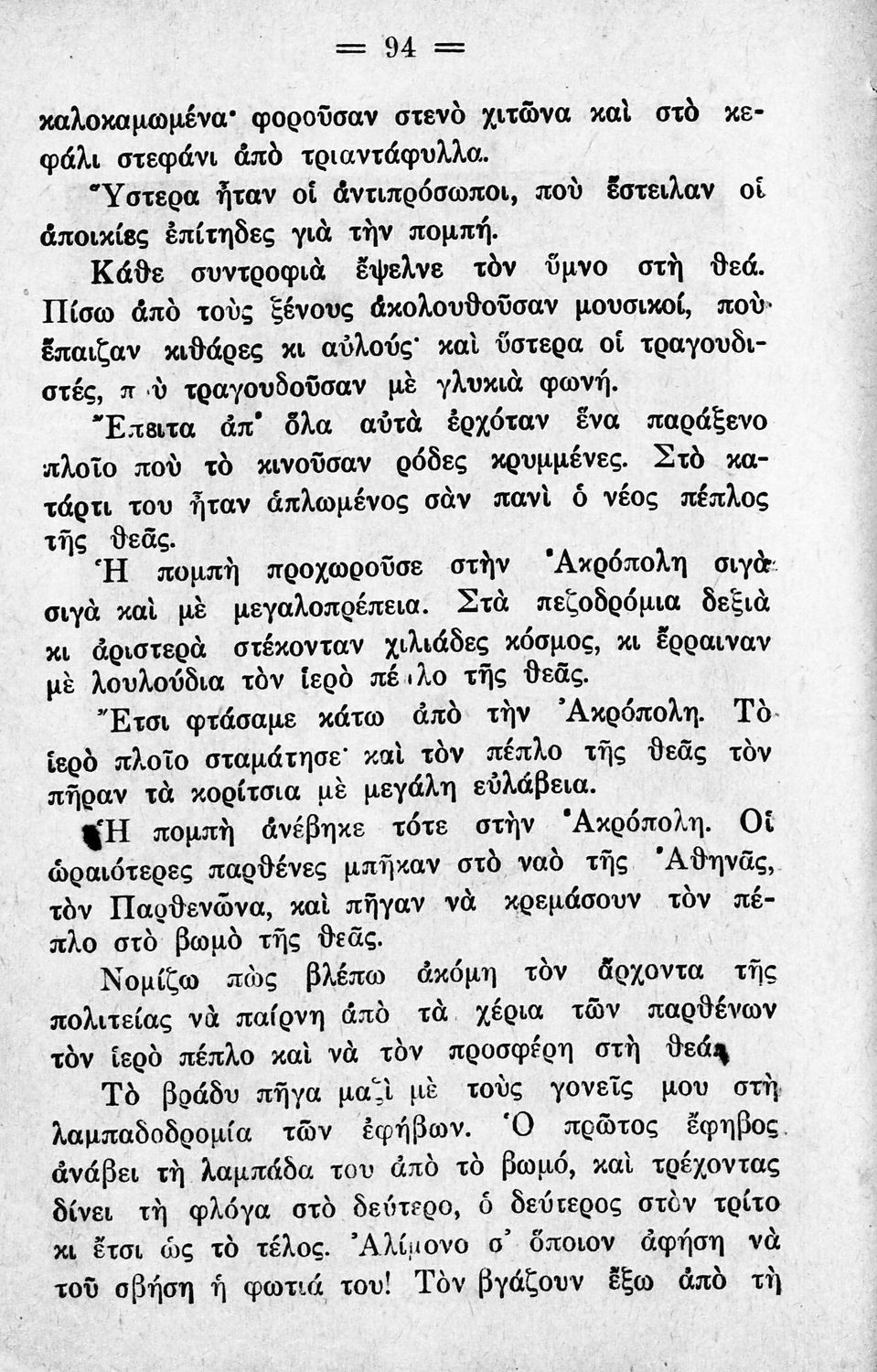 Αναγνωστικό Δ΄ Δημοτικού που περιέχει πεζά και ποιήματα εμπνευσμένα από την ελληνική ιστορία και μυθολογία, την κοινωνική ζωή και την ελληνική φύση.