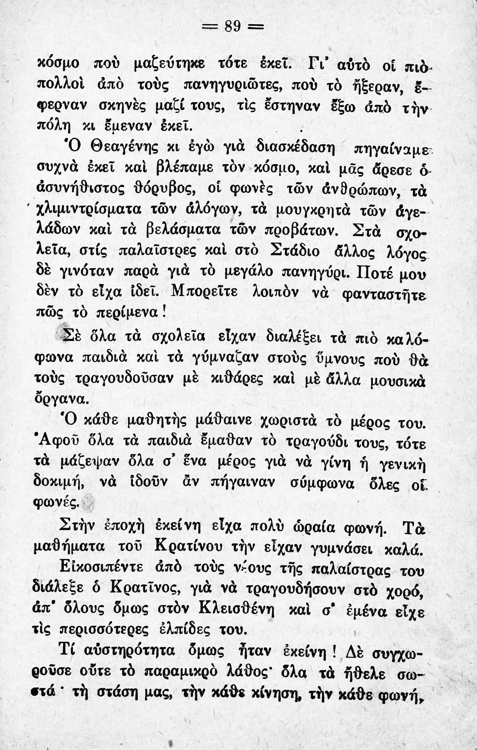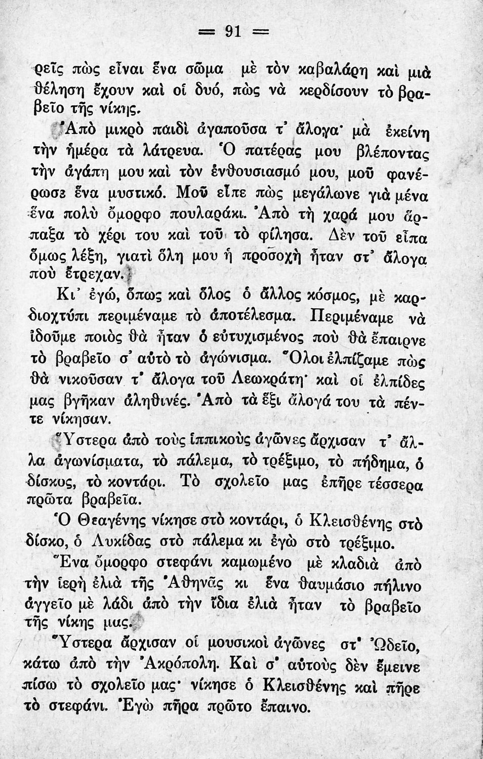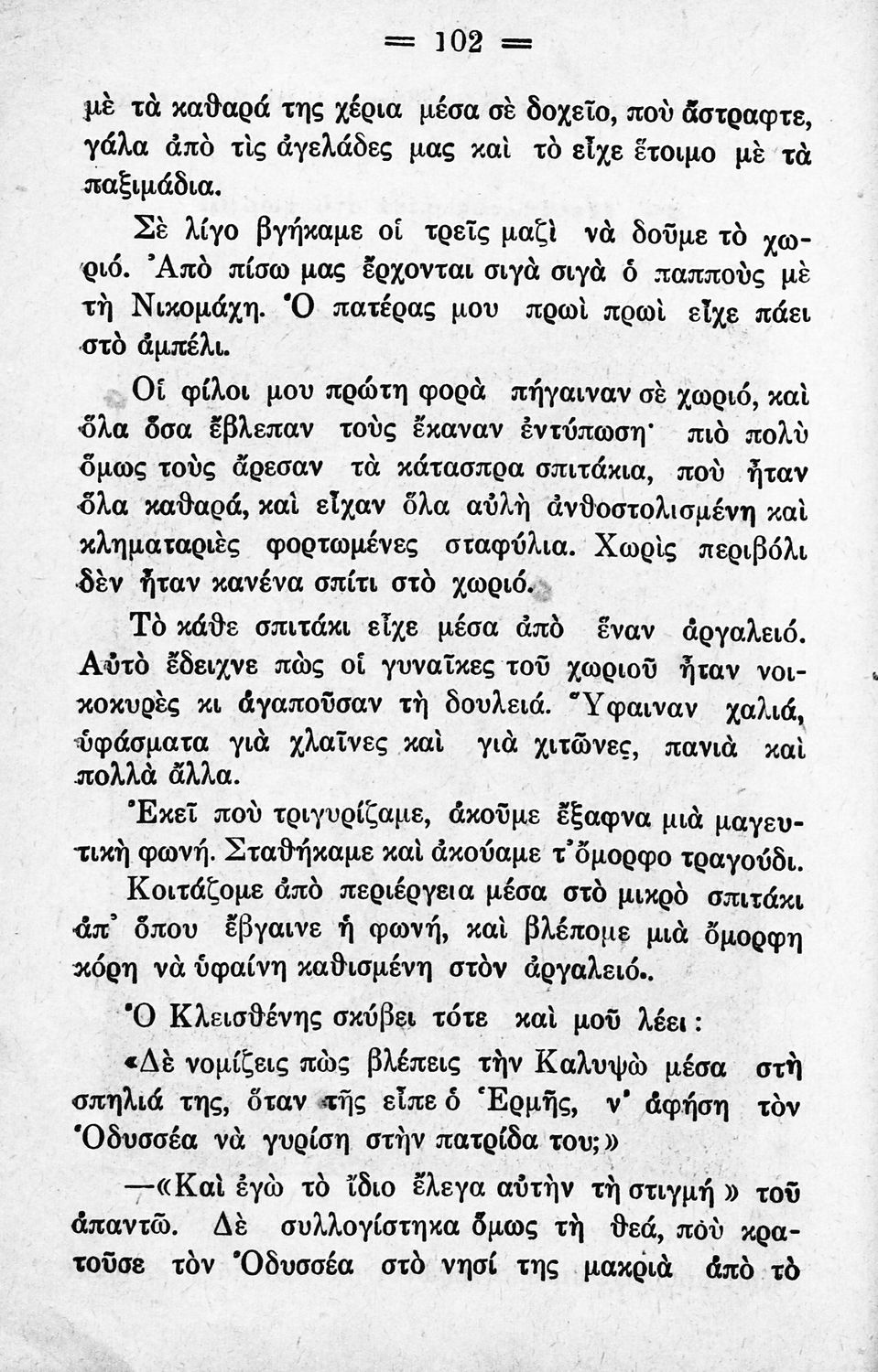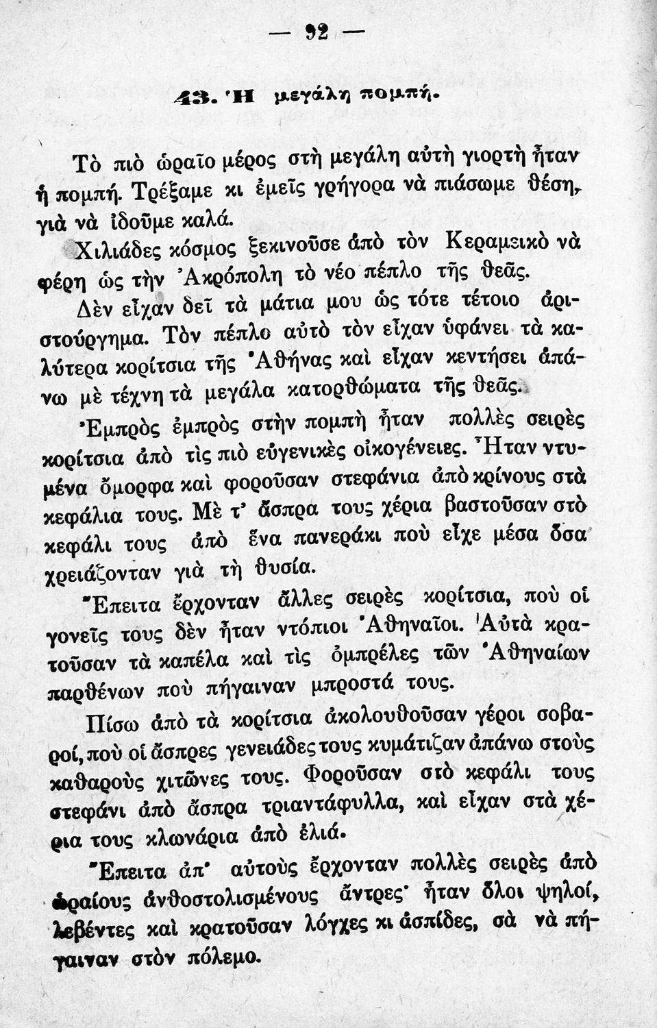 Αναγνωστικό Δ΄ Δημοτικού που περιέχει πεζά και ποιήματα εμπνευσμένα από την ελληνική ιστορία και μυθολογία, την κοινωνική ζωή και την ελληνική φύση.