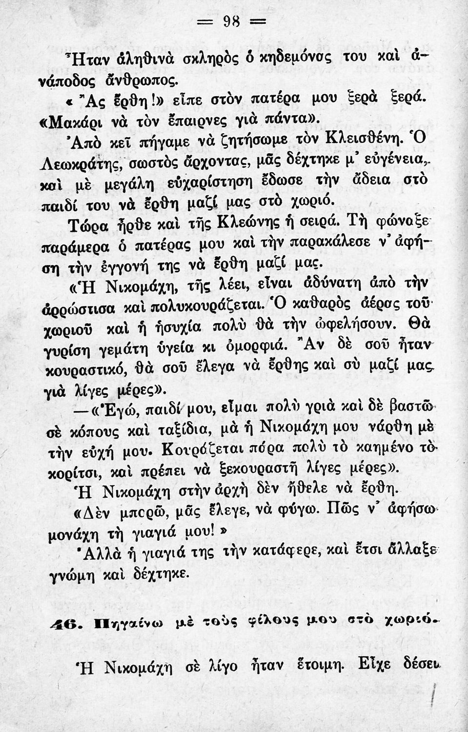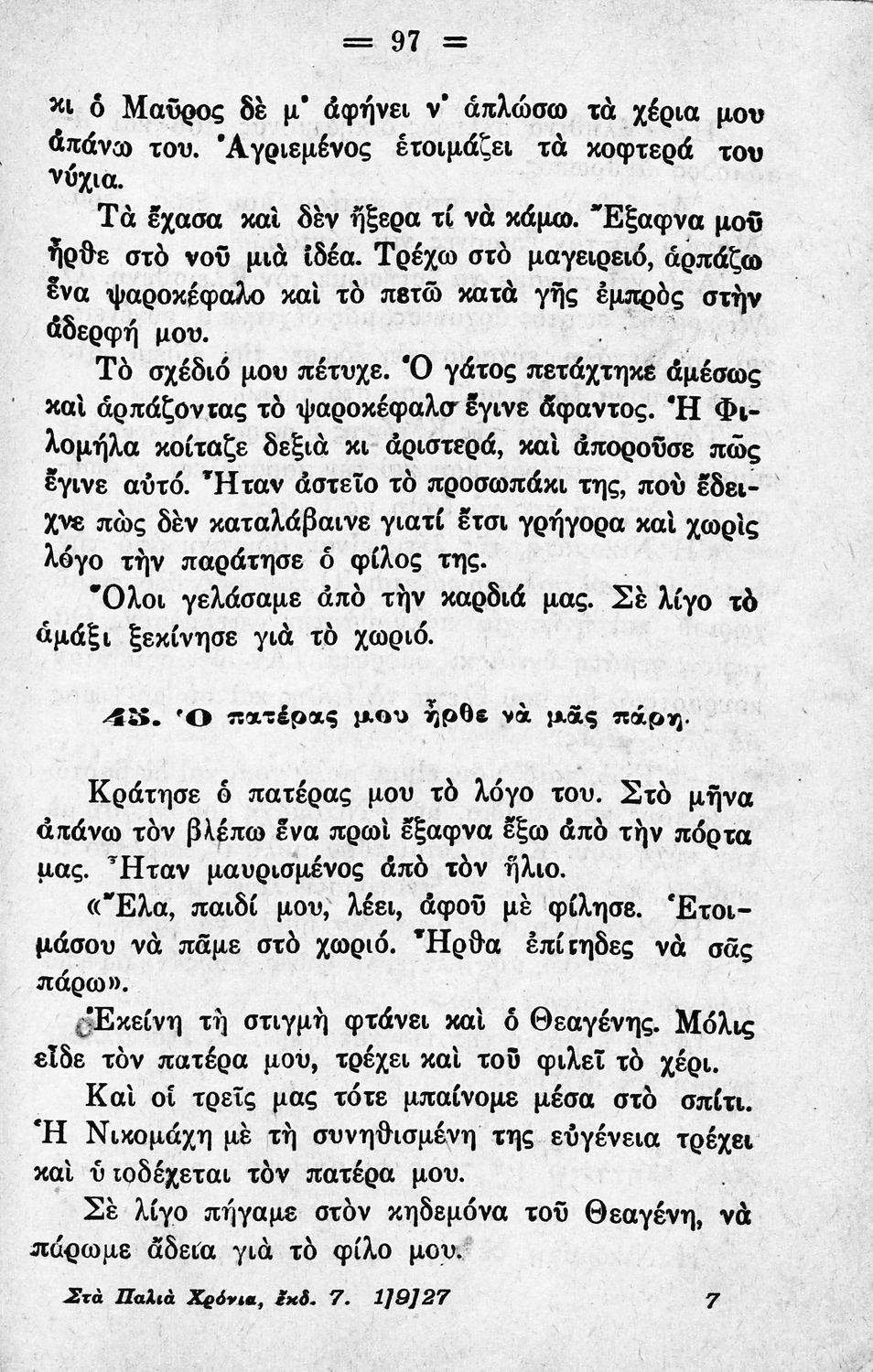 Στα παλιά χρόνια, Αναγνωστικό Δ΄ Δημοτικού