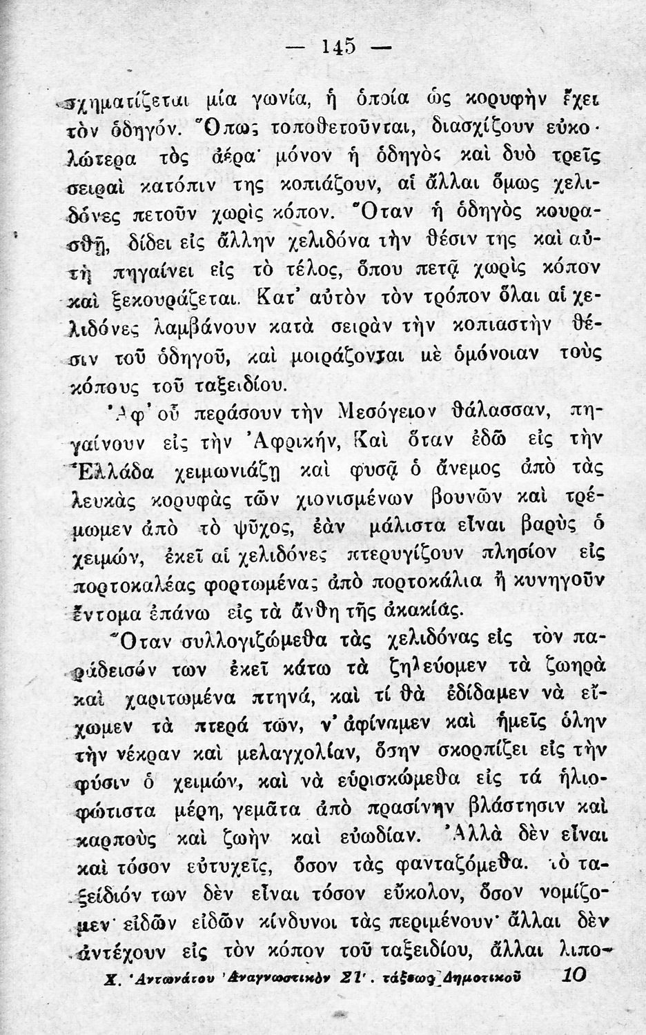 Αναγνωστικό Γ' Δημοτικού που περιέχει πεζά και ποιήματα ηθικοπλαστικού περιεχομένου εμπνευσμένα από την ελληνική φύση, την αρχαία ελληνική μυθολογία και ιστορία και τη θρησκευτική παράδοση,