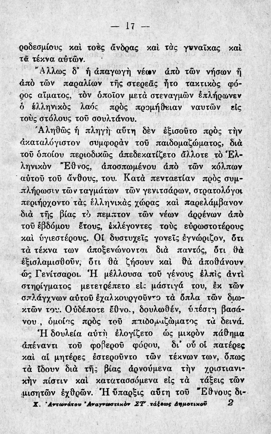 Βαθμίδα εκπαίδευσης: Πρωτοβάθμια Τάξη: ΣΤ' Δημοτικού Μάθημα: Νέα Ελληνικά Γλώσσα: Καθαρεύουσα Παρουσίαση περιεχομένου: Αναγνωστικό ΣΤ΄ Δημοτικού το οποίο περιλαμβάνει ποιήματα και πεζά εμπνευσμένα από την καθημερινότητα της ελληνικής ζωής, τη ζωή στην ύπαιθρο, την εθνική και κοινωνική ζωή, τα ζώα και τα φυτά. Τα κείμενα εκτός από τη γλωσσική διδασκαλία αποσκοπούν και στην ηθική καλλιέργεια των μαθητών. |