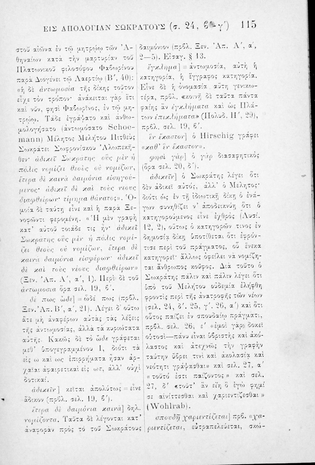 Παιδαγωγικό βοήθημα Αρχαίων Ελληνικών που περιέχει μετάφραση της Απολογίας του Σωκράτη του Πλάτωνα.