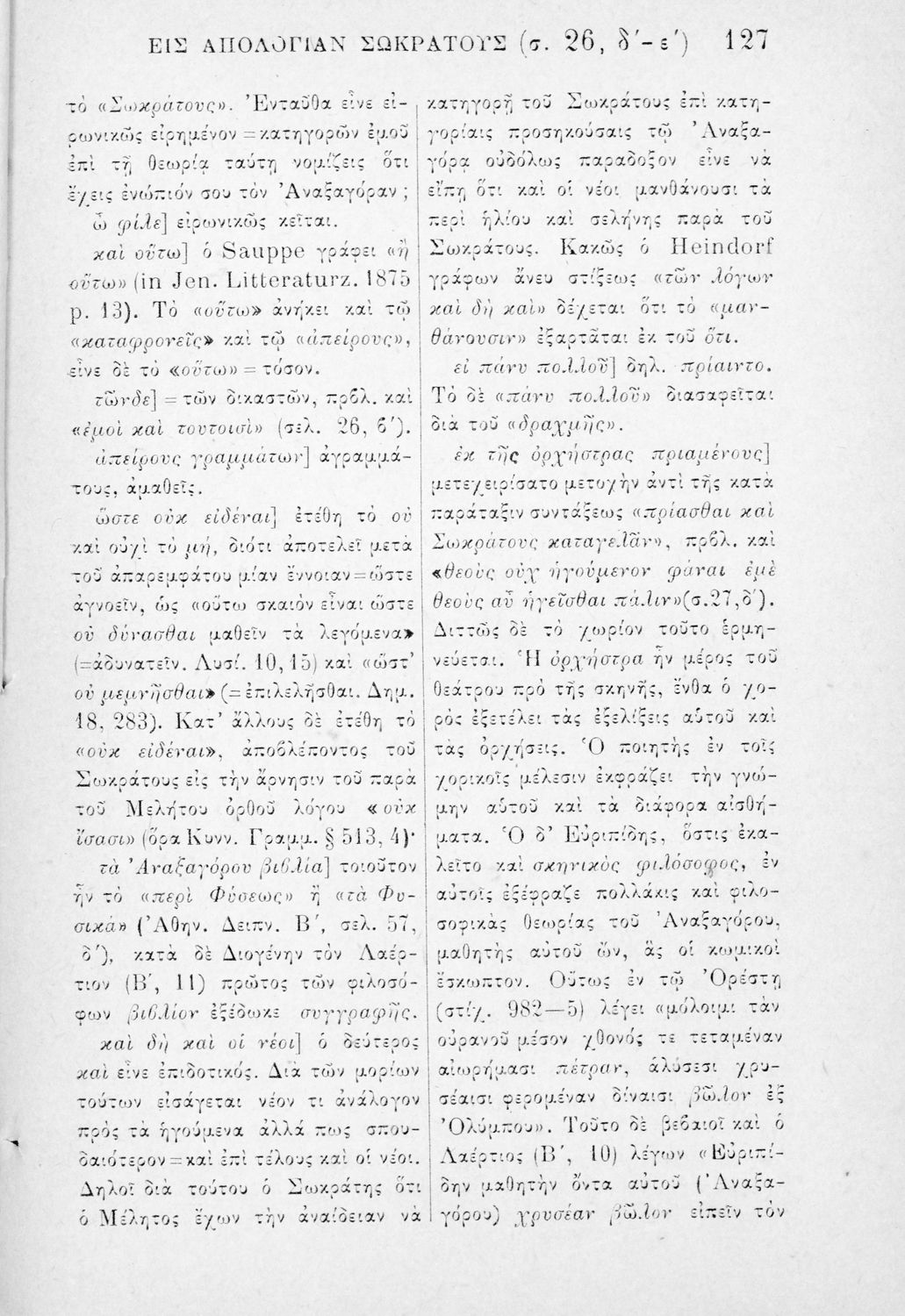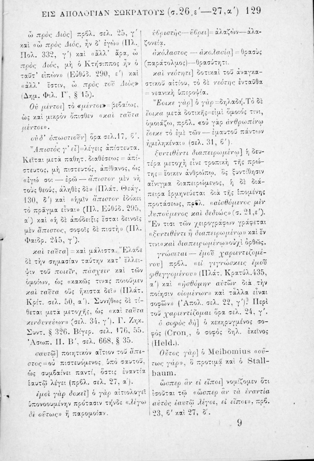Παιδαγωγικό βοήθημα Αρχαίων Ελληνικών. Βιβλίο που περιέχει την Απολογία του Σωκράτη του Πλάτωνα και ερμηνευτικές σημειώσεις.