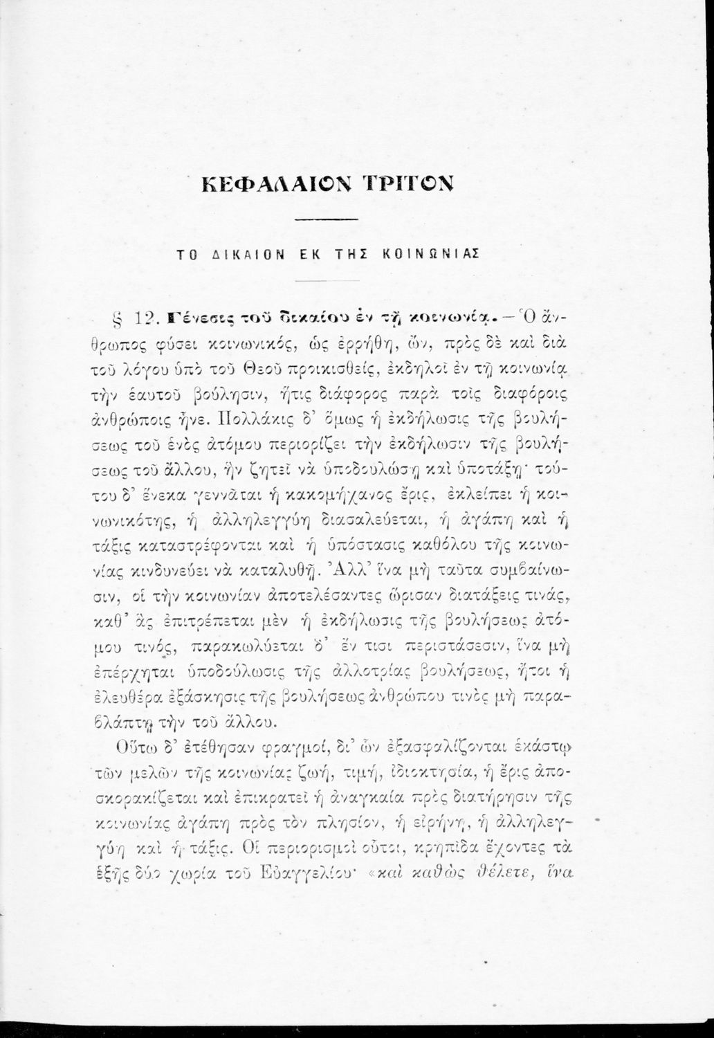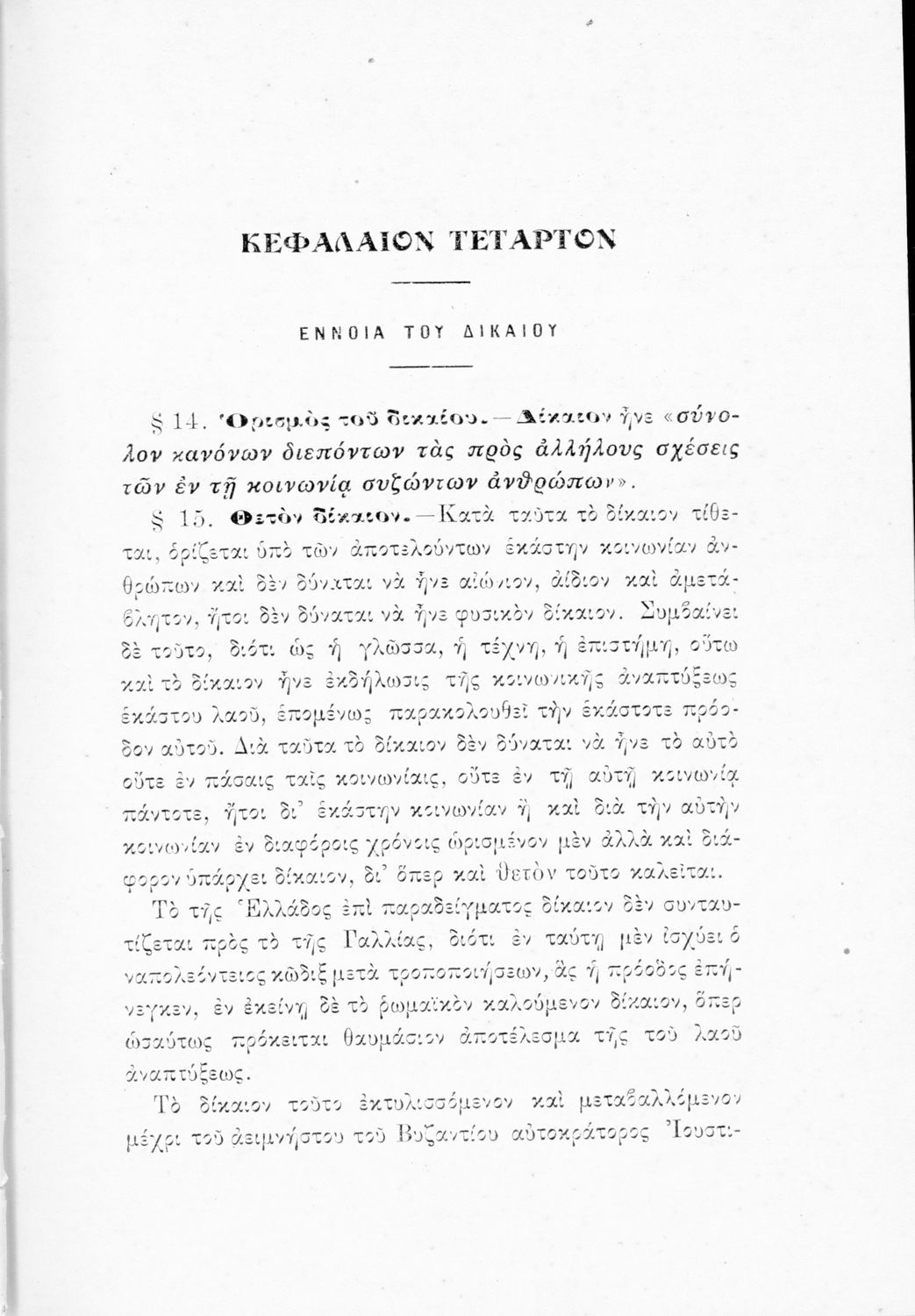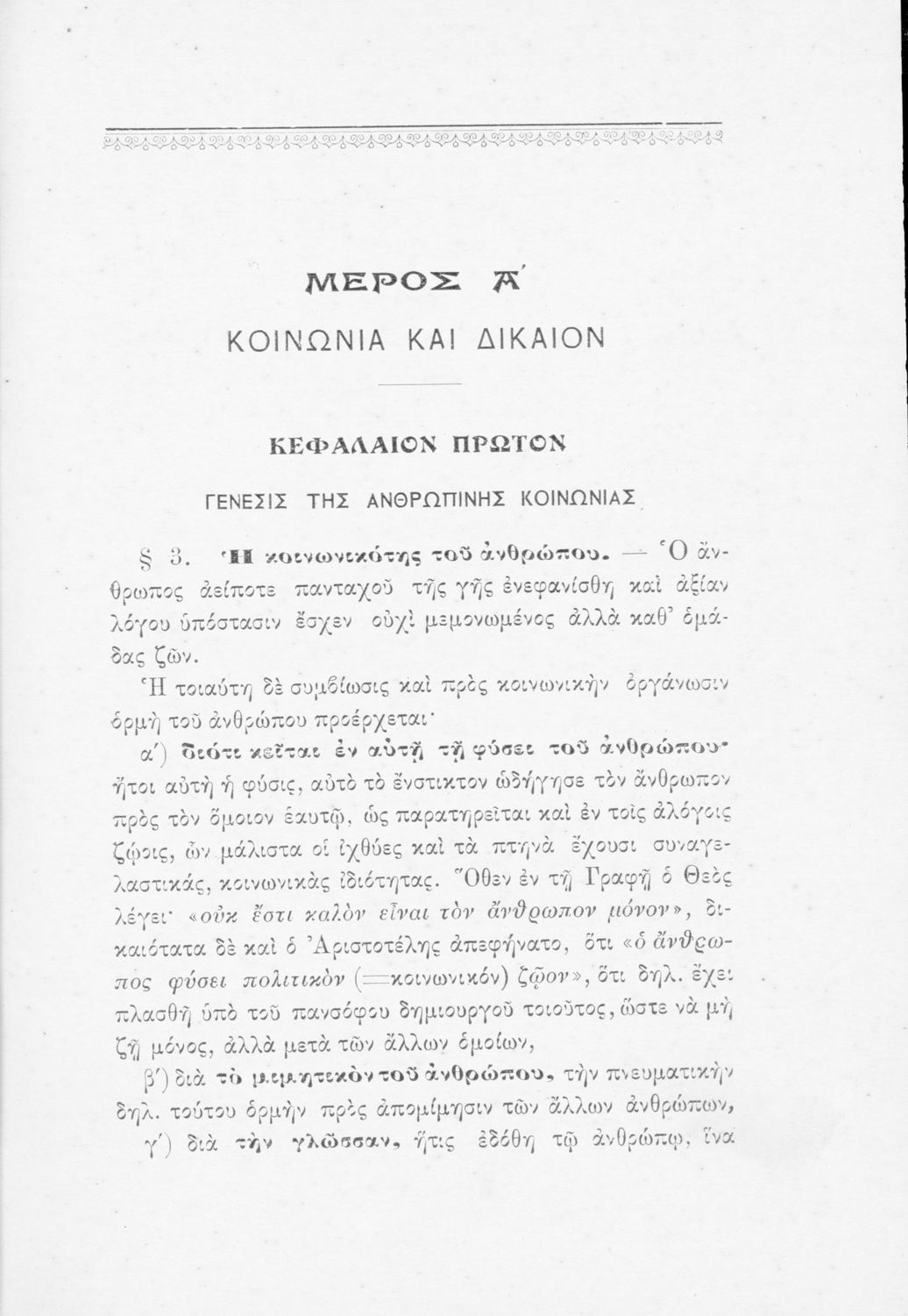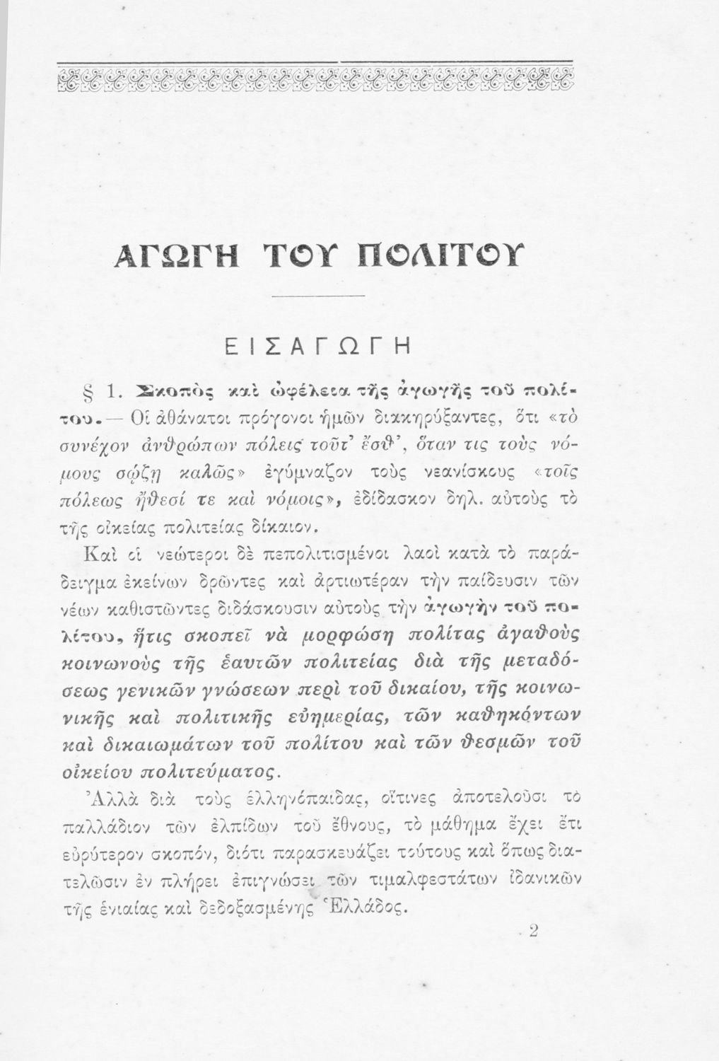 Παιδαγωγικό βοήθημα Αγωγής του Πολίτη Γυμνασίου που απευθύνεται σε διδασκάλους, σπουδάζοντες νέους, αλλά και σε κάθε πολίτη. Αποσκοπεί στην κατανόηση της έννοιας του Δίκαιου και του Πολίτη. Περιλαμβάνει το αναθεωρημένο Σύνταγμα του 1911.